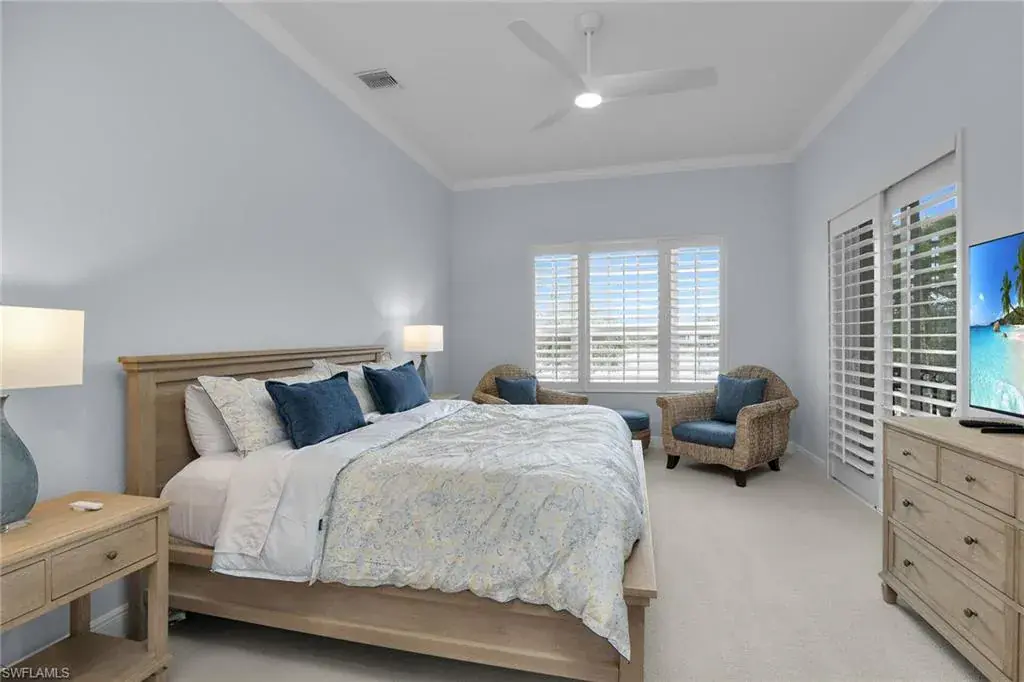 MUST SEE!!! 3 BEDROOM 3 BATH 2 CAR GARAGE REMODELED UNIT. NEW CARPETING, NEWLY PAINTED WALLS, NEW LIGHTING, NEW DOOR KNOBS AND NEW FURNITURE. NEW HVAC, NEW TANKLESS WATER HEATER. KITCHEN HAS STAINLESS STEEL APPLIANCES, GAS RANGE, BREAKFAST BAR, AND WALK IN PANTRY. ALL BEDROOMS HAVE EN SUITE BATHROOMS. IN PRESTINE CONDITION. THE OWNER’S SUITE HAS DIRECT ACCESS TO THE LANAI, DUAL SINKS A SOAKER TUB AND 2 WALK IN CLOSETS. NEW ROOF AND IMPACT WINDOWS (2021). TRANQUIL SOUTHERN VIEW OF LAKE. AS A RESIDENT OF FIDDLERS CREEK YOU WILL HAVE ACCESS TO A WORLD CLASS SPA AND CLUB INCLUDING STEAM ROOM, SPA SERVICES, SAUNA, RESORT-STYLYE POOLS, FITNESS CENTER, PICKLEBALL COURTS, TENNIS, AND BOCCE. FIDDLERS ALSO HAS A MONTHLY EVENT CALANDAR FULL OF EVENTS AND ACTIVITIES. OPTIONAL BEACH, GOLF, MARINA MEMBERSHIPS, ARE ALSO AVAILABLE.