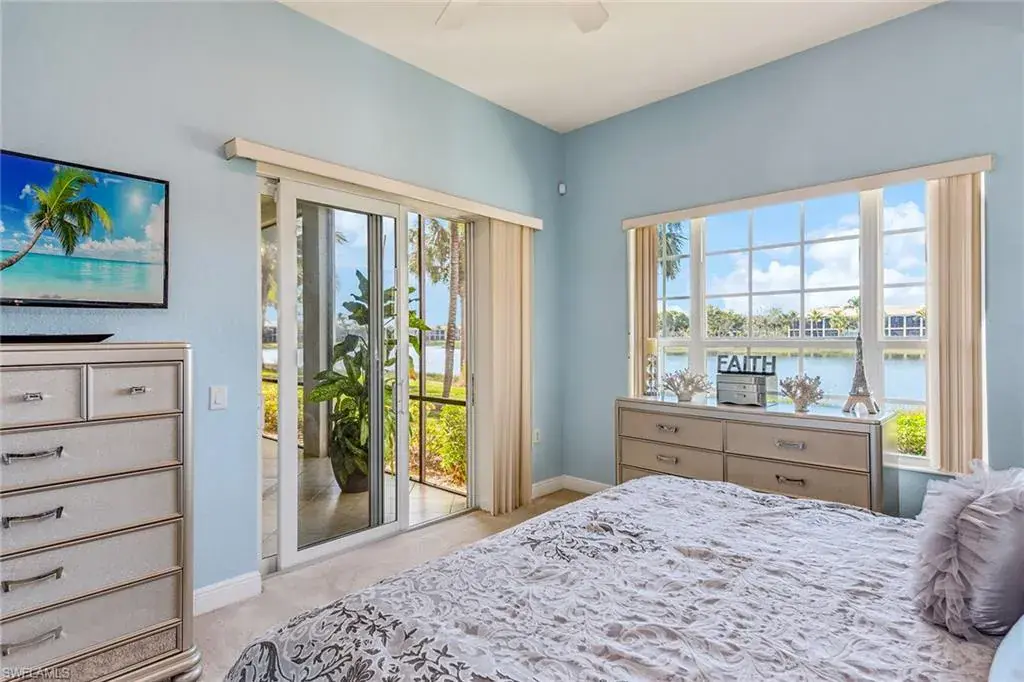 Experience luxury resort living in this beautifully updated first-floor coach home in Laguna at Fiddler’s Creek, offering three bedrooms, three baths, an attached two-car garage, and peaceful lake views with desirable southwest exposure. The exterior has been refreshed with a new tile roof, impact-rated doors and windows, fresh paint, new lanai screens, a paver driveway, and a charming courtyard entry. The screened and covered lanai is the perfect place to relax and take in the panoramic water views. Inside, the home welcomes you with volume ceilings, designer lighting, abundant natural light, and luxury vinyl plank flooring throughout the main living spaces. The gourmet kitchen is appointed with white cabinetry, granite countertops and backsplash, a breakfast bar, an eat-in dining area, and stainless steel appliances, including natural gas cooking. The open layout flows into the spacious family room and living/dining areas, ideal for both everyday living and entertaining. The owner’s suite is a tranquil retreat featuring captivating lake views, lanai access, two walk-in closets, and an en-suite bath with dual sinks, makeup vanity, soaking tub, enclosed water closet, and large walk-in shower. Each guest bedroom offers the comfort of its own en-suite bath, providing privacy and convenience. Newer mechanicals and appliances include the HVAC system, hot water heater, microwave, freezer, washer, and dryer. Offered furnished, this residence is move-in ready. Residents enjoy access to the spectacular 54,000-square-foot club and spa, offering casual and fine dining, resort-style pools with waterfalls and slides, a fitness center with classes and personal training, active tennis and pickleball programs, bocce, spa services, sauna, steam room, and an extremely active social calendar, with exciting renovations underway. Optional memberships are available for The Tarpon Club, with beach and marina privileges, and The Golf Club with its recently renovated course and new clubhouse. Just minutes from Marco Island, downtown Naples, world-class dining, shopping, executive airport, and beaches, this home captures the essence of the desired Florida resort lifestyle.