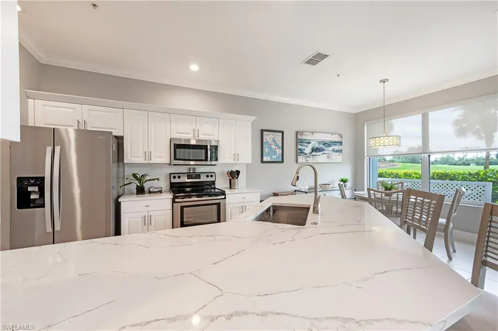 SPECTACULAR GOLF, GREAT FOOD, MOVE-IN-READY, BEAUTIFULLY FURNISHED, COMPLETELY RENOVATED. This 1,629-square-foot carriage home is for sale in the premium bundled golf community of Naples Lakes Country Club. Bundled golf is a type of gated community where a golf membership is included with every home purchase. This home sits behind #10 and allows you to watch the action finishing the hole. It is light and bright, has 2 bedrooms, a den, fully renovated bathrooms and kitchen. It is spacious and comfortable. It’s ready for someone to come in, drop their bag and begin to have fun in the sun. Use your personal golf cart on the course with the purchase of a trail fee. It’s close to Marco Island, Naples beaches, and Fifth Ave South for shopping and dining.Naples Lakes is a beautiful Gated Resort style community with an 18 hole Arnold Palmer Signature golf course, New outdoor cabana, heated pool & spa, outdoor and indoor dining, outdoor expansive bar, Fire Pit, Tennis, Dillyball, Bocce ball and fitness center. EVERY HOME PURCHASE = IMMEDIATE GOLF MEMBERSHIP!