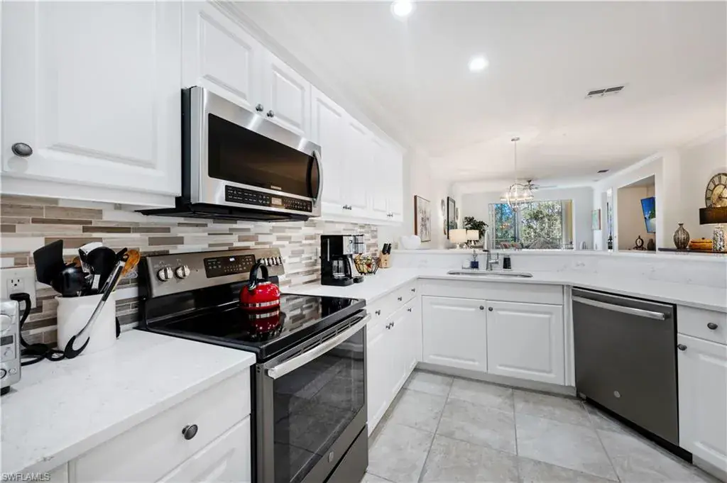 Exceptional 2+Den, 2-Bath Condo in Naples Lakes Country Club.  Experience luxury living in this beautifully updated condo being offered turnkey located in the award-winning NLCC.  Boasting one of the most sought-after floor plans and offering the second largest condo layout in the community, this residence combines spaciousness with timeless elegance.  This meticulously maintained home features a wealth of updates, including new flooring, upgraded baseboards, crown molding, lighting and fans, and fresh paint throughout.  The kitchen and bathrooms have been thoughtfully remodeled to reflect style and functionality, making this condo truly move-in ready.  The versatile den offers the perfect space for a home office, reading nook, or guest accommodations, adding even more flexibility to the generous floor plan.  This condo also includes a highly coveted two-car garage, providing ample storage and convenience-an exceptional feature rarely found in similar properties.  As a resident, you’ll enjoy bundled golf privileges on the 18-hole Arnold Palmer Signature Course, a true golfer’s paradise.  NLCC is a premier gated community offering a wealth of amenities, including a clubhouse, outdoor Cabana, fitness center, resort-style pool, tennis and bocce courts, and more – all designed to compliment your Florida lifestyle.  Use your personal golf cart on the course with the purchase of a trail fee.  It’s close to Marco Island, Naples beaches, and Fifth Ave South for shopping and dining.   Don’t miss the opportunity to own this exceptional condo in one of Naples’ most prestigious communities!