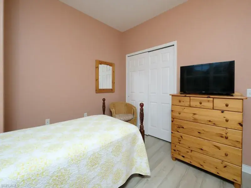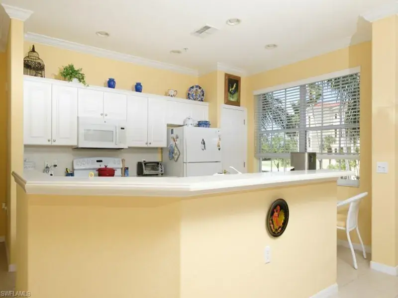 Spacious and bright end unit with 3 bedrooms and 2 bathrooms and a screened lanai that invites for entertaining (exposure away from busy Collier Blvd). Owners installed crown molding and nice built-in cabinets. Living area with many windows. Spacious owner suite. Offered Turnkey Furnished. Two car garage on the first floor of the building. Owners are automatically members of the award-winning Naples Lakes Golf & Country Club (A Par 72 Arnold Palmer Signature Course). The community also offers a driving range with a chip in area and putting greens, tennis courts, a fitness center, and bocce courts. In addition, exceptional dining is found in both the Clubhouse and Arnie’s Cabana with no minimum requirements.