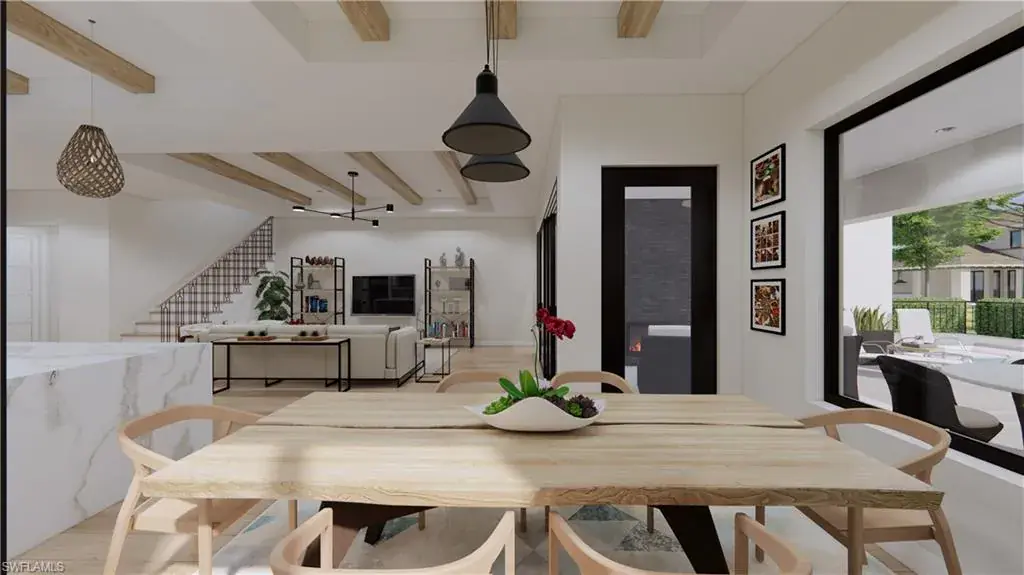 Discover an exceptional new construction masterpiece coming to Lake Park THIS OCTOBER! Built by the upscale and selective Waterside Builders Inc. with a focus on high quality construction, impeccable build quality and attention to every detail. The all-concrete block construction on both floors, hurricane impact glass, and highly desired southern-facing pool deck ensure piece of mind durability and year-round enjoyment. Blending neutral woods, golden tones and black accents offers a modern traditional aesthetic flowing with any incorporated decor vibe. An expansive layout featuring wide plank wood flooring and wood beam ceiling detail offers a welcoming great room opening to an intimate fireplace hang out, dreamy pool spa area and impressive grilling station. The first-floor primary suite exudes tranquillity with a master bath that draws you in with it’s exquisite tile work and second en-suite bedroom on the main floor can serve as an office as well. The upstairs includes an inviting, fun loft space opening to a spacious outdoor balcony and three additional bedrooms. Tucked away on a quiet curved street, this gem offers a superior location for a quick bike ride/golf cart to downtown’s world-class dining, shopping, nearby new Four Seasons Hotel and of coarse Naples pristine beaches!