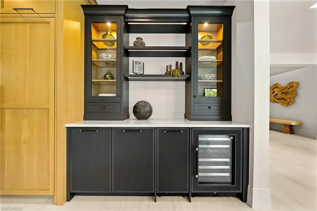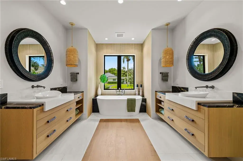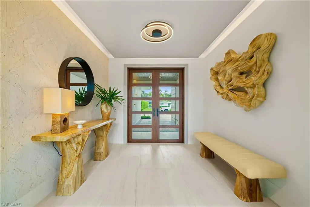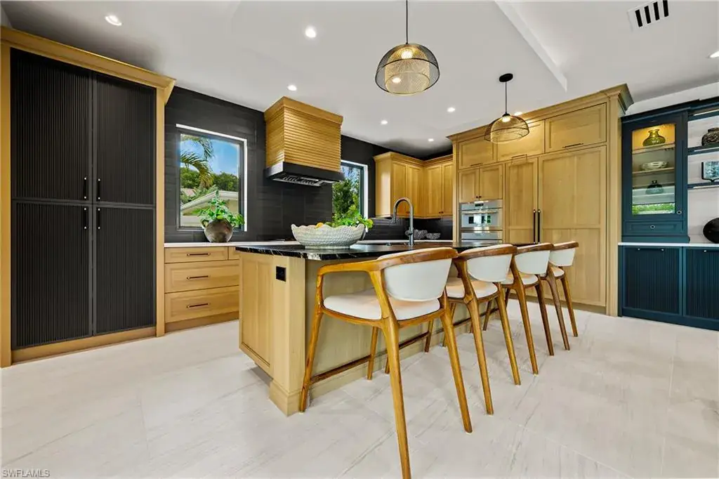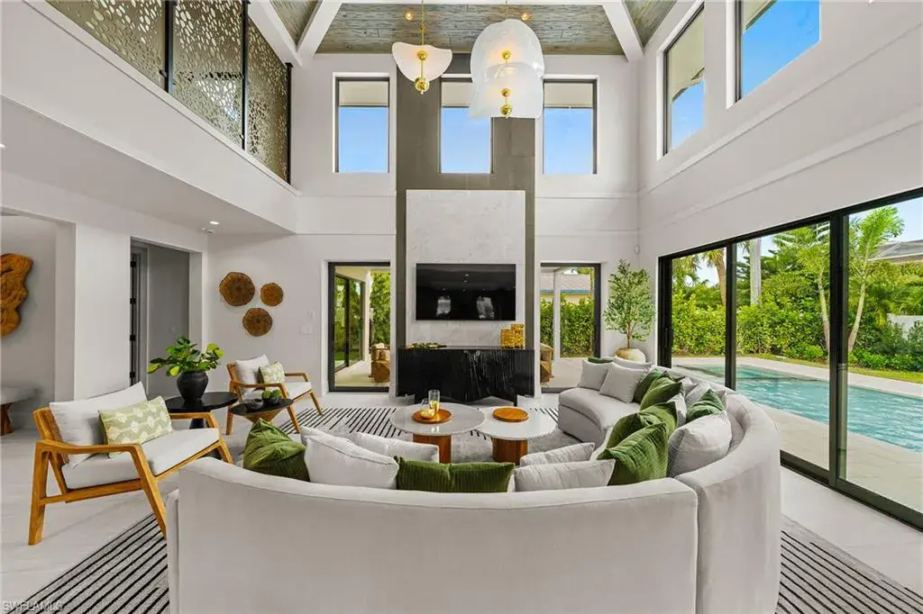 Renowned award winning custom home builder Sea Castle Development partnered with architect Ashmore Design to bring together a distinct offering in Lake Park unlike any other. Effortlessly blending elegance with livability, this extraordinary residence offers refined comfort across 3,766 square feet of sun-filled living space. This nature inspired home features an open-concept floor plan, soaring ceilings, and curated designer finishes throughout every inch. The chef’s kitchen is outfitted with a top-tier Thermador appliance package, while the summer kitchen boasts premium XO appliances—ideal for seamless indoor-outdoor entertaining. With natural elements present throughout the home, the backyard oasis lures you with its charm. Featuring multiple entertaining areas, one being shaded by a motorized pergola & the other fitted with electric screens & shutters – there is more than enough space for any type of gathering. The first-floor primary suite delivers comfort and convenience, while upstairs, a bedroom and two additional en-suites surround the spacious loft and a private balcony. Additional highlights include an elevator, hurricane impact windows and doors, engineered white oak Real Wood flooring, stunning designer tile work, sonos sound system throughout, propane heated saltwater pool / spa, & 24kw generator with automatic transfer switch. Offered fully furnished, this exceptional home is move-in ready and ideally located just minutes from Naples’ white-sand beaches, shopping and world class dining. Ready for immediate occupancy.