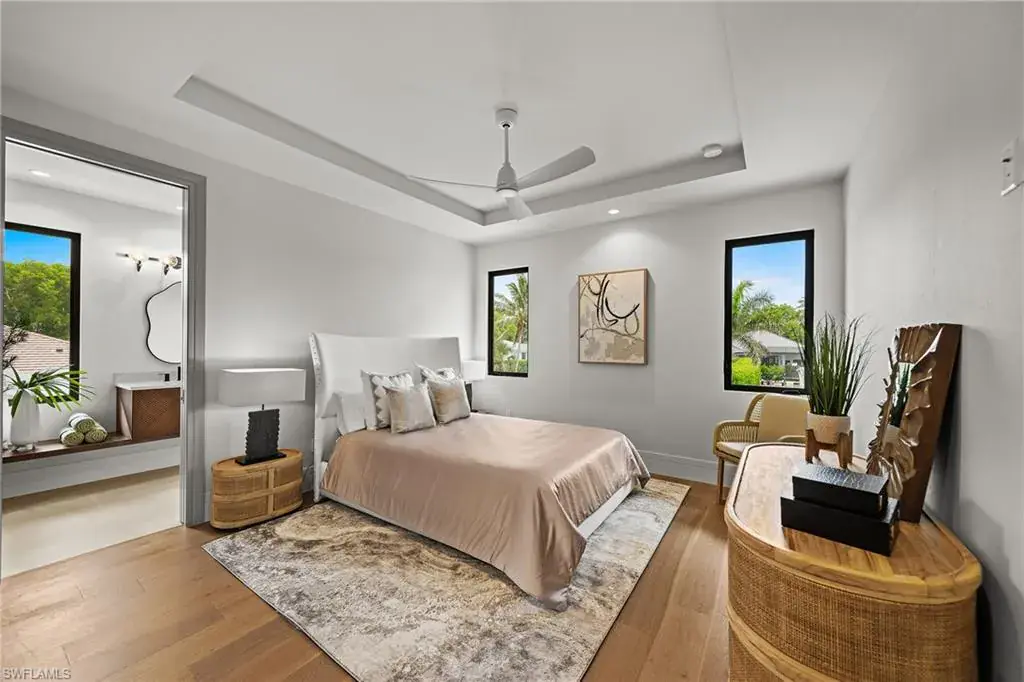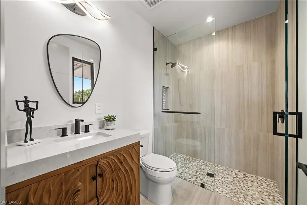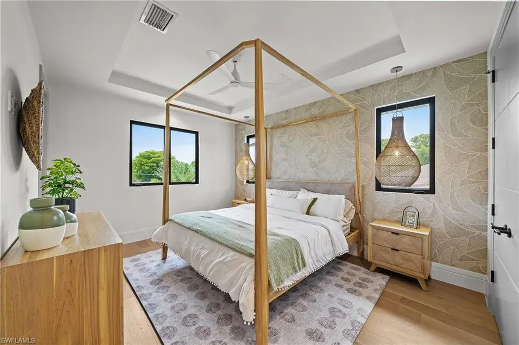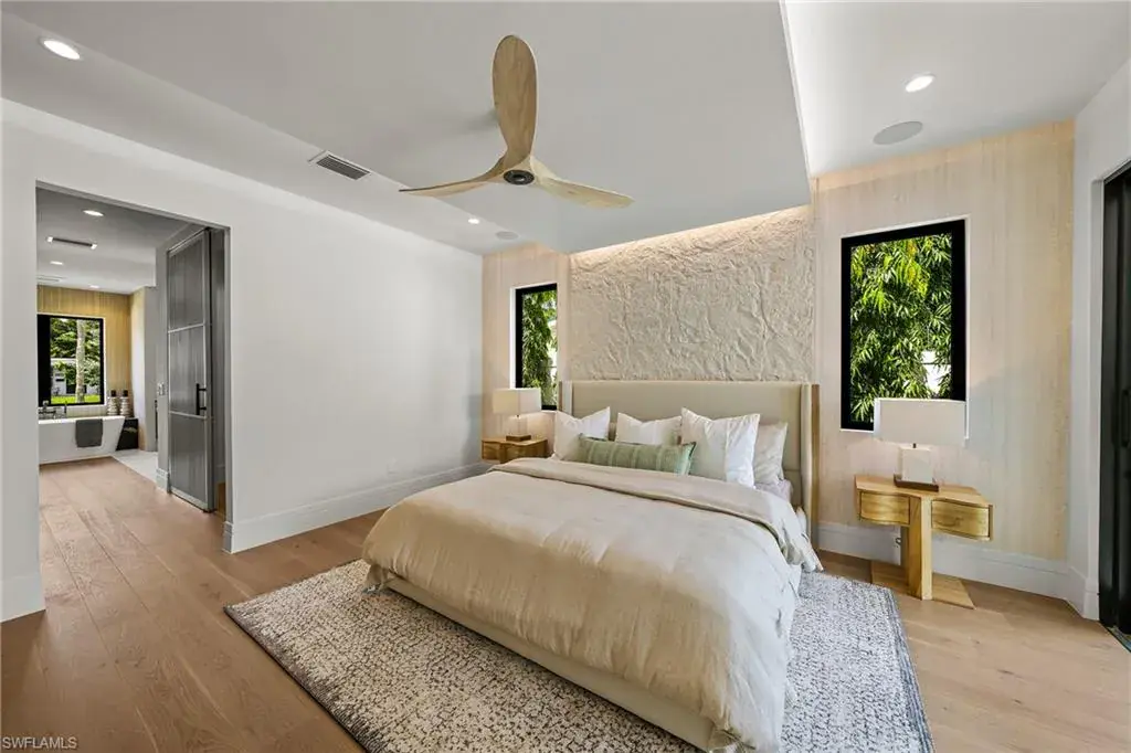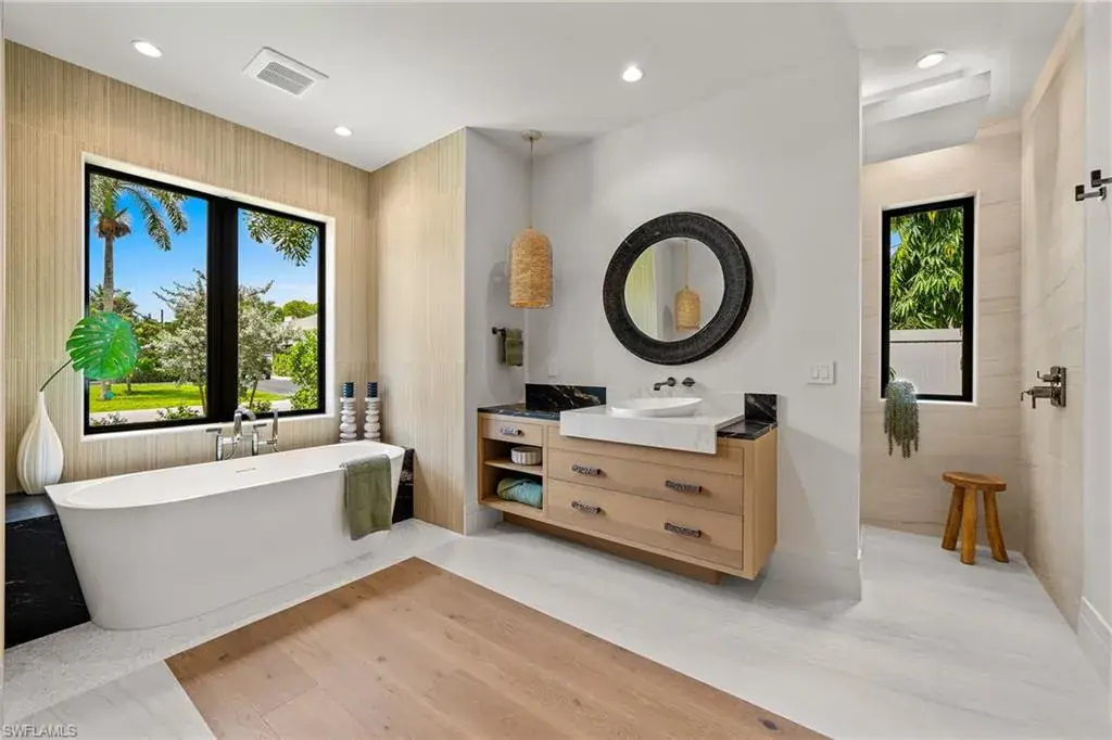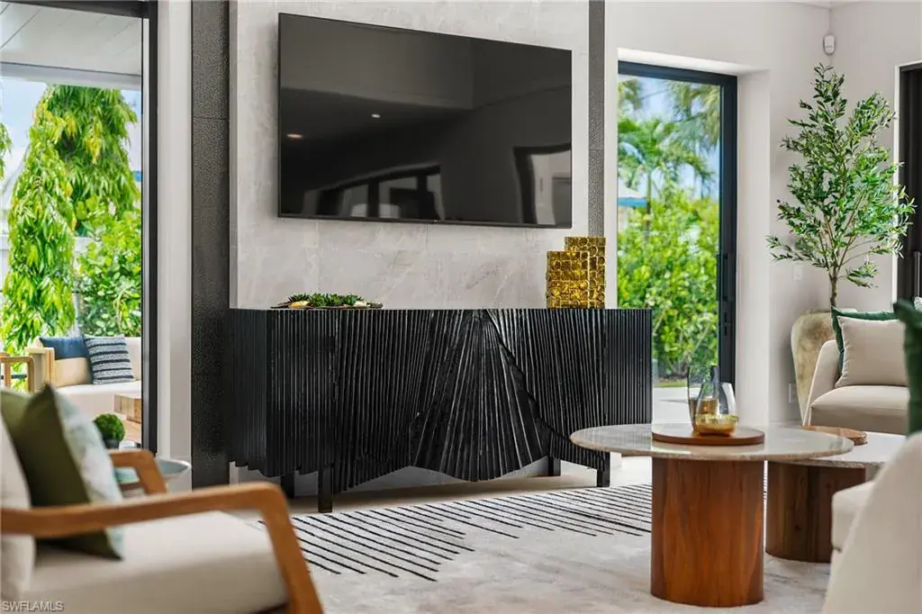 Renowned award winning custom home builder Sea Castle Development partnered with architect Ashmore Design to bring together a distinct offering in Lake Park unlike any other. Effortlessly blending elegance with livability, this extraordinary residence offers refined comfort across 3,766 square feet of sun-filled living space. This nature inspired home features an open-concept floor plan, soaring ceilings, and curated designer finishes throughout every inch. The chef’s kitchen is outfitted with a top-tier Thermador appliance package, while the summer kitchen boasts premium XO appliances—ideal for seamless indoor-outdoor entertaining. With natural elements present throughout the home, the backyard oasis lures you with its charm. Featuring multiple entertaining areas, one being shaded by a motorized pergola & the other fitted with electric screens & shutters – there is more than enough space for any type of gathering. The first-floor primary suite delivers comfort and convenience, while upstairs, a bedroom and two additional en-suites surround the spacious loft and a private balcony. Additional highlights include an elevator, hurricane impact windows and doors, engineered white oak Real Wood flooring, stunning designer tile work, sonos sound system throughout, propane heated saltwater pool / spa, & 24kw generator with automatic transfer switch. Offered fully furnished, this exceptional home is move-in ready and ideally located just minutes from Naples’ white-sand beaches, shopping and world class dining. Ready for immediate occupancy.