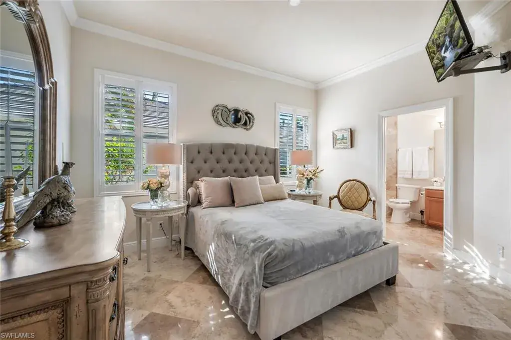 • Custom finishes throughout, including plantation shutters, cathedral ceilings, tray ceilings, and a stunning floor-to-ceiling fireplace.