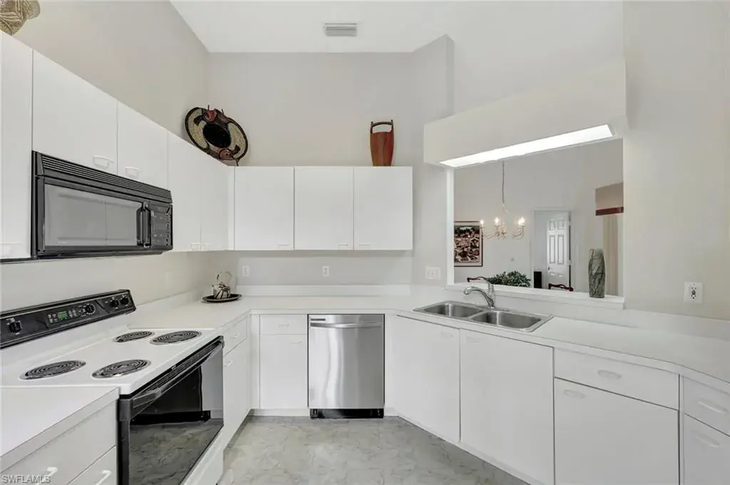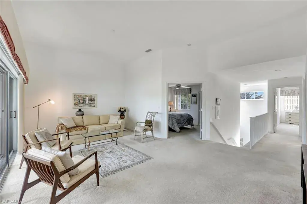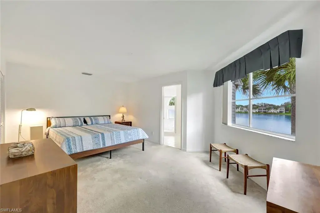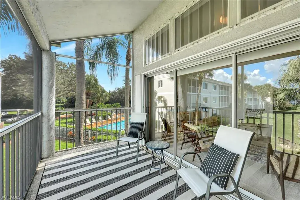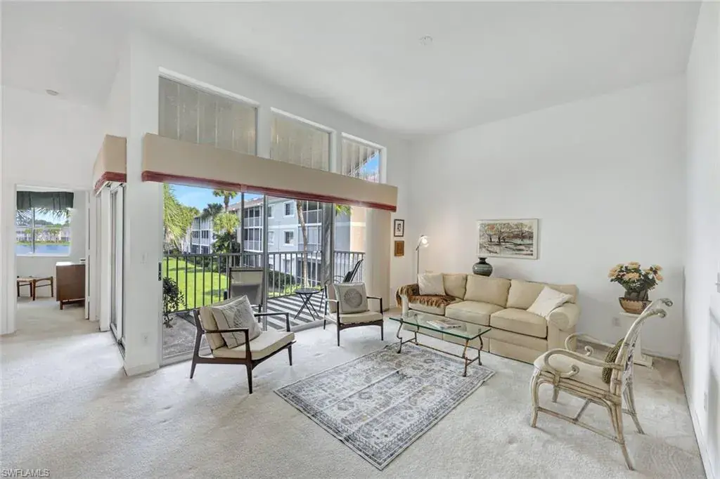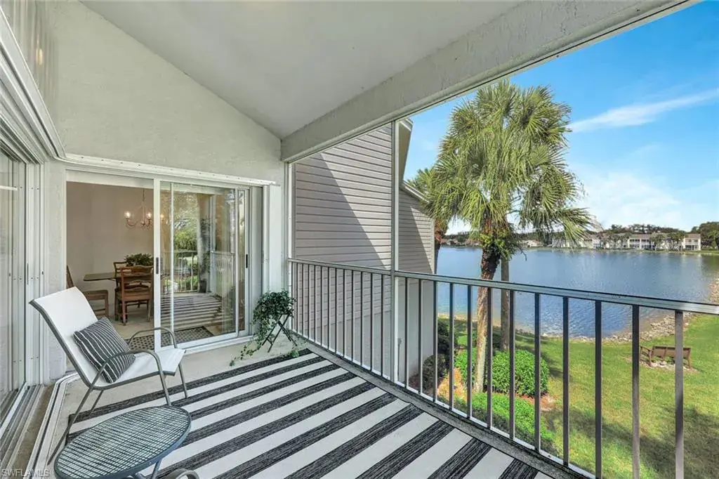 Enjoy this beautiful, 40-acre lake community with spectacular sunrises and sunsets while relaxing on your lanai or sitting in the living room. Enter this well-maintained second floor residence featuring vaulted ceilings, spacious primary bedroom with walk-in closets and ensuite bathroom. Its split bedroom floor plan and second bathroom are perfect for family and friends. Large eat-in kitchen with lots of cabinets and pantry. One-car attached garage to store everything you need. Look down from your lanai at friends and family frolicking in the community pool below, giving you a feel of your own retreat. Endless amenities available to residents include a two-story Old Florida clubhouse complete with a second pool, sauna, weight room, shower, kitchen facilities for catering private parties, library, piano and game rooms. The center is always abuzz with community events, club meetings and other activities for all ages. Also enjoy fishing, canoeing and kayaking on the lake, with boat storage available. Lead an active lifestyle with clay tennis and pickleball courts, a tot playground, shuffleboard, bocce and basketball courts, as well as a mile and one-half scenic walking path. You are close to shopping centers, pristine beaches, and championship golf courses, everything you need just minutes away. Quarterly association fees cover Blue Stream cable, water, sewer, trash, pest control and recycling services. Lakeside — a close knit community where friendships flourish and memories are made!