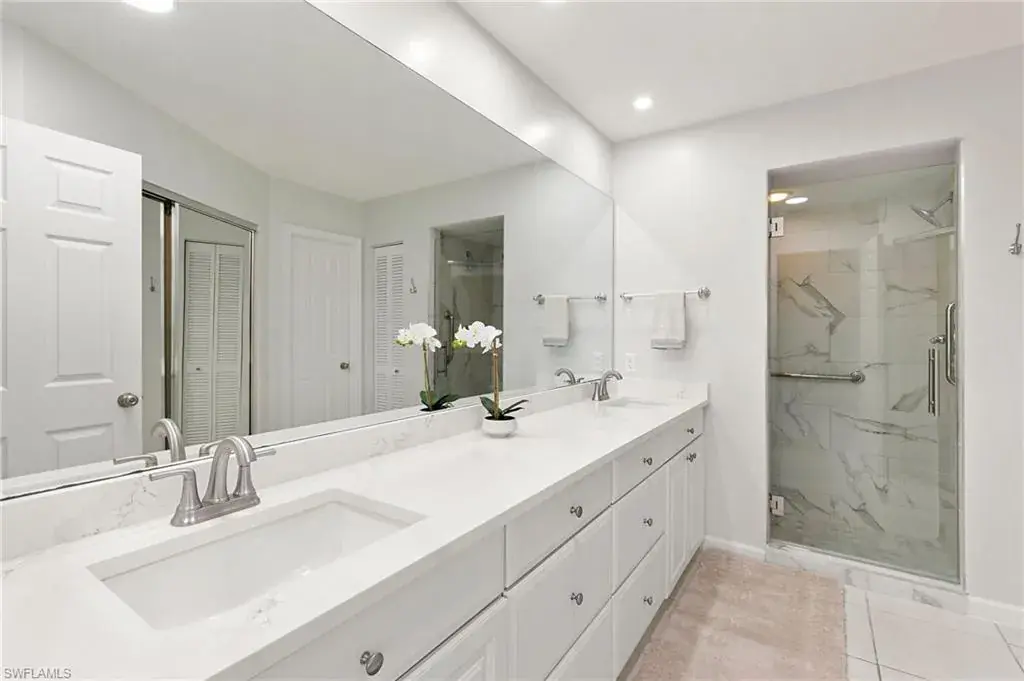 Both bedrooms are oversized, and the updated bathrooms also have sleek quartz finishes. Enjoy the breeze in the screened lanai or keep the glass closed and enjoy the warm sun.