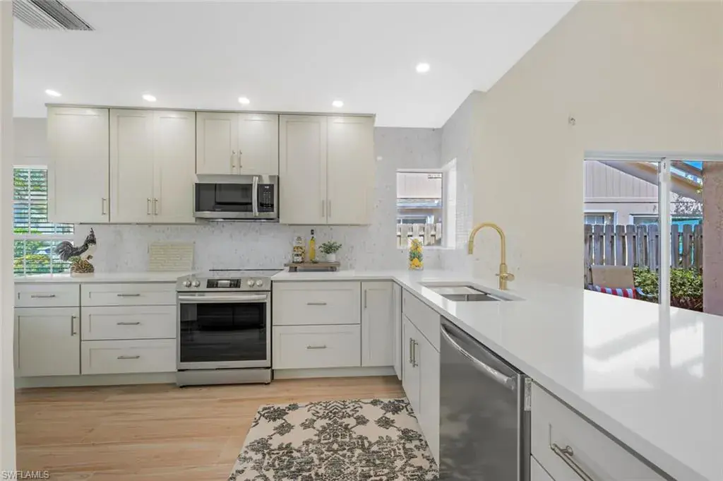 COMPLETELY RENOVATED LAKESIDE VILLA WITH EXPANSIVE SOUTHERN VIEWS! Experience lakeside living at its finest in this beautifully renovated two-bedroom, two-bath attached villa in the desirable community of Lakeside. Enjoy stunning southern exposure overlooking one of Naples’ largest and most picturesque lakes, offering tranquil water views and spectacular sunsets. This move in ready villa is offered furnished and features a modern open layout, vaulted ceilings, stylish modern finishes and abundant natural light. The kitchen showcases all new cabinetry, quartz countertops, and stainless steel appliances, while both baths have been completed redesigned with todays upscale finishes. This neighborhood is a gated community is in an excellent location close to everything Naples has to offer, including beach access, shopping, dining, golf, entertainment. A perfect blend of modern comfort, coastal tranquility, and convenience, this villa is ready for you to enoy from day one. Low quarterly maintenance fees! Single family ownership.
