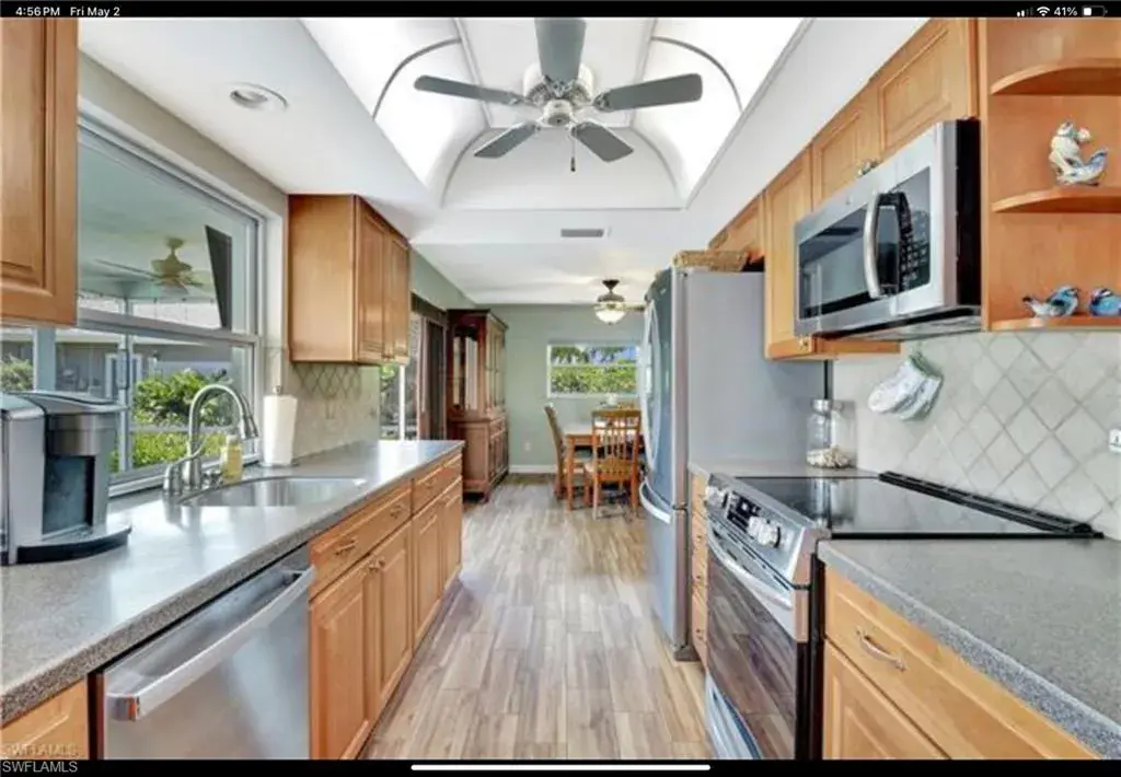 Charming single-family home located at 421 Marathon Ct, Naples, FL. Built in 1976, this cozy residence features 2 bedroom 2 bathrooms, plus den. Home sits on a large .26 acre lot. Large screened lanai with salt water pool and solar heating. Solid wood Thomasville kitchen cabinetry. Tile throughout. Located in the community of Lakewood, just two miles from downtown 5th Avenue. Close to restaurants, shopping, beach. Lakewood offers a public 18 hole par 60 executive golf course. The property offers a tranquil and private setting, perfect for enjoying the beautiful Florida weather. Don’t miss the opportunity to make this lovely home yours in the desirable Naples area. Will help with closing costs.
