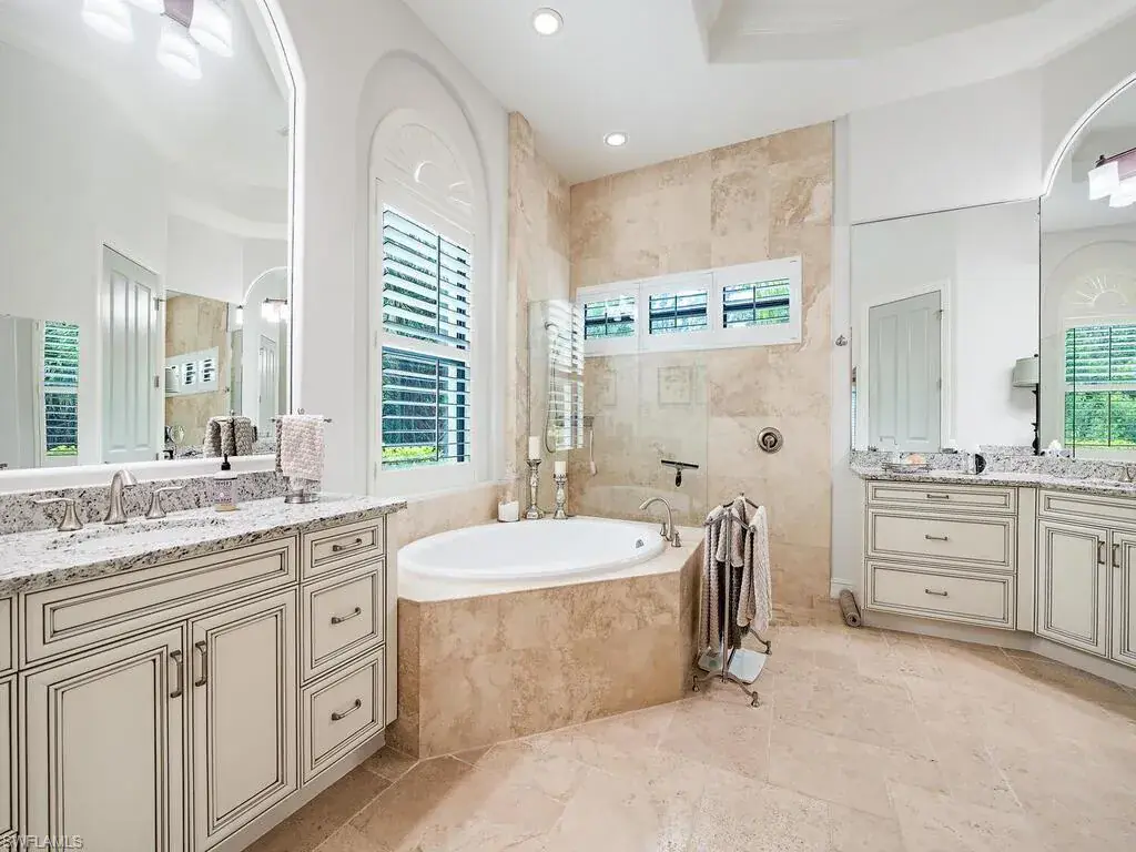 Are you looking for total privacy and tranquility then this exquisite Courtyard Home in “LAKOYA” at Lely Resort is your newfound paradise. The “Pinehurst II” floorplan features 3BR plus a DEN, 2.5 BA PLUS a CABANA with 1BR and 1BA. Beautiful decorated with personal attention to every detail by the owner sets this home apart. Offered turnkey furnished. Enter the courtyard, you are presented with the stunning, south-facing, heated pool and spa (gas). Ashlar-Stone on the lanai and throughout the house, except in the Den and all bedrooms which boast high-grade hardwood floors. Plantation shutters, crown molding, granite countertops, 3-car garage and many more upgrades. Enjoy the sunset from the extended lanai overlooking the preserve and watch the wildlife.