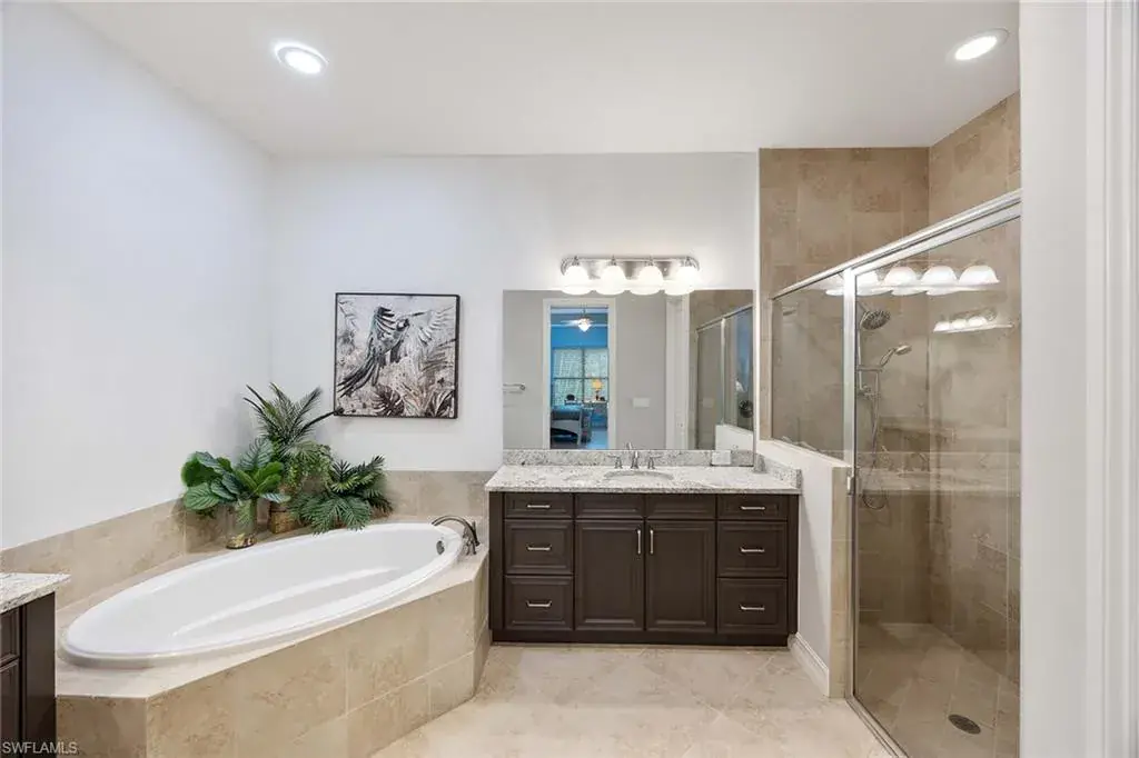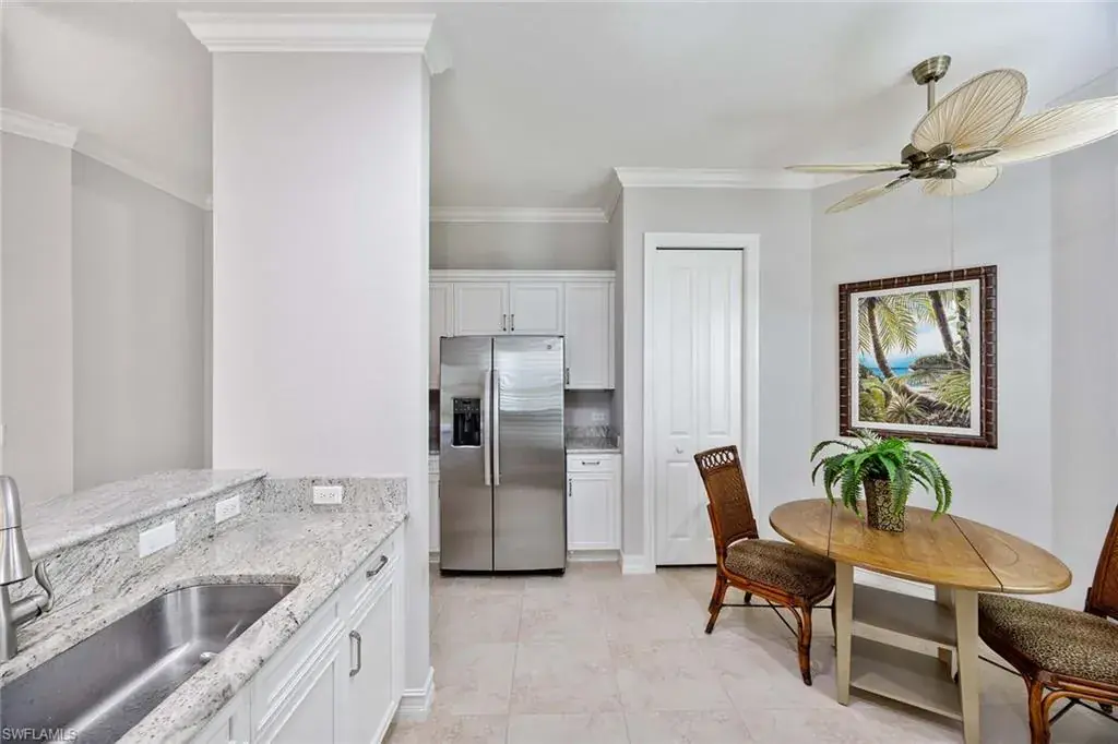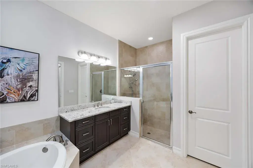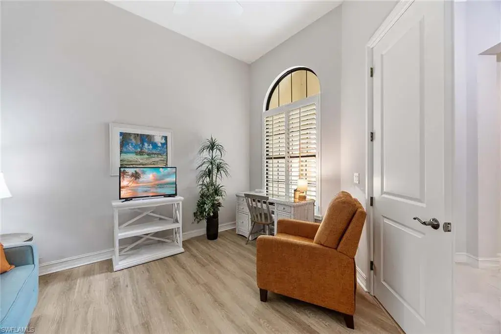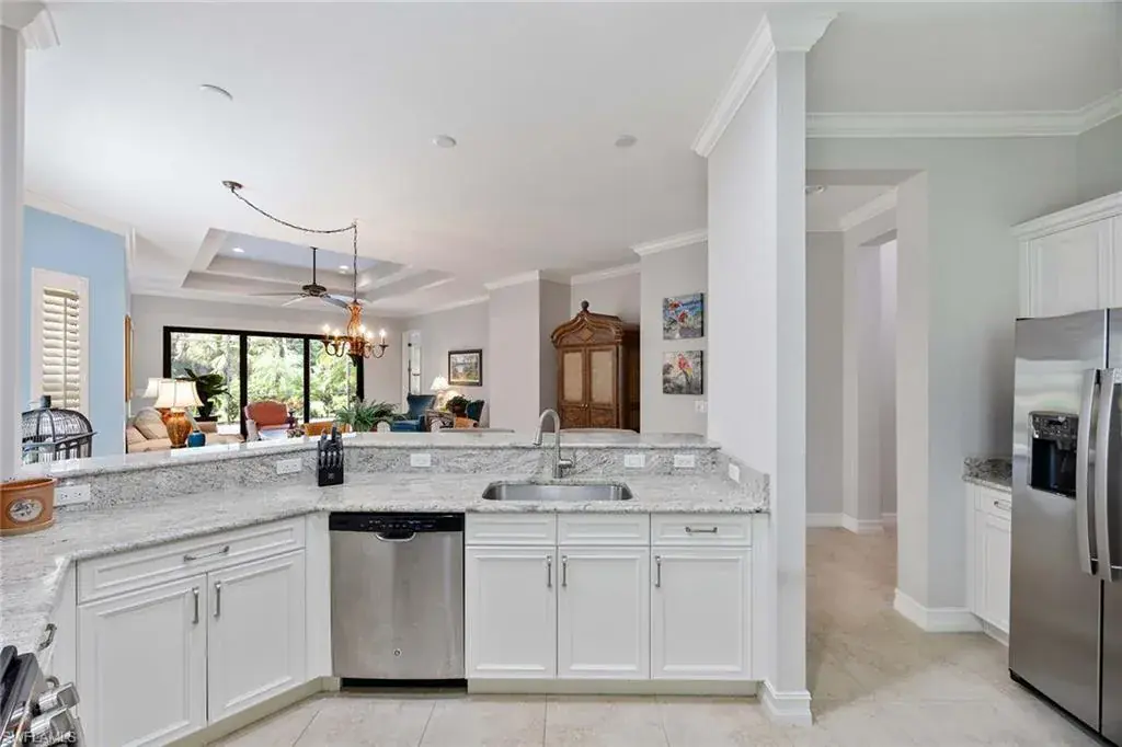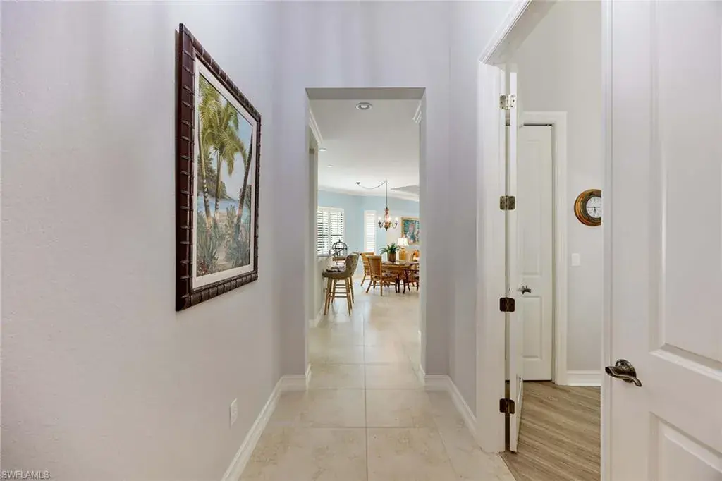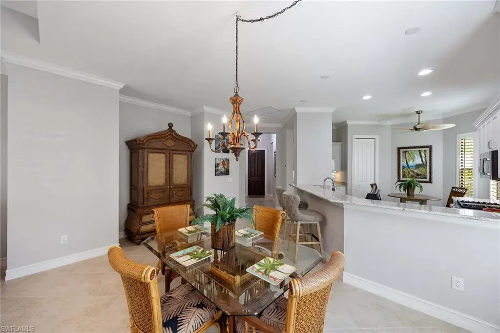 Experience the quiet serenity of this beautifully upgraded Napoli Villa by Stock Development, in the exclusive gated community of Lakoya at Lely Resort. Offering over 1,882 square feet of refined living space, this three-bedroom, two-bath home combines timeless elegance with modern comforts. Enjoy the convenience and security of natural gas, impact-resistant windows and doors, and a whole-home generator. The spacious layout includes a generous main suite, formal and casual dining areas, and a contemporary kitchen featuring upgraded white cabinetry with soft-close drawers, granite countertops and stainless steel appliances. Thoughtful design details throughout the home include a soaring 12-foot double tray ceiling in the main living area, crown molding, plantation shutters, eight-foot interior doors, elegant lighting fixtures and ceiling fans. Flooring includes diagonally set tile in the main living areas and rich wood floors in the second and third bedrooms. Go outside to an extended lanai, ideal for entertaining guests, with ample space to add a pool and spa if desired. Residents of Lakoya enjoy exclusive access to the award-winning Players Club & Spa at Lely Resort, offering 13 tennis courts, pickleball and bocce ball courts, two resort-style pools, a lap pool, full-service spa, state-of-the-art fitness center, and indoor and outdoor dining, including a lively tiki bar. Golf enthusiasts can take advantage of two public courses or opt for private membership at the prestigious Classics Golf and Country Club. This exceptional home offers a blend of luxury, comfort and lifestyle in one of Naples sought-after communities.