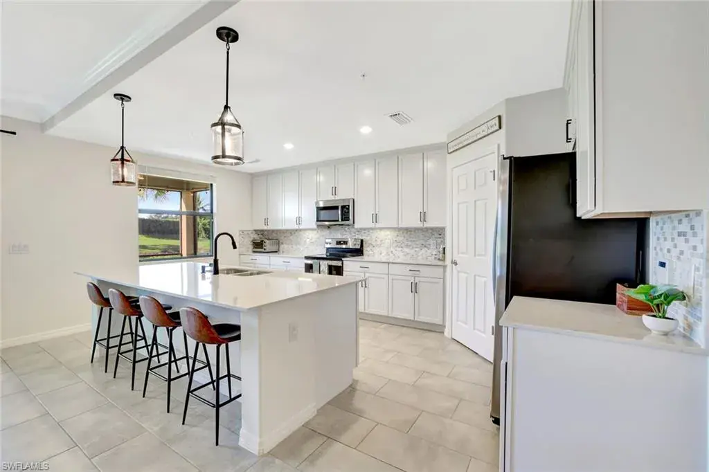 This comfortably designed coach home features 1,741 square feet of living space. There are 3 bedrooms that occupy two opposite ends of the home for a friendly split plan. The master bedroom includes 2walk-in spacious closets along with a large master bathroom. The remaining two bedrooms share one full bathroom and utility closet for handy storage solutions. The dining room and living room offer inviting open concept living spaces. A covered patio with ceiling fan keeps pest out and allows for a cool breeze in. The 2 car garage is perfect for inside parking and storage. Lamorada boasts a luxury 13000 sq. ft clubhouse with poolside bar with food and beverage service. The pool has lap lanes, spa and massage room, a culinary arts demonstration room for food demonstrations and wine tastings, movie theater, card/craft room,fitness center and exercise rooms, tennis pickleball and bocce are all avaiable at Lamorada!