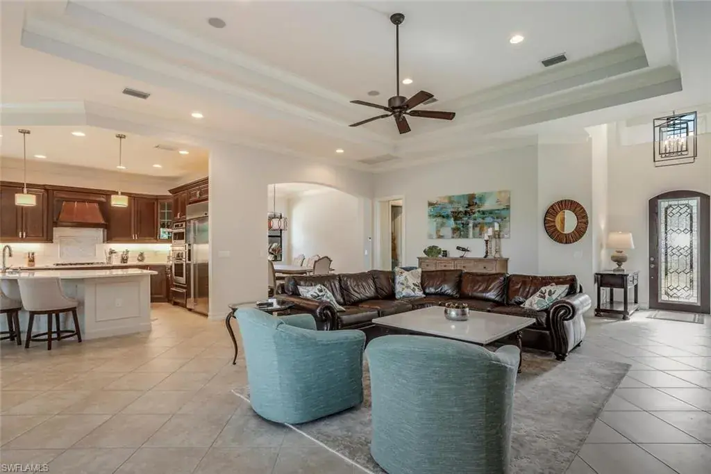 Meticulously maintained upgraded 3+Den/2.5 Ba. (Den optional 4th bedroom w/ walk-in closet). New custom kitchen layout w/Quartz countertops, tile backsplash, gas 5 burner Wolf cooktop with decorative custom vented hood, Monogram appliances (Convection Microwave, Oven and separate warming tray), pendant & recessed lighting. Great room floor plan w/ sliding hurricane doors to lanai. Custom window treatments. Master retreat offers a private entry door to lanai, separate his/her walk-in closets w/ custom built-in drawers and organizers. New Master bath: Porcelain tiled wall, Quartz countertops, oversized soaking tub, walk-in shower with quartz bench seat and glass entry, sconce lighting & chrome fixtures. The two light and bright guest rooms offer a share bath and pocket door for separation from the main living area. A buried 500 gallon propane tank supplies the kitchen cook-top, gas outdoor kitchen, and salt-water heated pool/spa. The spacious lanai offers plenty of room for entertaining guests and family. Other features include: Plantation shutters, custom window treatments, zoned A/C, 3 Car side load garage, hurricane impact windows & doors, tile flooring in main living area, large kitchen nook, & separate formal dining area. Olde Cypress is a very active community with numerous amenities. Olde Cypress is a low-density gated community with 550 single family homes, located in N. Naples, the Social Membership allows residents to use the clubhouse facilities which include club activities, fine & casual dining, tennis, pickleball, swimming pool, fitness and meeting rooms. Residences of the community may enhance their privileges by upgrading to a Golf Membership or Associate Membership on the prestigious P.B Dye designed course. There is a new Clubhouse renovation taking place that will put Olde Cypress in a class of its own. In addition, residents enjoy a P.B.Dye designed championship golf course, resort-style clubhouse with dining, fitness center, Har-tru tennis courts, pickleball and an active year-round social calendar. Golf membership is optional. Social membership is required. Live the ultimate Naples luxury lifestyle. Located just off I-75, allowing easy access to Fort Myers airport, numerous restaurants, beaches and shopping.