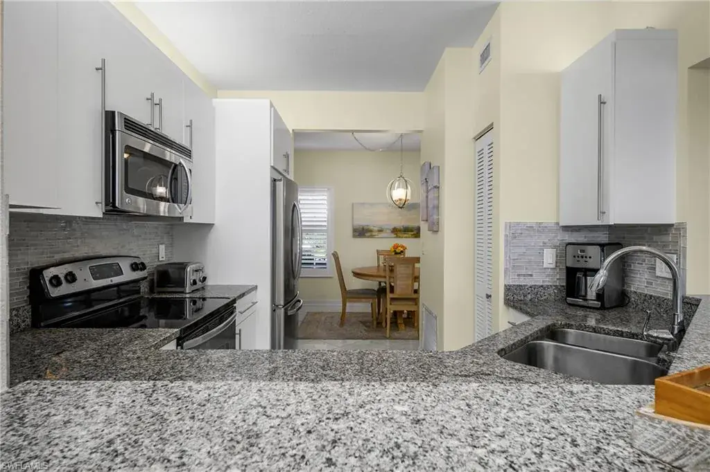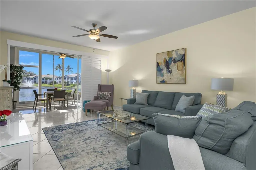 Beautiful Furnished updated three full bedrooms looking south with long Lake & fountain views. Interior features granite countertops, tile floors, & new wood like floors, updated kitchen and bathrooms, impact glass sliding doors on lanai and impact windows along with the French entry doors. Versatile floor plan offers a great room feel. Separate dining area off the kitchen and enclosed Lanai. Walk to the pool and Clubhouse. Enjoy all the amenities that Pelican Bay offers, two Beachfront dining areas, Community Center with exercise equipment for all your needs and spa, 18 tennis courts and pickleball in the making. Canoes, Kayaks, sailing club and walking paths. Nestled between the Ritz Carlton Beach Hotel and the Waterside shops. Minutes to downtown Naples and the famous 5th Avenue. Come enjoy the Florida lifestyle at its best.