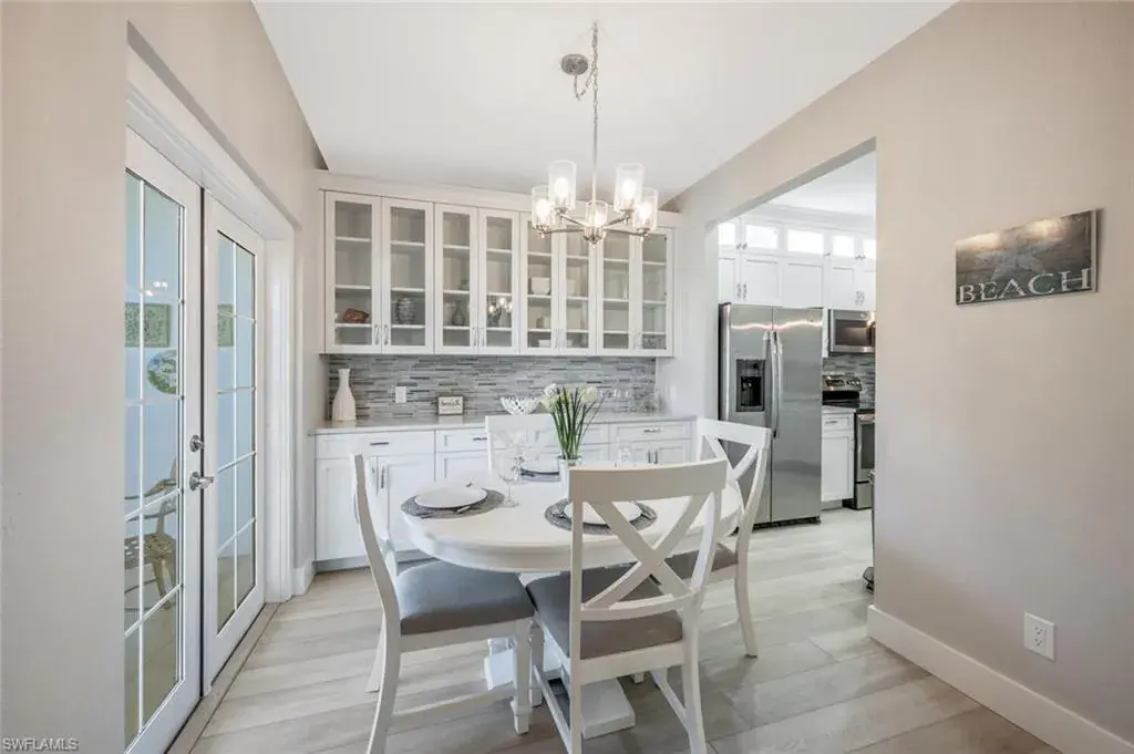 Experience the pinnacle of luxury living in this fully updated first-floor condominium, nestled in the prestigious Laurel Oaks at Pelican Bay. This exquisite 2-bedroom, 2-bathroom residence showcases impeccable craftsmanship, featuring newly installed shaker cabinetry in the dining room and kitchen, enhancing both storage and entertainment possibilities. French doors gracefully open to the welcoming front entry porch, creating a seamless blend of indoor and outdoor living. The kitchen is adorned with quartz countertops, a decorative backsplash, GE stainless steel appliances, and elegant luxury laminate wood flooring. Both the en-suite and guest bathrooms have been thoughtfully upgraded with sophisticated finishes. Polybutylene Pipes have been replaced by seller.