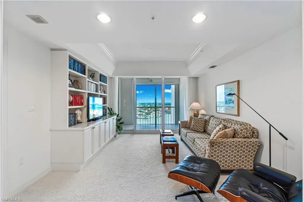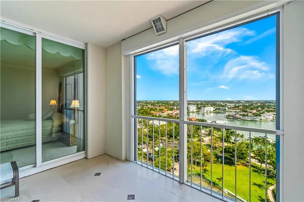 Perched on the 17th floor of Le Ciel Park Tower in Park Shore, this elegant 2-bedroom plus den, 3-bath residence embodies refined coastal living where timeless sophistication meets panoramic Gulf, Bay, and city skyline views. Encompassing more than 2,600 square feet of thoughtfully designed living space, this residence offers the perfect balance of elegance and comfort. Sunlight floods through expansive windows, illuminating an open layout that seamlessly connects the living and dining areas, perfect for hosting family and friends. The expansive west-facing lanai provides a stunning vantage point for breathtaking sunsets over the Gulf, creating a spectacular backdrop for relaxation or entertaining, while the kitchen is both beautiful and functional, featuring a charming breakfast nook with sweeping views that provide an ideal setting for morning coffee or intimate dining. The serene primary suite serves as a private retreat with dual walk-in closets and a luxurious bath complete with dual sinks, a soaking tub, and a separate shower, and the den offers versatility as an office or guest space, also showcasing beautiful Bay and city views. Additional features include electric hurricane shutters, extra storage, and two deeded parking spaces in the secured garage. Offered turnkey furnished, this residence allows for an effortless transition into Naples’ coveted beachfront lifestyle. Residents of Le Ciel Park Tower enjoy world-class amenities including a grand lobby, resort-style pool and spa, fitness center, tennis courts, social room, and 24-hour on-site management within a secure gated community, with direct beach access and the option to lease or purchase a boat slip at the nearby Venetian Bay Yacht Club. Just steps from the upscale dining and boutique shopping of Venetian Village, this coastal oasis captures the essence of luxury, convenience, and timeless elegance.
