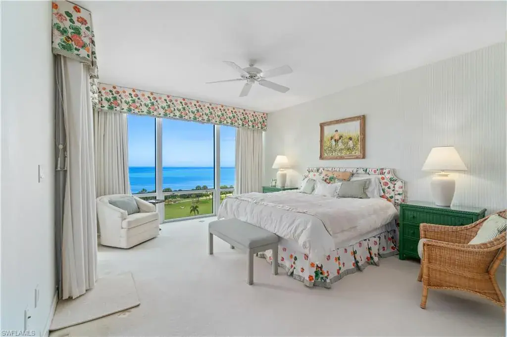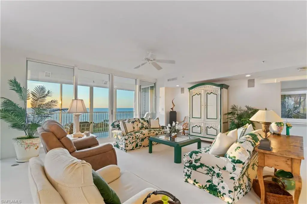Indulge in the best of Naples’ beachfront living at the prestigious Le Ciel Venetian Tower in Park Shore, where timeless sophistication meets panoramic Gulf views. Rarely available and highly sought-after, this 02-stack residence captures endless sunsets from its west-facing lanai, offering the perfect vantage point to unwind in luxury. With over 2,500 square feet of living space, this 3-bedroom, 3-bathroom condominium showcases floor-to-ceiling windows that flood the interiors with natural light and highlight the coastal horizon beyond. The spacious primary ensuite features serene Gulf vistas, dual his-and-hers closets with generous storage, dual vanities, and a separate tub and shower. The thoughtfully designed layout offers a kitchen with ample space for entertaining, an open living and dining area, ensuring comfort and privacy for guests. A south-facing balcony provides a tranquil retreat to enjoy gentle breezes and the twinkle of city lights over Venetian Bay. Additional features include two secured parking spaces located under the building, zoned HVAC, electric hurricane shutters installed in 2022, and extra storage. This retreat is being offered turnkey furnished for immediate enjoyment. Residents enjoy world-class amenities including a newly and magnificently remodeled lobby, gated entry, on-site management and security, a beachfront heated pool and spa, tennis courts, a secured, refinished dual-level parking garage located under the building with new epoxy flooring, a fitness center with sauna and steam rooms, social room, two guest suites, BBQ area, and direct beach access all just moments from upscale shopping and dining at The Village on Venetian Bay, the scenic Park Shore Promenade, and available boat slips at the Venetian Bay Yacht Club.