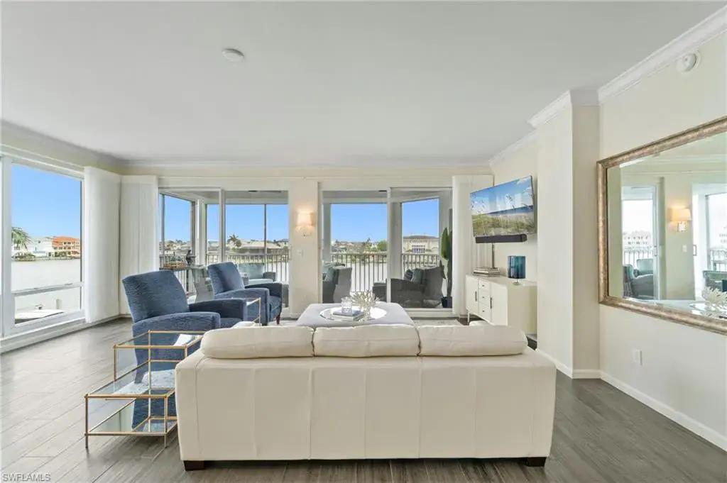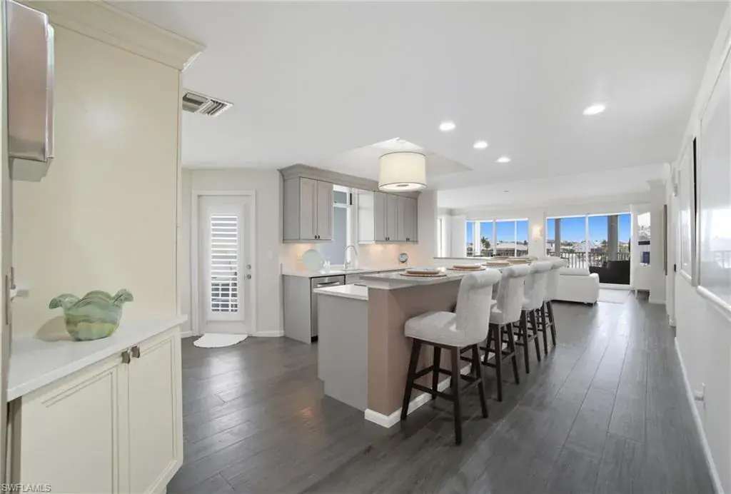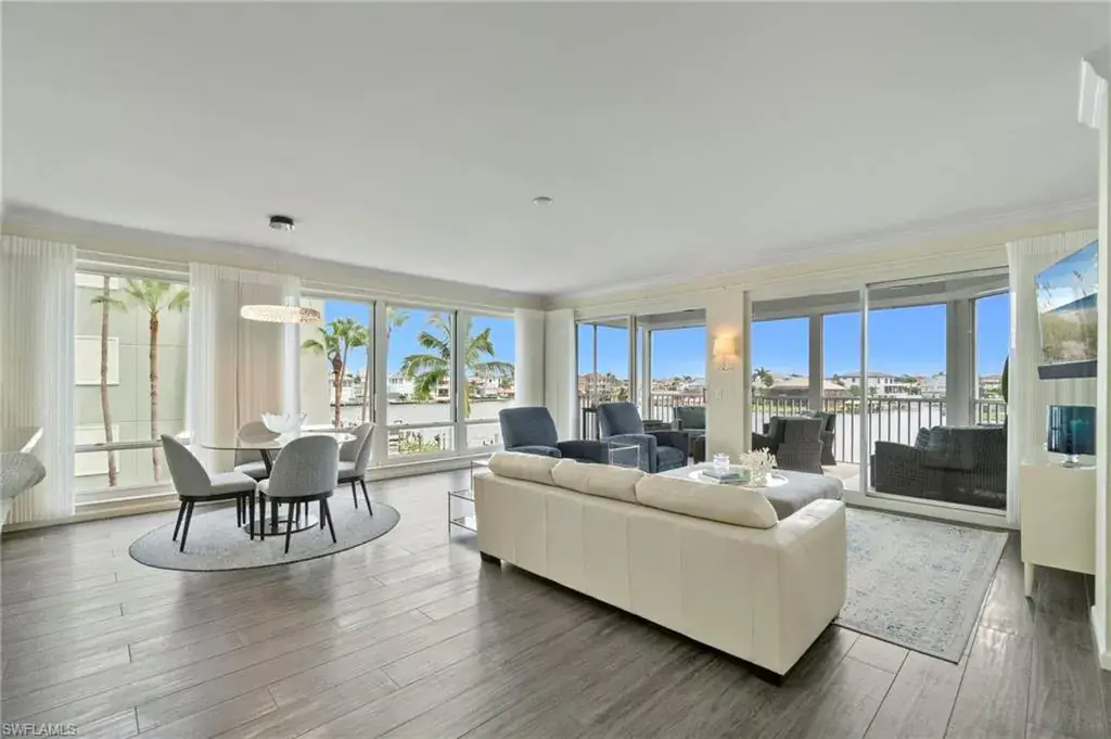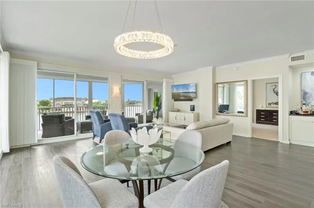 Experience luxury coastal living in this rarely available Le Dauphin end unit condo, offering sweeping panoramic views of Vanderbilt Bay with deeded beach access. The unit also has access to a private beach club. Beautifully renovated and meticulously maintained, this spacious 3-bedroom, 2.5-bathroom residence spans 2,245 square feet and is filled with natural light, thanks to floor-to-ceiling windows and an open-concept layout designed to capture the beauty of the surrounding landscape. This residence features three private outdoor terraces, each offering distinctly different views — from breathtaking sunrises over the bay to peaceful evenings by the Gulf. The gourmet kitchen is a showpiece, equipped with stainless steel appliances, quartz countertops, designer finishes, and bar-top seating for six, perfect for both casual dining and entertaining. Elegant ceramic tile runs throughout the main living areas, while the primary bedroom is a tranquil retreat with plush carpeting, a large walk-in closet, and a spacious ensuite bathroom featuring a frameless glass shower and dual vanities. Le Dauphin is a boutique waterfront community offering exceptional amenities, including a private heated pool overlooking the bay, tennis courts, boat slips, an outdoor kitchen and dining area, and a fully renovated lobby. Residents also enjoy secure indoor garage parking and additional air-conditioned storage space. For peace of mind, the building has received a satisfactory structural milestone inspection, certified through the year 2034. Located adjacent to the prestigious LaPlaya Beach and Golf Resort, this home is within walking distance to upscale waterfront dining at Baleen and The Turtle Club, and just minutes from the shops, restaurants, and nightlife of Mercato. This is a rare opportunity to own a luxurious coastal residence in one of North Naples’ most desirable and prestigious neighborhoods — ideal as a full-time home or a refined seasonal getaway.