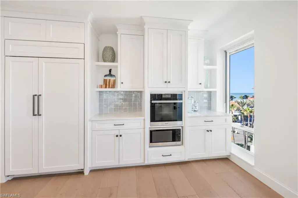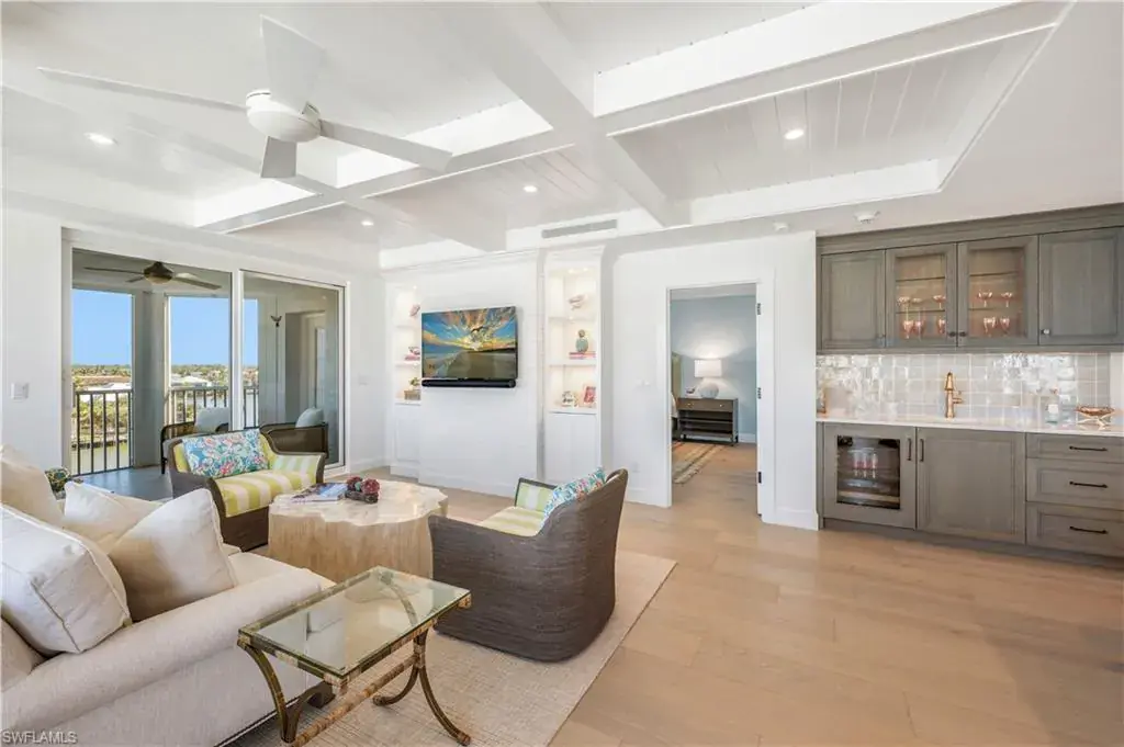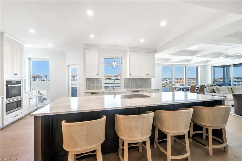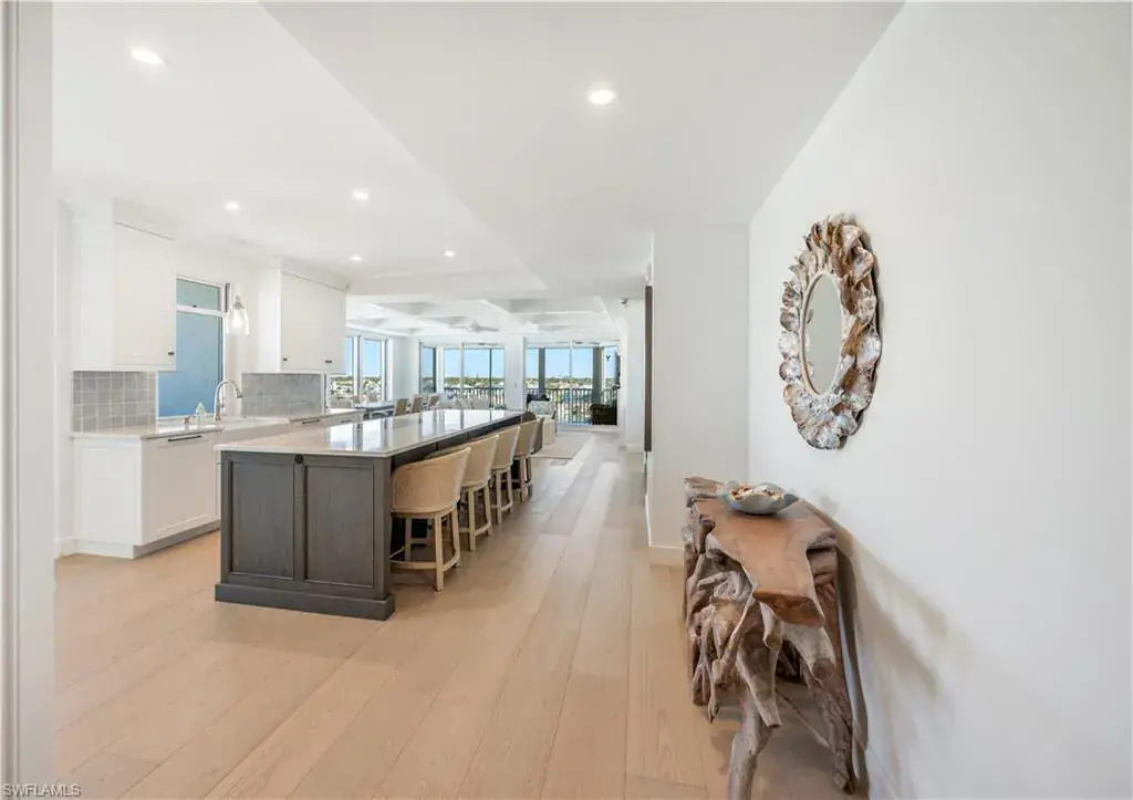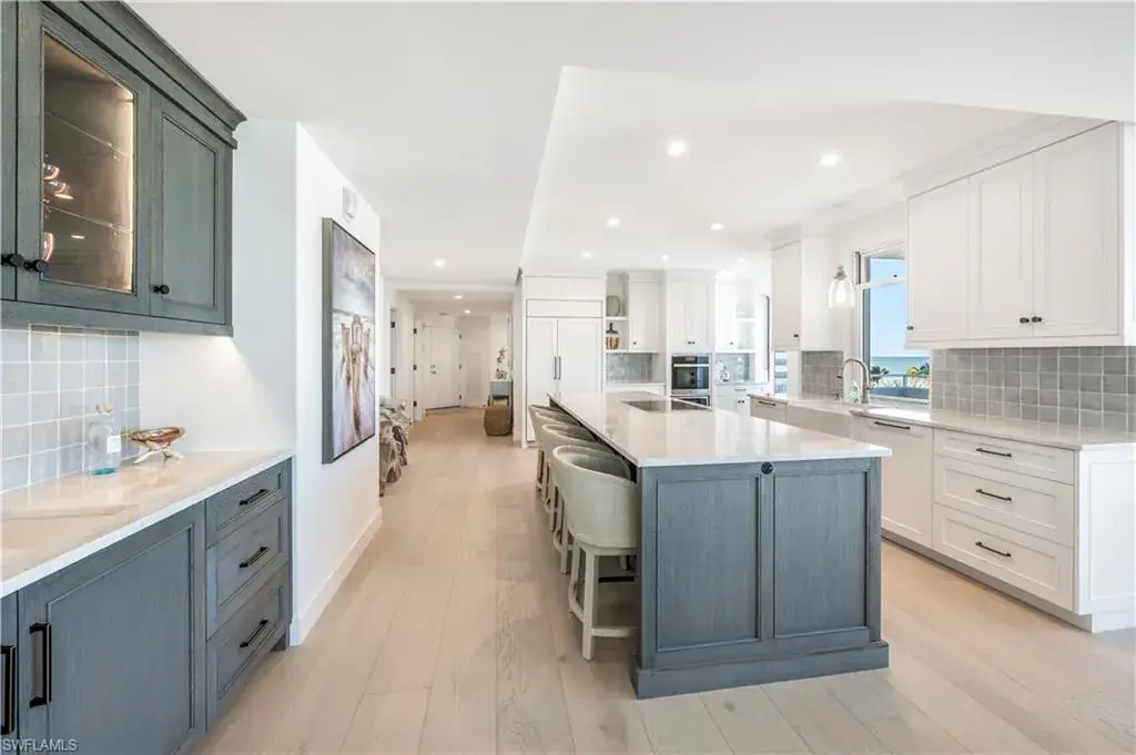 Exquisite, Unique, Extraordinary in every detail and finish. New BCB homes remodel, never lived in. This luxury corner residence overlooking Vanderbilt Bay was transformed into a modern masterpiece by Freestyle Interiors and BCB Homes, Inc. The open floor plan offers stunning long water views with natural light cascading through the home. Brand new BCB remodel with elegant hardwood flooring throughout, recessed shiplap ceiling, Ruffino cabinetry, Subzero refrigerator/freezer and Subzero beverage refrigerator, and Miele steam combination oven. modern cabinetry, elegant backsplash, and quartz countertops. The master bedroom features stunning views. The spa-inspired master bathroom is finished with a frameless glass shower enclosure, quartz countertops, and custom-designed closets. This luxury home includes world-class amenities catering to the connoisseurs of life. Indulge in a lifestyle with a private beach, cabanas by the pool, and fine dining. Taste a sunset glass of wine at the beach fire pit, or the Tiki bar. Enjoy the luxury spa, after a workout at the fitness center, pickleball, or tennis. Or invite your friends to the private barbeque grille by the pool. Watch the sunrise from the lanai and sunset from the patio. The residence includes a deeded newly built boat slip, a designated indoor parking space, and an airconditioned storage unit. You’ve got it all at this Exquisite, Unique, Extraordinary Le Dauphin residence on the renowned Vanderbilt Beach, for a fraction of the cost of The Ritz-Carlton Residencies, Naples.