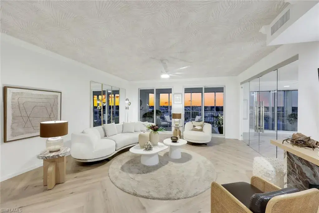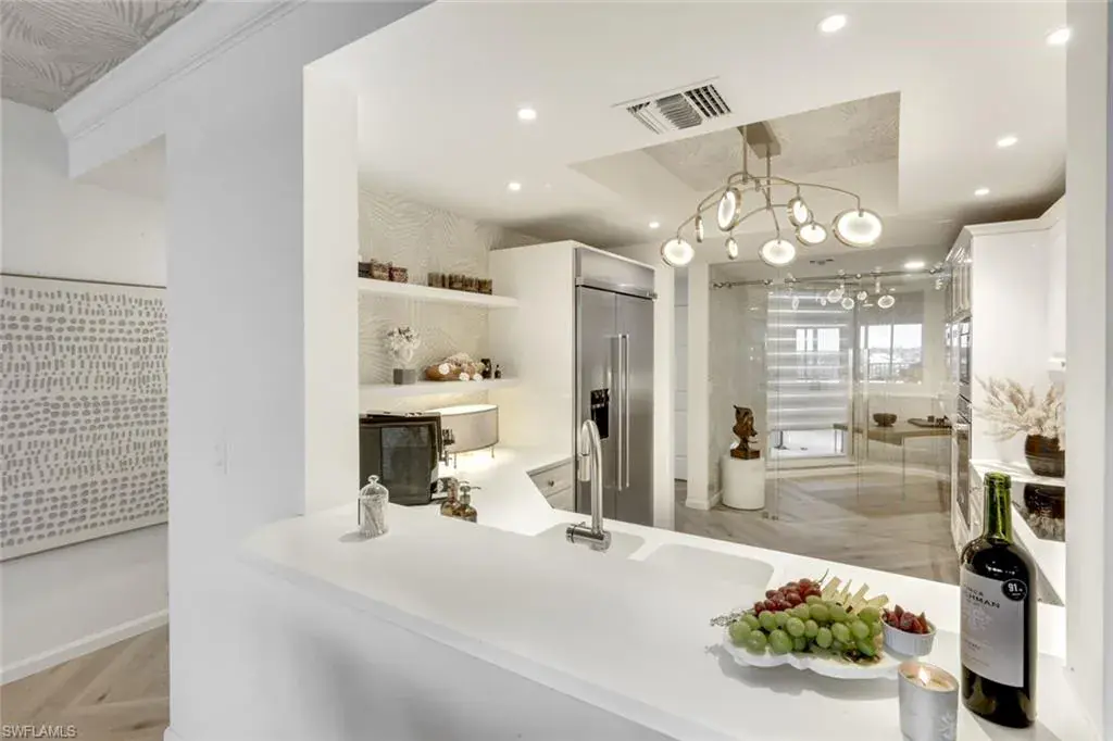 Res. 505 has been completely reimagined by the award-winning Schreier Interior, located in the heart of Naples’ design district, this esteemed firm has crafted remarkable custom interiors sophisticated and luxurious designs. Schreier Interior also designed the stunning interior for the lobby showcasing their exceptional ability to create inviting and elegant spaces. Every detail of this residence has been curated to embody the essence of coastal resort living, showcasing breathtaking intercoastal views through expansive ½” glass walls and sliding doors that seamlessly connect indoor and outdoor spaces.