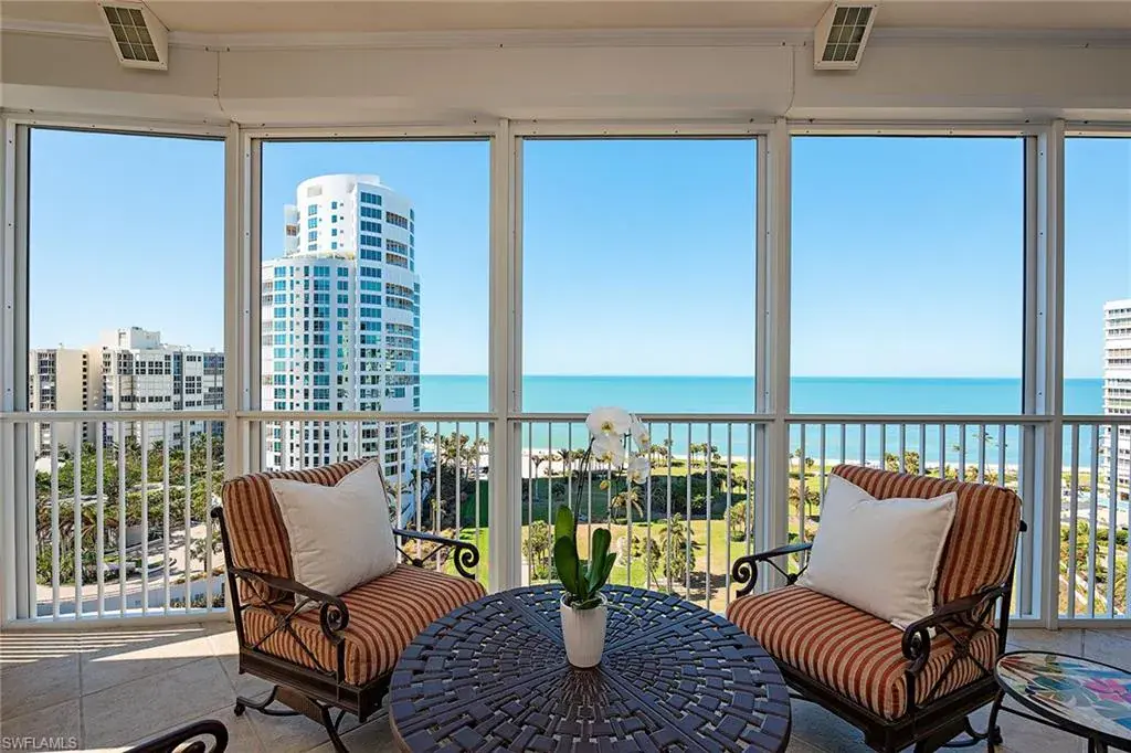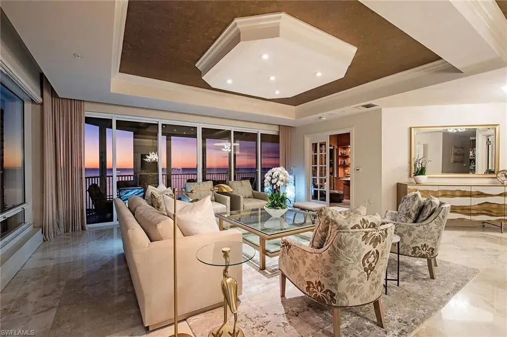 Experience the epitome of Park Shore beachfront lifestyle. Le Jardin’s design offers unique privacy from the moment you enter your garage and step into your residence. This spacious, luxurious home has window walls of glass inviting an abundance of south-side light while framing stunning views of the glistening gulf, Venetian Bay and city vistas. The thoughtfully designed floor plan features a generously sized primary suite, separate living and family rooms, and two secluded guest rooms, along with two screened and shuttered lanais ideal for enjoying spectacular sunrises and sunsets. Offered fully move-in ready and turnkey furnished, the elegant interior design seamlessly blends timeless style with contemporary sophistication. Le Jardin, The Garden, is a top-tier boutique beach building with only 52 residences. Resort-style amenities are inclusive of a beachfront pool and spa, outdoor grill area, fitness center with sauna and steam rooms, club room, tennis court, three guest suites and 24-hour security.