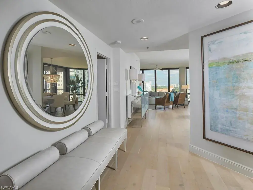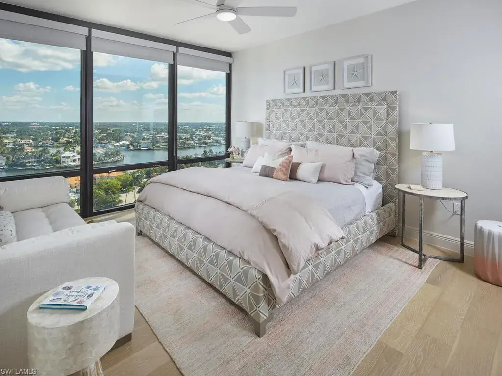 Experience breathtaking Gulf-to-Bay views from this 12th-floor 04 stack residence at Le Parc, rare opportunity to own in one of Gulfshore Boulevard’s most prestigious buildings. From sunrise over Venetian Bay to sunsets across the Gulf, the living room and primary suite frame sweeping views that stretch all the way to Sanibel Island.