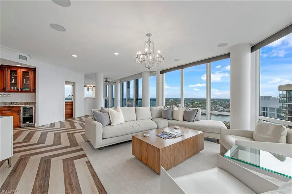 Enjoy magnificent views of the Gulf and the Bay from this bright and spacious southwest-facing 18th floor unit in Le Parc! Spacious, open layout, huge master suite, large en-suite guest bedroom with walk-in closet, continuous floor to ceiling windows throughout, nicely remodeled kitchen, built-in dining banquette, and luxury porcelain tile floors. Le Parc offers luxury, beachfront living at its finest, with upscale amenities including a beachfront heated pool and spa, BBQ area, modern fitness facility, tennis court, gated entrance and 24 hour security, and an on-site manager. 2 covered parking spaces included. Boat slips are available for lease or purchase for Park Shore residents at the Venetian Bay Yacht Club.