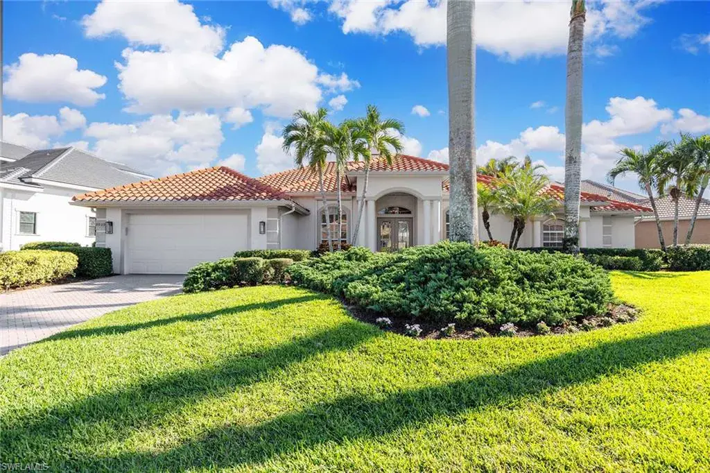 Enjoy the long panoramic water views and privacy of this wonderful custom-built home in the prestigious Lely Island Estates at Lely resort. This beautifully maintained residence features four bedrooms plus den, three full baths and private office, all set on a premium lot with over 120 feet of frontage with lush, mature landscaping. Some of the many features include, newer roof and air conditioning, 12-foot ceilings throughout and a gas fireplace with 60- gallon propane tank that could also provide for a gas range, dryer, pool heater or grill. The open spacious kitchen includes double thick countertops with newer induction oven. Also included is a 7.5-kilowatt generator. Lely Resort offers amenity-rich lifestyle with access to three championship golf courses and the award-winning, optional Players Club & Spa. Lely Island Estates is also desirable for its low maintenance fees.