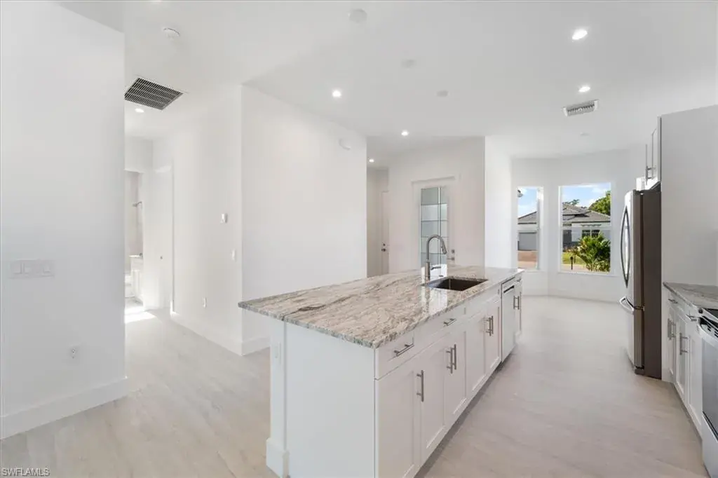 As you step into the expansive living space, you’ll be greeted by high ceilings and stylish design elements that create a sense of sophistication and comfort. The gourmet kitchen is equipped with state-of-the-art appliances and custom cabinetry, making it ideal for hosting gatherings or simply enjoying a quiet evening at home.