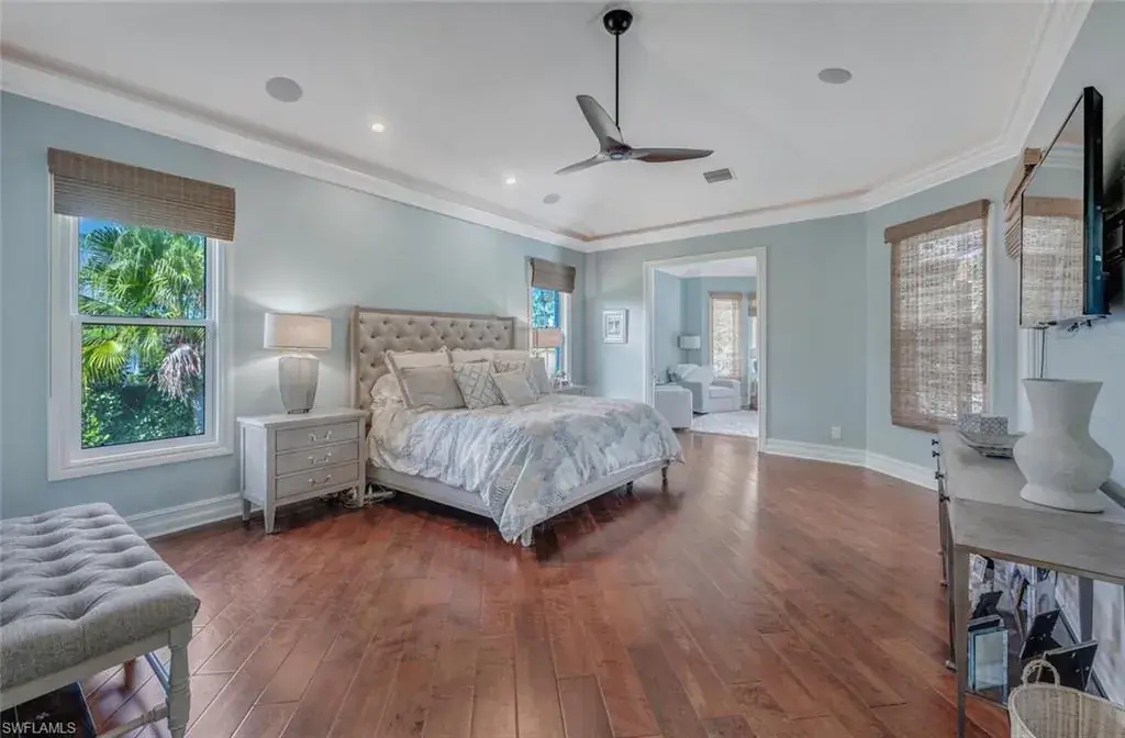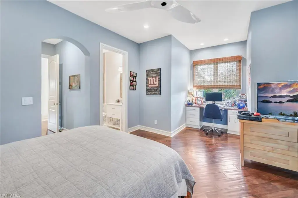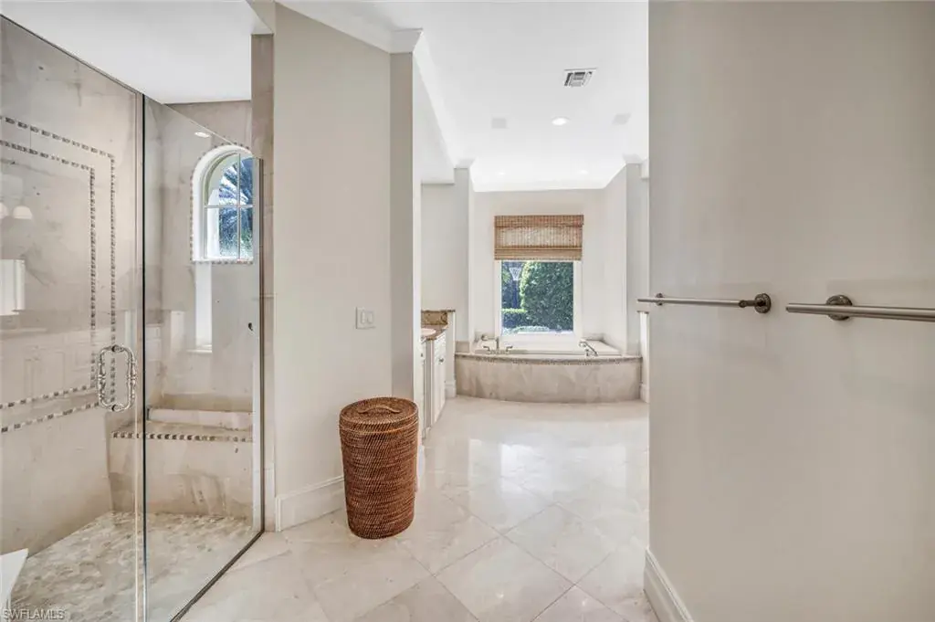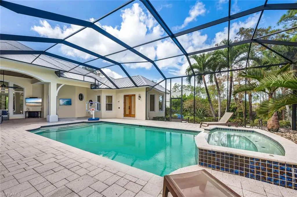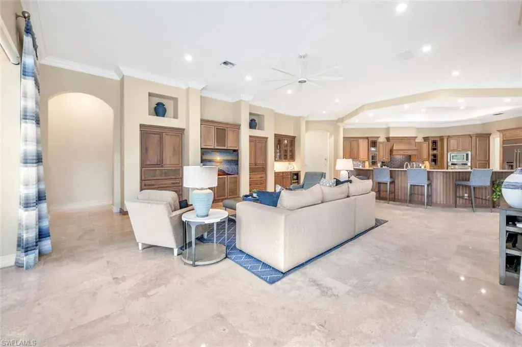 Welcome to this STUNNING Estate Home situated in the Premiere Livingston Woods Neighborhood! From the moment you walk-through the beautiful French front doors, you get a Spectacular Grand Foyer and Pool/ Backyard View. This 5 bedroom + den two-story home also features 3 of the bedrooms with en-suites; 5 full bathrooms, 4 car bay garage with workshop/bonus room to meet the needs of car enthusiasts. This meticulously cared for home has impressive updates such as; kitchen quartz countertops, subway tile backsplash, Dacor Microwave Oven, Built in Cabinet Ice Maker, ALL Interior Cabinet Hardware, Built-In Gas Grill; Lighting and Ceiling Fans Inside and Out, and fresh interior paint. The First-Floor guest bedroom has recent A/C replacement. The home’s layout is an entertainer’s dream with its Open Concept Kitchen/Great Room and 90-degree sliders that open for true indoor/outdoor living. Grill up a fresh catch on the new outdoor grill and dine al fresco on the beautiful lanai by the pool and spa. The pool equipment updates include; heater, filter, and a conversion to a saltwater system along with a new Lanai Cage. The outdoor accent Lighting has been updated and enhanced Lush Landscaping. The Primary Bedroom has a Spa like Ensuite, with Built-in closet systems and a multipurpose area for lounging or workouts. The Office, located right across from a full bathroom, is Light and Bright and can be used as a 6th sleeping space. The first floor guest bedroom is ensuite with access to the Lanai. The Second-Floor features 3 bedrooms, 2 full bathrooms, a family room is perfect for extra living space, with closet and EXTRA storage space. The laundry room is a WOW! with built in cabinets and countertop space galore! The under stair walk-in pantry provides additional convenience. This well designed home in a FEMA X Flood Zone is in a prime location within minutes to top rated schools, shops, restaurants and Naples’ beautiful white sandy beaches, Don’t let this rare gem get away!!
