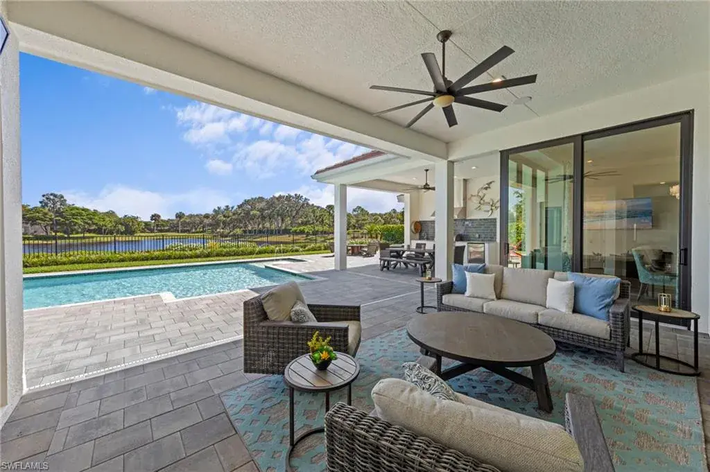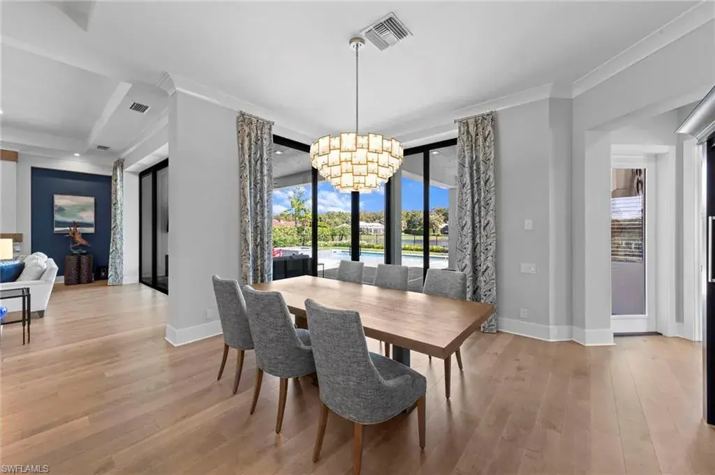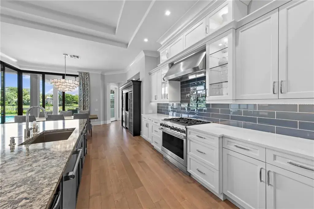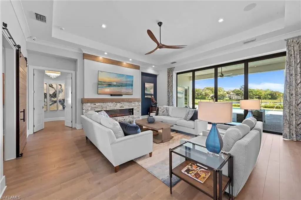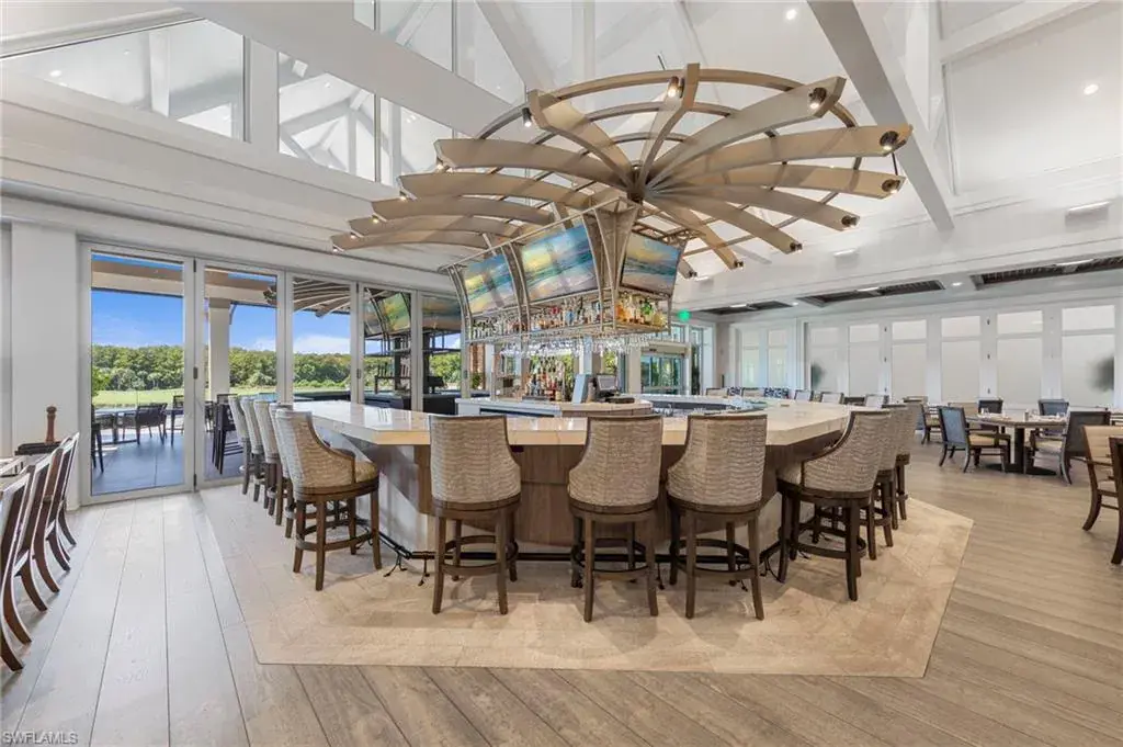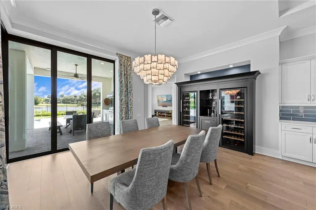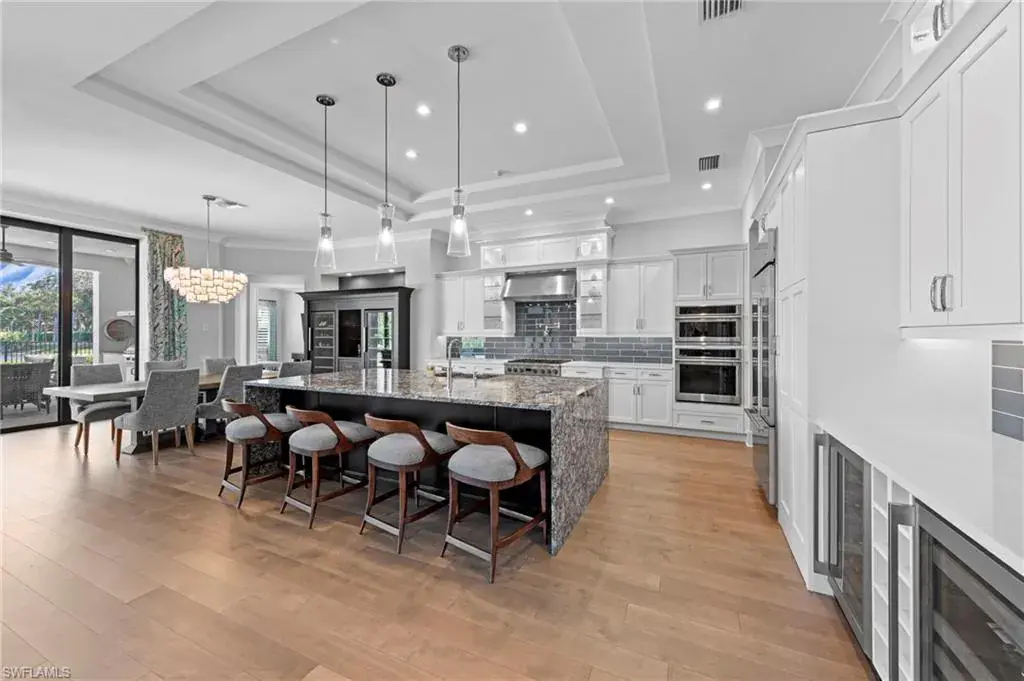 Two garages each for 2 cars, spacious lanai with an unobstructed lake view. Oversized lot makes you feel as if you are on your island. The outdoor kitchen with glass tile backsplash, granite countertops, beverage fridge and 36 – inch grill with hood perfect when dining out Features include trayed 14 ft.ceilings with crown molding, a full impact window and door package, interior sound proofing, a stone surround fireplace, three individually controlled SONOS zones in the great room, bonus room, and lanai, as well as surround sound in both the great room and bonus room. There is an extensive home automation system built around the Alarm.com app including monitored security system connected to fire and police.Motion sensors and pen/closed sensors on all windows and doors. Lutron switches throughout the home offering remote interior and exterior lighting control. Nest remote temperature control and monitoring. Remote access to garage(s) and rear entry using Alarm.com, wine enthusiasts will love the custom Euro Cave built in wine wall. A Generac generator. Many Many other upgrades and details. Truly a home designed for entertaining start creating memories. The Twin Eagles Clubhouse completed a full renovation in 2022, fitness center, bocce courts, tennis courts, tiki bar, card room and of course 4 new pickle ball courts. Twin Eagles offers 36 holes of Jack Nicholas Group and Steve Smyers courses and is also Audubon certified.