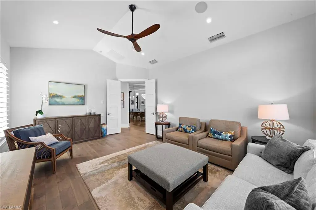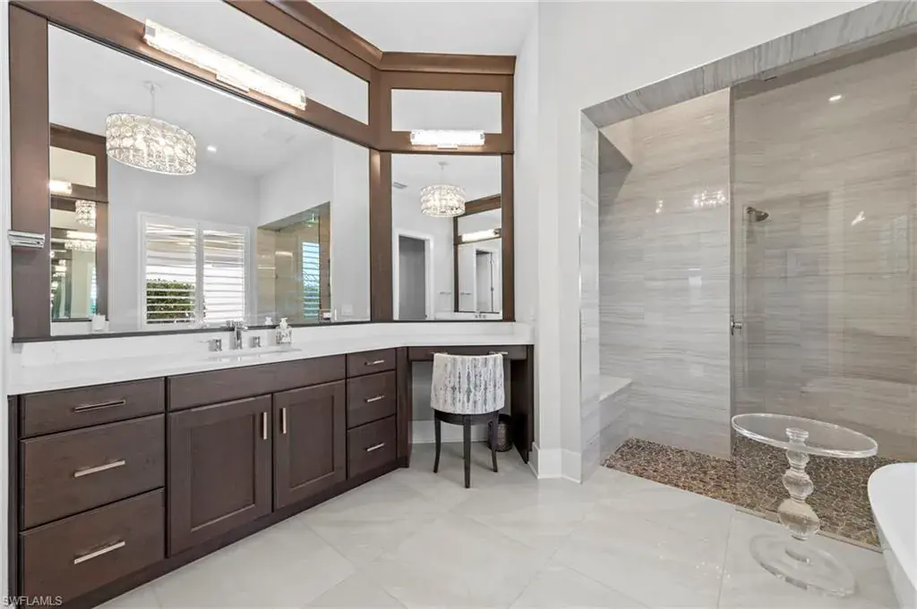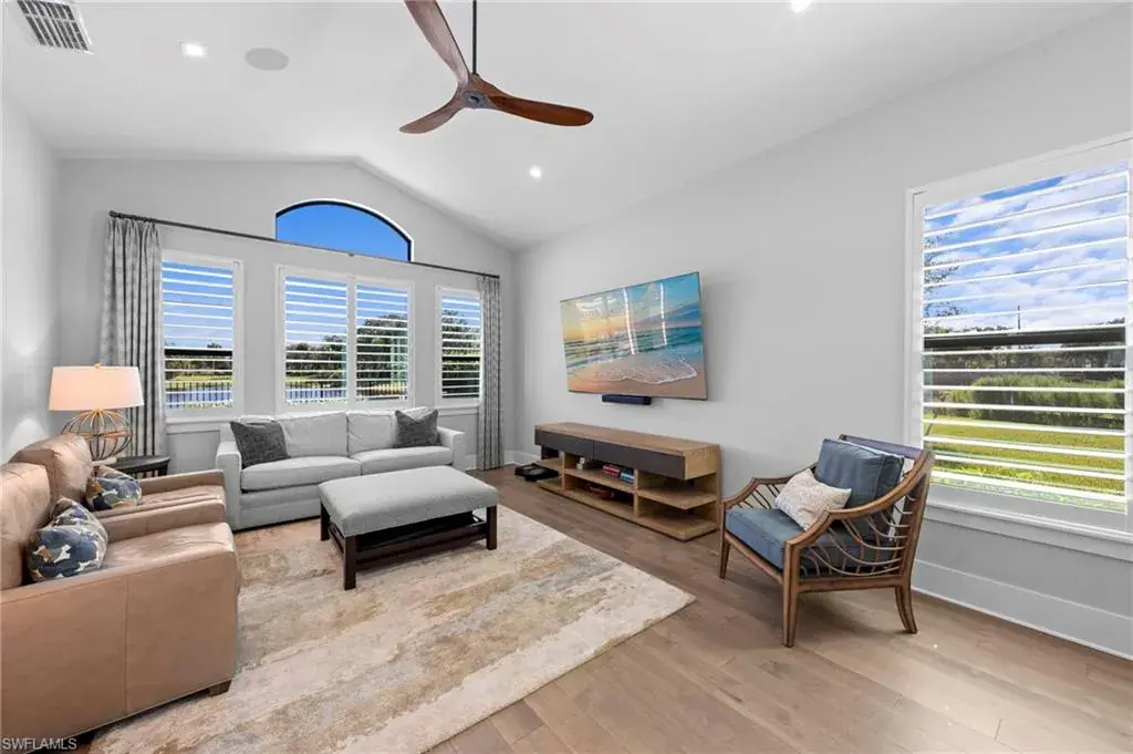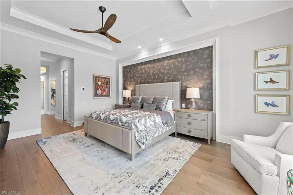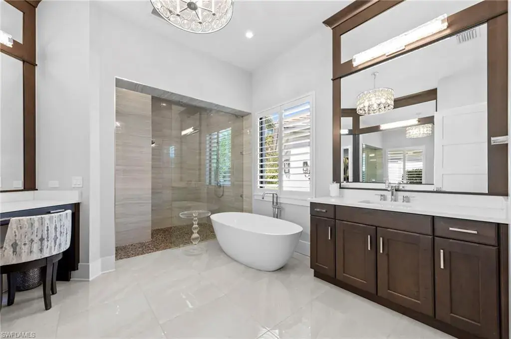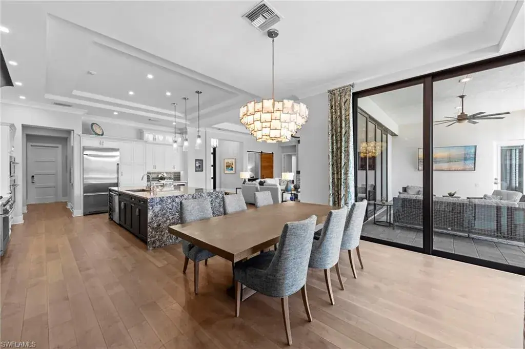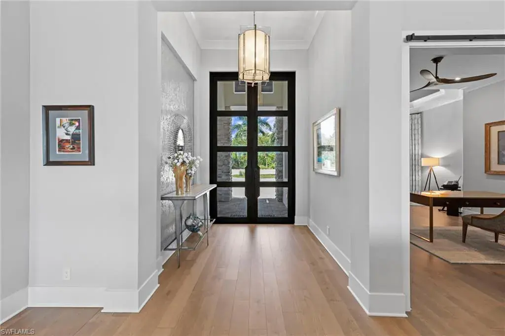 Two garages each for 2 cars, spacious lanai with an unobstructed lake view. Oversized lot makes you feel as if you are on your island. The outdoor kitchen with glass tile backsplash, granite countertops, beverage fridge and 36 – inch grill with hood perfect when dining out Features include trayed 14 ft.ceilings with crown molding, a full impact window and door package, interior sound proofing, a stone surround fireplace, three individually controlled SONOS zones in the great room, bonus room, and lanai, as well as surround sound in both the great room and bonus room. There is an extensive home automation system built around the Alarm.com app including monitored security system connected to fire and police.Motion sensors and pen/closed sensors on all windows and doors. Lutron switches throughout the home offering remote interior and exterior lighting control. Nest remote temperature control and monitoring. Remote access to garage(s) and rear entry using Alarm.com, wine enthusiasts will love the custom Euro Cave built in wine wall. A Generac generator. Many Many other upgrades and details. Truly a home designed for entertaining start creating memories. The Twin Eagles Clubhouse completed a full renovation in 2022, fitness center, bocce courts, tennis courts, tiki bar, card room and of course 4 new pickle ball courts. Twin Eagles offers 36 holes of Jack Nicholas Group and Steve Smyers courses and is also Audubon certified.