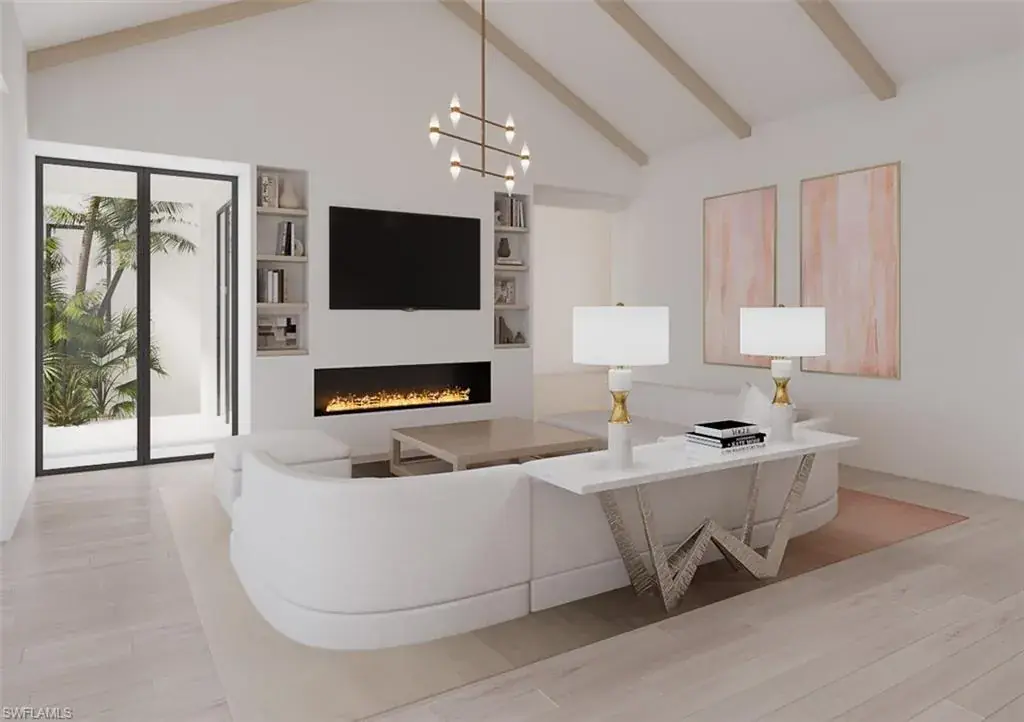 Welcome to 4854 Boxwood Way, a captivating new construction home in Logan Woods. This build unveils a coastal contemporary masterpiece that seamlessly combines luxury and comfort. This 4-bedroom residence, featuring an additional den or office space, boasts 5 and a half baths and an expansive 5,681 square feet of living space. Upon entering, you are greeted by a private master bedroom suite off the front foyer, providing a tranquil retreat for homeowners. The residence caters to various lifestyle needs, with its additional bedrooms, living spaces, and 4-car garage. The heart of the home lies in the large great room, which effortlessly connects to the open kitchen. This seamless layout opens up to a breathtaking view of the resort-style pool, complete with a firepit area and a full outdoor living entertainment space. Picture yourself lounging by the poolside or enjoying the outdoor cabana and kitchen area, surrounded by lush landscaping, creating a serene oasis right in your backyard. Designed to evoke a tropical vacation ambiance, this residence at 4854 Boxwood Way is the epitome of luxury and private living in Naples.