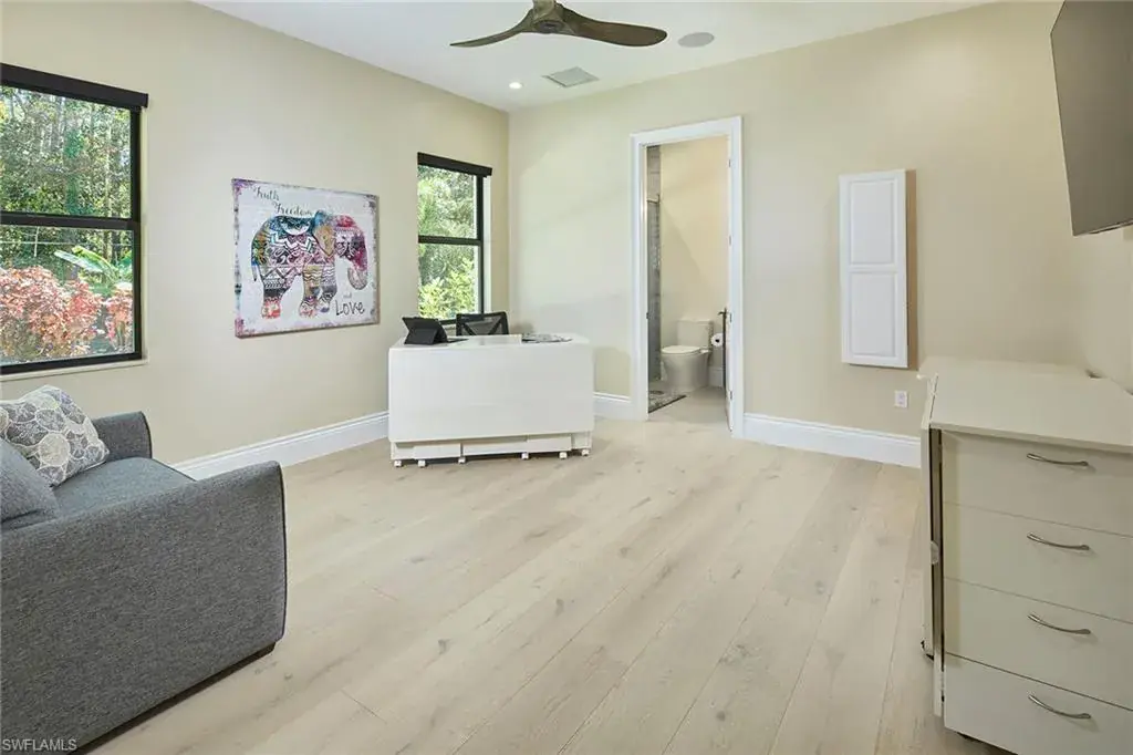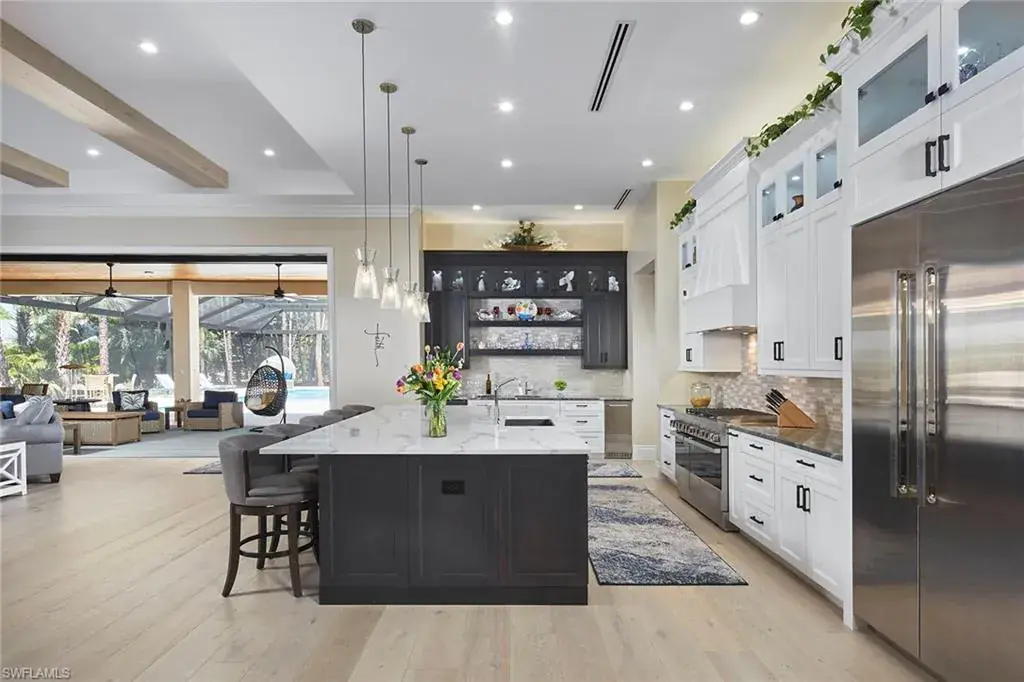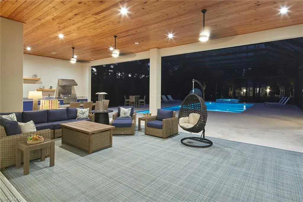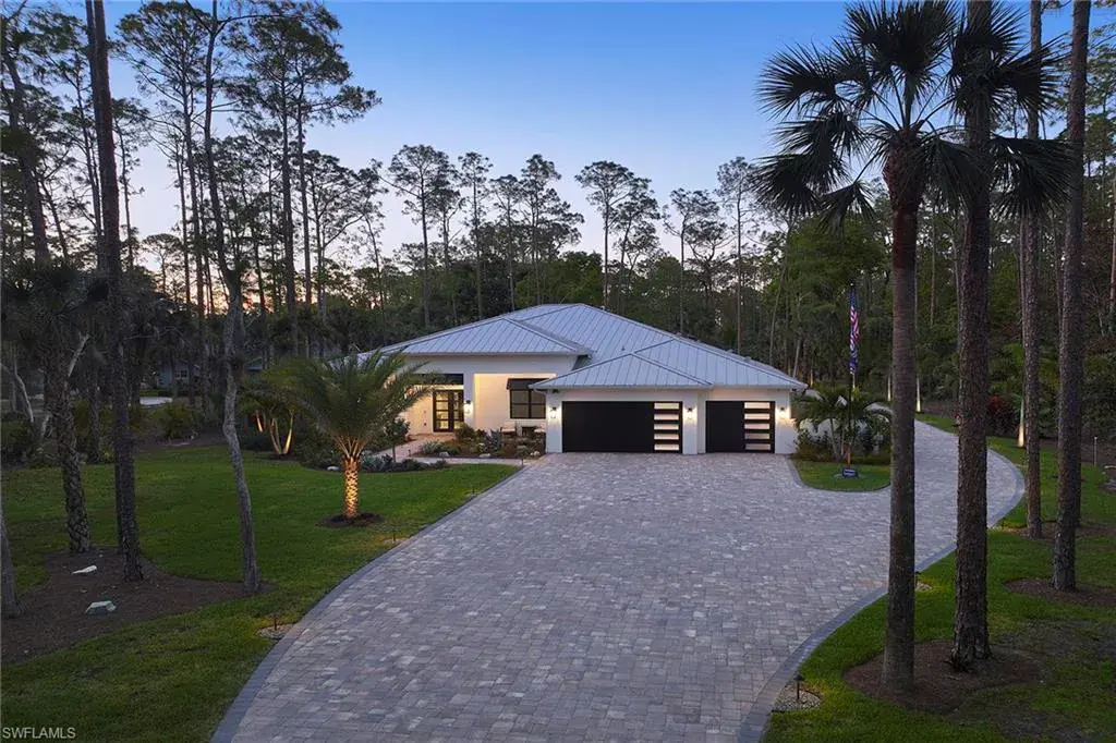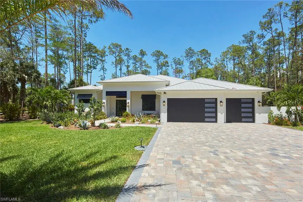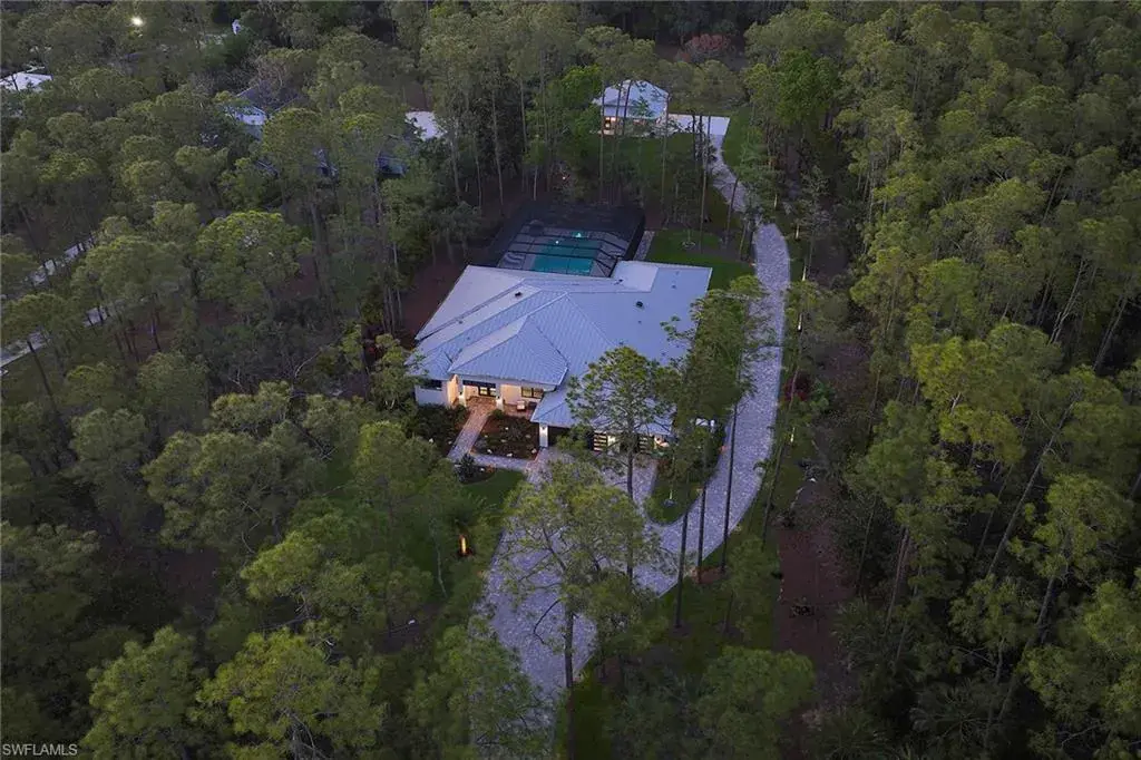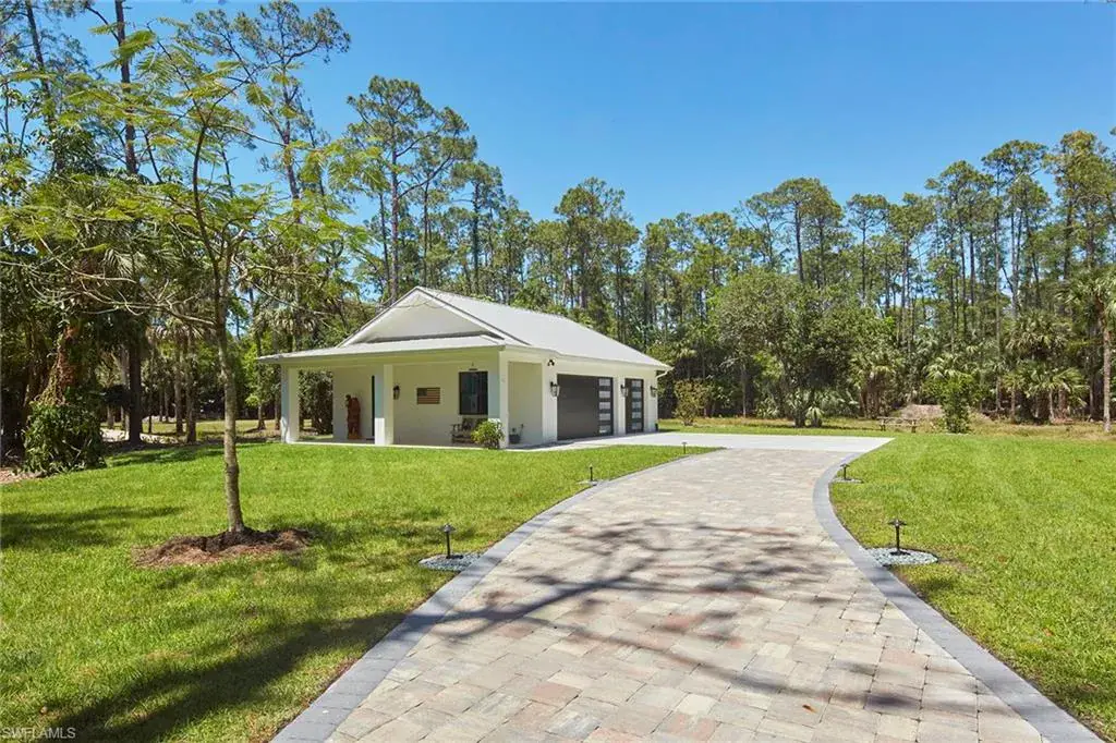 Look no further than this custom, nearly new, secluded 2.27-acre estate in exclusive Logan Woods. Completed in 2024, the five-bedroom plus study, five-full and one-half-bath great room home with three-car attached garage leaves nothing to be desired. Behind the home, a winding brick paver driveway leads to an additional detached climate-controlled three-car garage, ideal for additional automobiles, workshop or storage. The custom kitchen with an upscale mix of white quartz and quartzite countertops and high-end JennAir appliance package flows to the expansive, covered lanai with cypress wood ceiling ideal for entertaining family and friends. The tranquil private outdoor living area continues with an oversized heated pool and raised spa with an additional sun shelf and lap lane, outdoor kitchen with XO gas grill, all screened-in with unobstructed picture window screens. Additional features include a whole home R/O system and Generac generator, automated front entry gate, hurricane-impact windows and doors throughout and a convenient pool bath. A world of luxury awaits you in Logan Woods, close to all Naples has to offer, yet allowing for a private, secluded lifestyle.