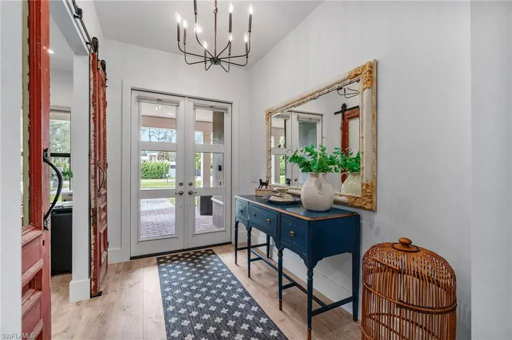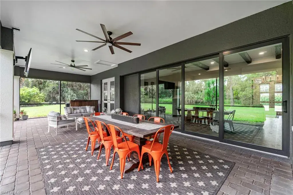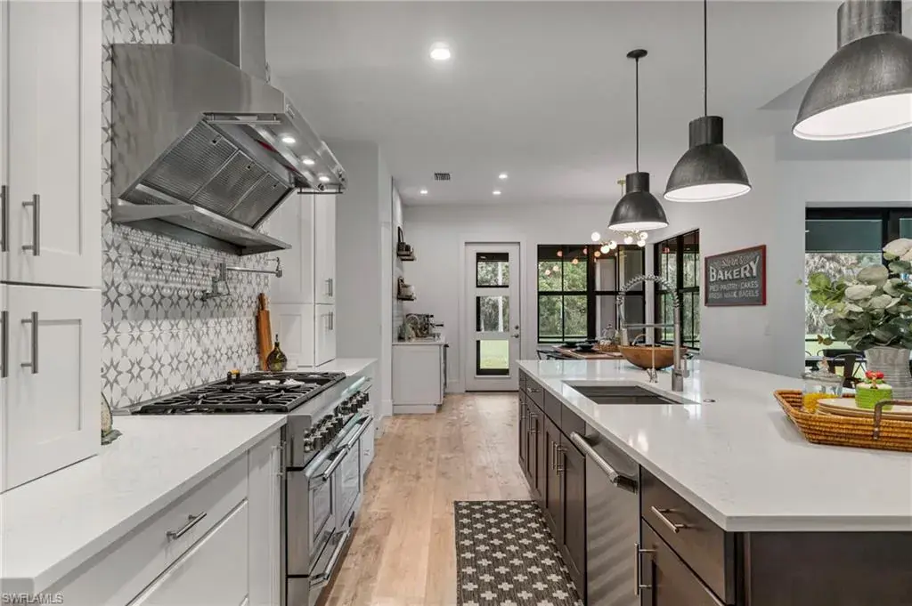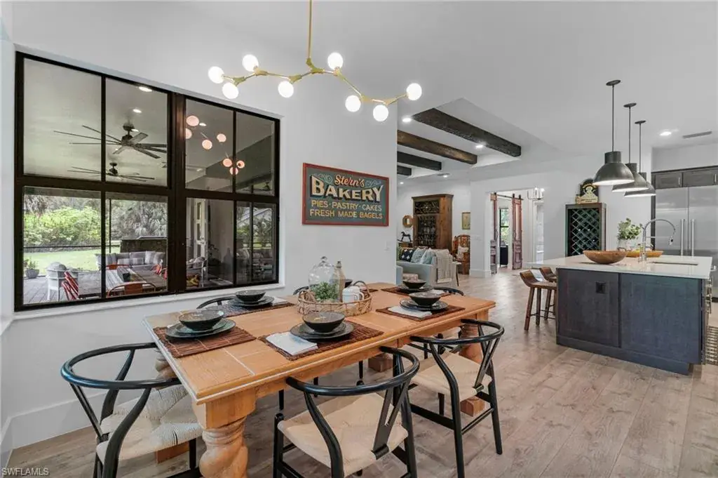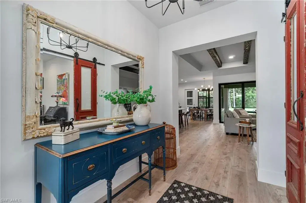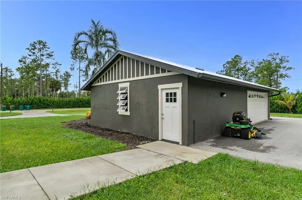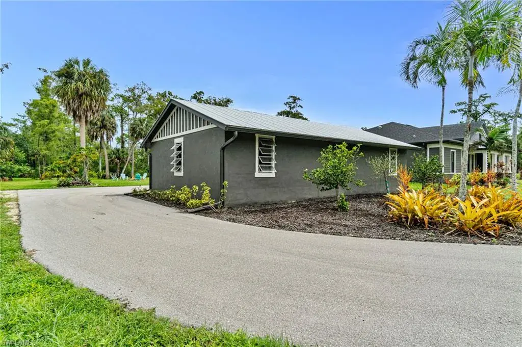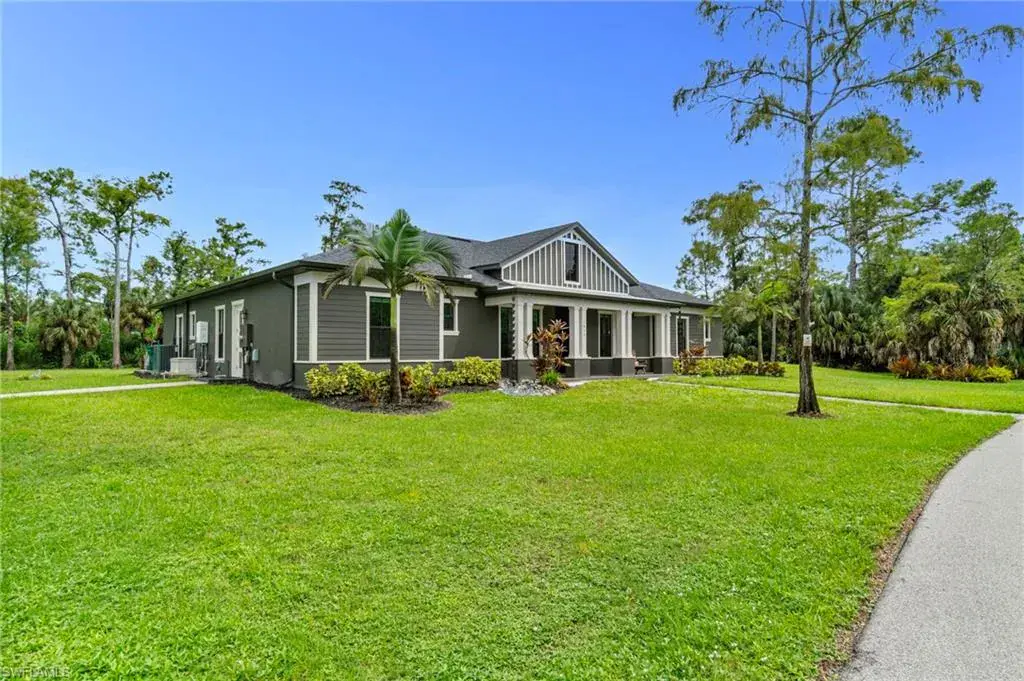 Experience the best of in-town acreage living with this stunning 2022-built estate home nestled on 2.73 acres of serene privacy in Logan Woods. Designed with timeless French countryside charm, this 5-bedroom + den residence showcases warm wooden beams in the great room, a split-bedroom floor plan, and an open-concept layout that blends elegance with everyday comfort. The chef’s kitchen is a true showstopper, anchored by a Thermador 48” range with six gas burners, flattop, and double ovens—along with a hidden, dual-access butler’s pantry that keeps everything organized and out of sight. From the kitchen and great room, walls of glass open to a sprawling screened lanai, where you’ll sip morning coffee while soaking in tranquil views of lush greenery. The primary suite is thoughtfully tucked away for peace and privacy, while additional bedrooms are positioned on the opposite side of the home, each with custom closet built-ins and ceiling fans. Every detail has been considered, including hurricane-impact windows and doors, whole-home reverse osmosis water system, tankless water heater, and upgraded 400-amp electrical with generator hookup. Outside, the possibilities are endless. The 20’x40’ metal-roofed garage/warehouse includes a workshop and could easily be converted into a 4-car garage. A newly paved driveway offers generous guest parking—and even potential space for your very own pickleball court. With a pre-wired pool panel, propane hookup for an outdoor kitchen, and storm-tested durability, this home is ready for generations to come. Don’t miss your chance to own this rare Naples treasure where privacy, elegance, and functionality come together in perfect harmony.