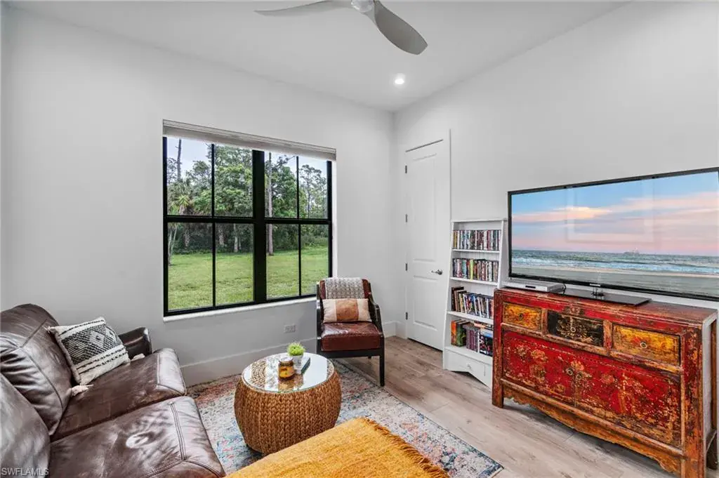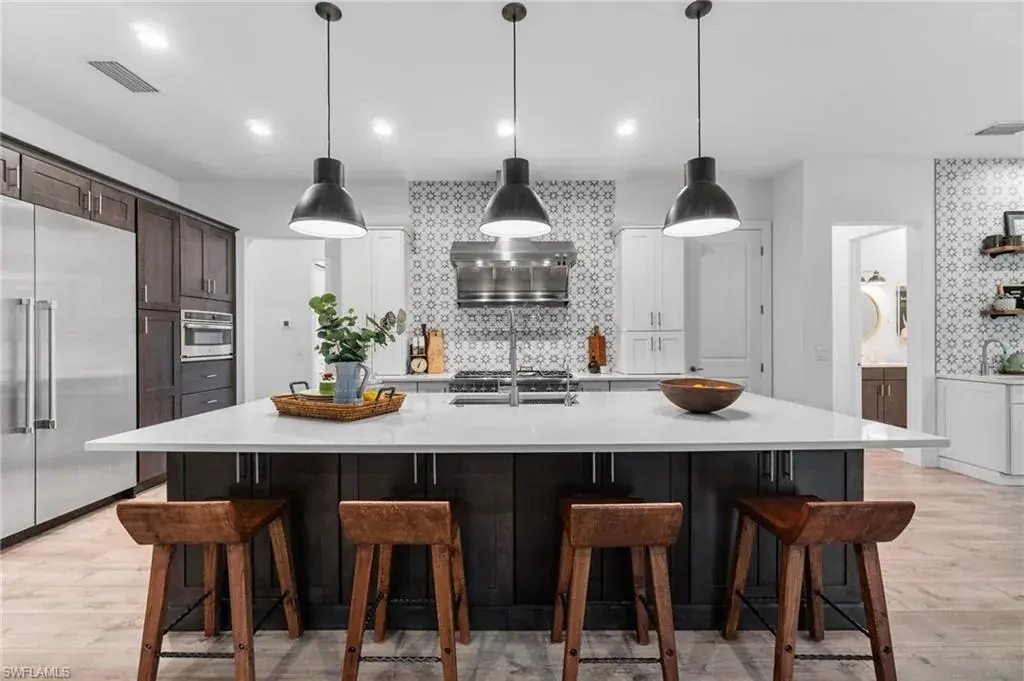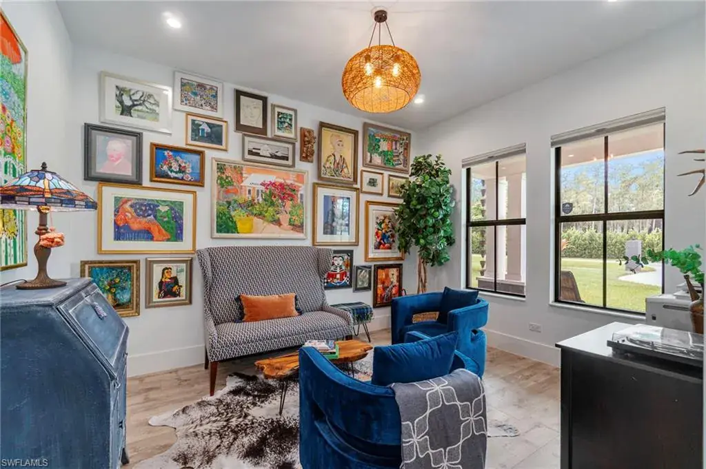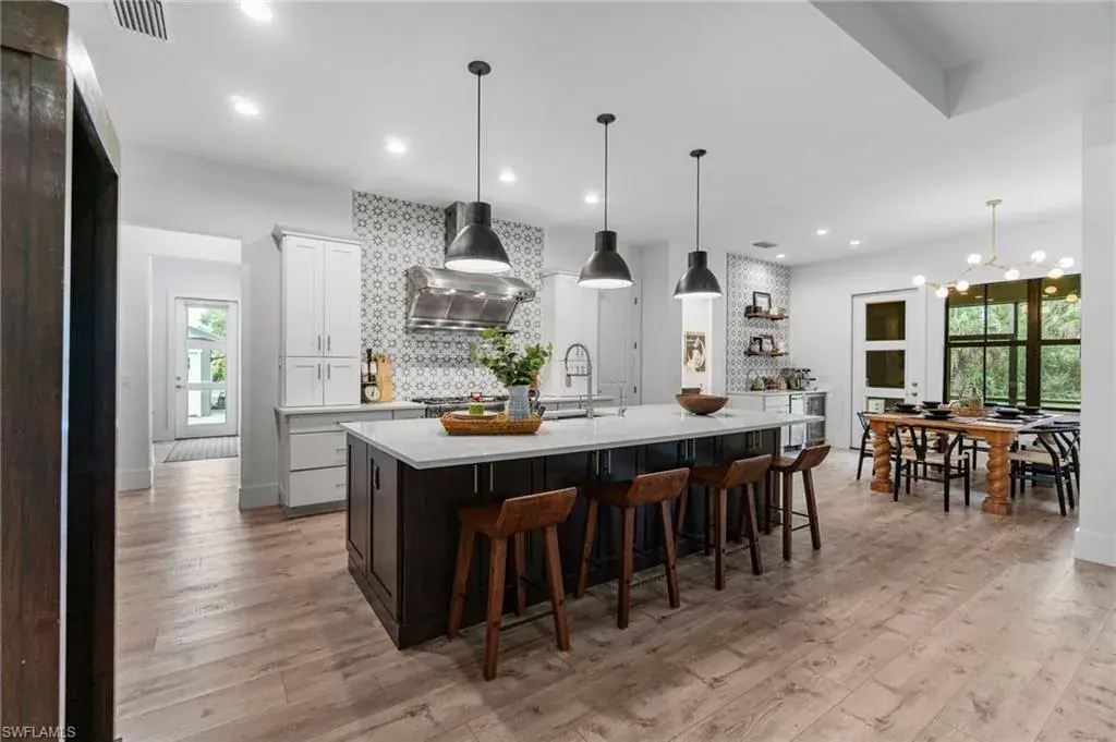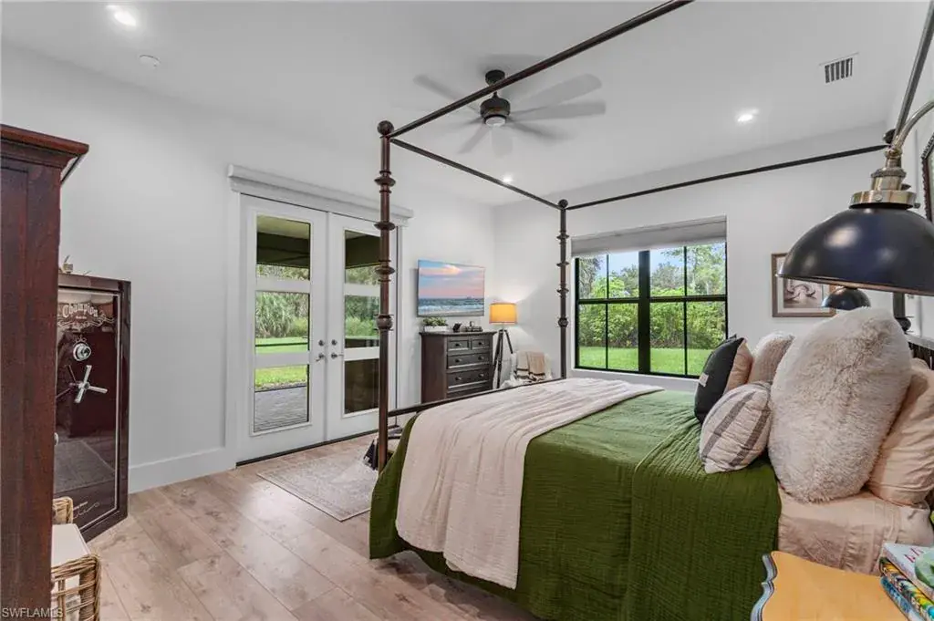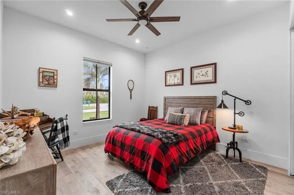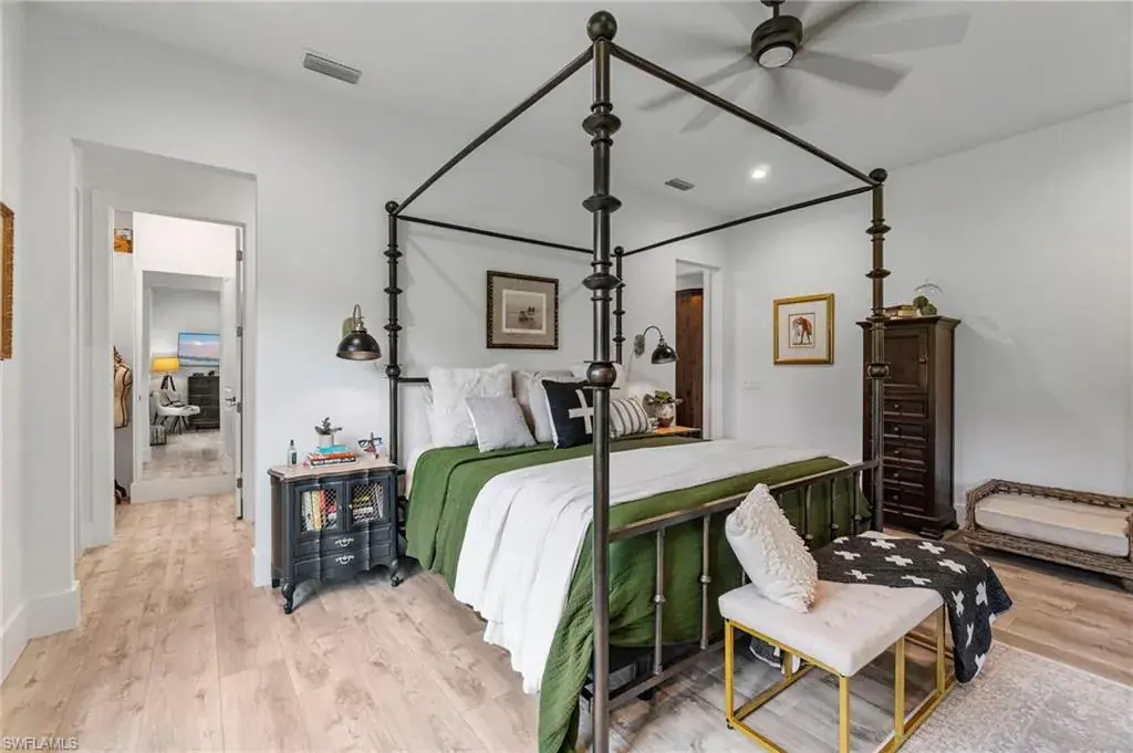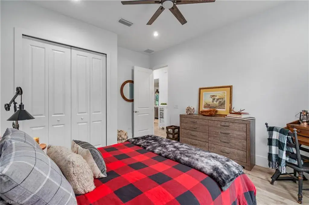 Experience the best of in-town acreage living with this stunning 2022-built estate home nestled on 2.73 acres of serene privacy in Logan Woods. Designed with timeless French countryside charm, this 5-bedroom + den residence showcases warm wooden beams in the great room, a split-bedroom floor plan, and an open-concept layout that blends elegance with everyday comfort. The chef’s kitchen is a true showstopper, anchored by a Thermador 48” range with six gas burners, flattop, and double ovens—along with a hidden, dual-access butler’s pantry that keeps everything organized and out of sight. From the kitchen and great room, walls of glass open to a sprawling screened lanai, where you’ll sip morning coffee while soaking in tranquil views of lush greenery. The primary suite is thoughtfully tucked away for peace and privacy, while additional bedrooms are positioned on the opposite side of the home, each with custom closet built-ins and ceiling fans. Every detail has been considered, including hurricane-impact windows and doors, whole-home reverse osmosis water system, tankless water heater, and upgraded 400-amp electrical with generator hookup. Outside, the possibilities are endless. The 20’x40’ metal-roofed garage/warehouse includes a workshop and could easily be converted into a 4-car garage. A newly paved driveway offers generous guest parking—and even potential space for your very own pickleball court. With a pre-wired pool panel, propane hookup for an outdoor kitchen, and storm-tested durability, this home is ready for generations to come. Don’t miss your chance to own this rare Naples treasure where privacy, elegance, and functionality come together in perfect harmony.