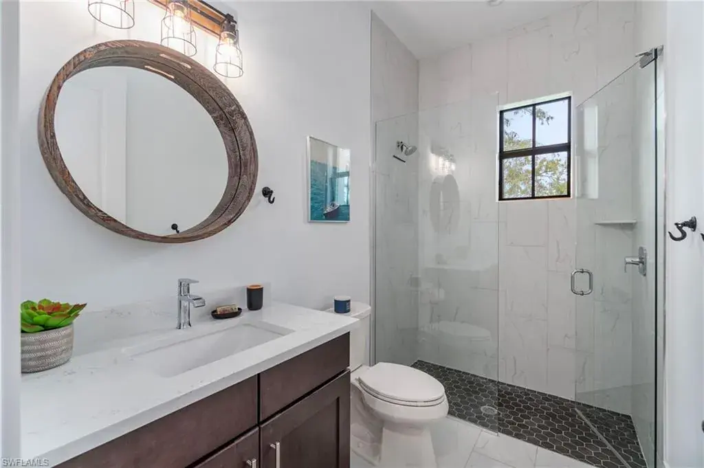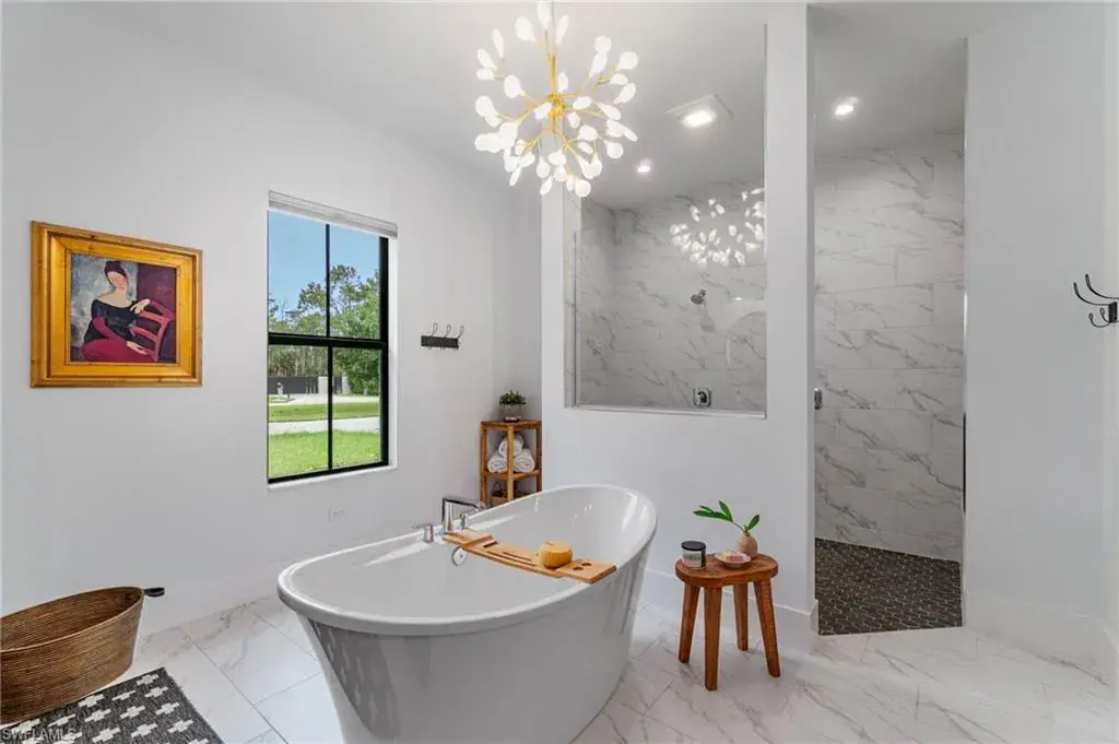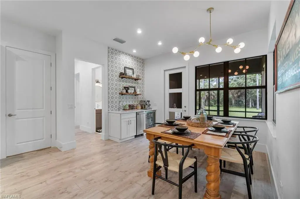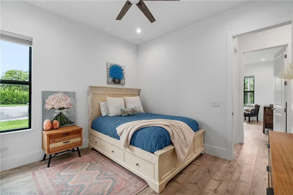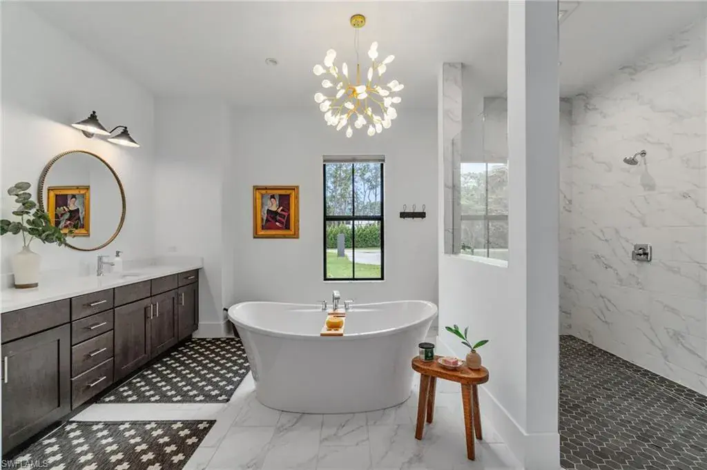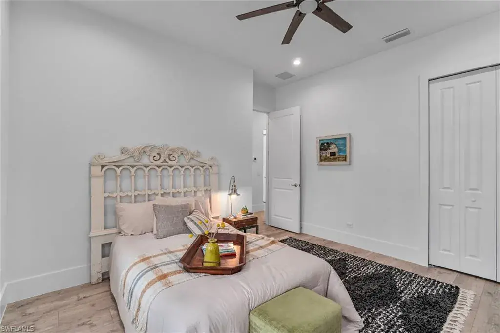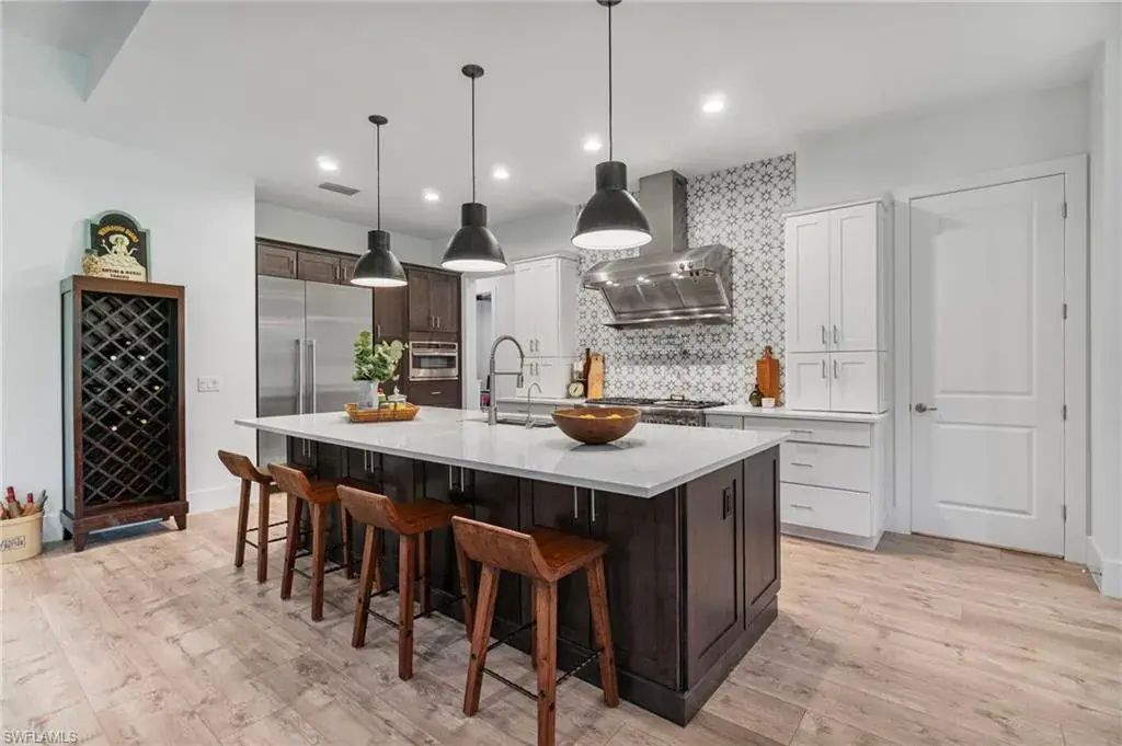 Experience the best of in-town acreage living with this stunning 2022-built estate home nestled on 2.73 acres of serene privacy in Logan Woods. Designed with timeless French countryside charm, this 5-bedroom + den residence showcases warm wooden beams in the great room, a split-bedroom floor plan, and an open-concept layout that blends elegance with everyday comfort. The chef’s kitchen is a true showstopper, anchored by a Thermador 48” range with six gas burners, flattop, and double ovens—along with a hidden, dual-access butler’s pantry that keeps everything organized and out of sight. From the kitchen and great room, walls of glass open to a sprawling screened lanai, where you’ll sip morning coffee while soaking in tranquil views of lush greenery. The primary suite is thoughtfully tucked away for peace and privacy, while additional bedrooms are positioned on the opposite side of the home, each with custom closet built-ins and ceiling fans. Every detail has been considered, including hurricane-impact windows and doors, whole-home reverse osmosis water system, tankless water heater, and upgraded 400-amp electrical with generator hookup. Outside, the possibilities are endless. The 20’x40’ metal-roofed garage/warehouse includes a workshop and could easily be converted into a 4-car garage. A newly paved driveway offers generous guest parking—and even potential space for your very own pickleball court. With a pre-wired pool panel, propane hookup for an outdoor kitchen, and storm-tested durability, this home is ready for generations to come. Don’t miss your chance to own this rare Naples treasure where privacy, elegance, and functionality come together in perfect harmony.