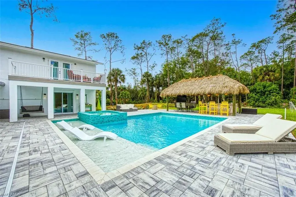 This property features a new saltwater pool, outdoor kitchen, and a tiki hut – all less than a year old. Pool equipment includes a 5-year warranty and all outdoor furniture stays! Inside, the home has been fully renovated for low-maintenance living New A/C unit and ductwork 2021 Full re-pipe with new plumbing
