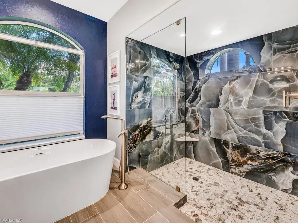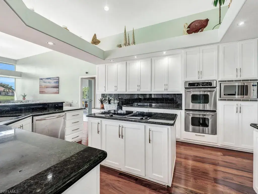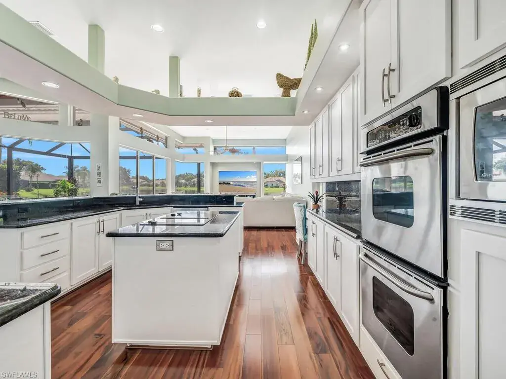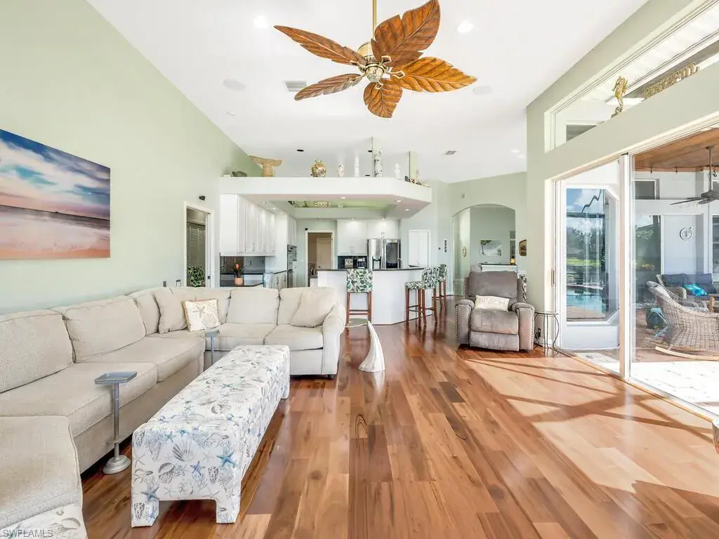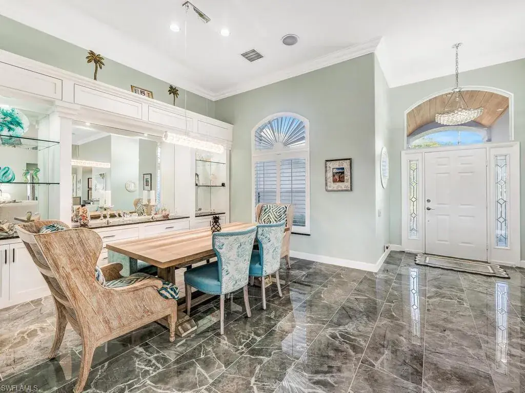Experience the true essence of Florida living where the outdoors seamlessly blend with the indoors! This stunning open-concept home is bathed in natural light and offers breathtaking panoramic water views from nearly every room—an entertainer’s dream! Step outside to a spacious deck with coveted Southern exposure, featuring generous deck space, a heated pool, spa, and ambient lighting, all overlooking shimmering waters and spectacular sunsets. There is even your own private dock just outside your door! It’s the perfect backdrop for relaxation and memorable outdoor gatherings. Inside, you’ll find 3,100 square feet of beautifully updated living space, including 3 bedrooms, den, 2.5 baths, and an oversized 2-car garage. The stunning newly renovated primary bath is a luxurious retreat, complete with stand alone tub, frameless glass shower, polished tile, dual vanities with quartz countertops, designer lighting, and more. Additional enhancements include a sleek stainless steel French-door refrigerator with InstaView Beverage Center and Craft Ice, a new Bryant A/C system (main), newer washer and dryer, and new polished tile flooring in the living, dining, and foyer, and plank tile in the bedrooms, baths, and den. The family room, breakfast room and kitchen are accented with beautiful Brazilian wood floors and built-in wood cabinetry in the dining room provide the perfect finishing touches. A newer roof, new window treatments and designer lighting complete the home’s list of impressive upgrades. Located in the highly sought after, gated community of Longshore Lake in North Naples, residents enjoy an 88-acre lake perfect for boating, fishing, kayaking, and sunset cruises. The community also offers a clubhouse with a restaurant, bar and outdoor dining, 9 Har-Tru tennis courts with a full-time pro, a fitness center, miles of scenic walking paths, playground and more! Discover the lifestyle that you have always dreamed of……paradise awaits!