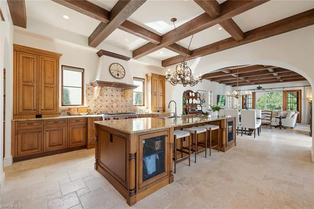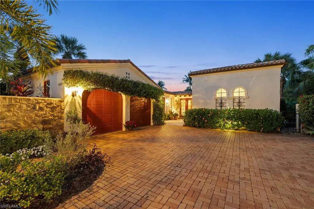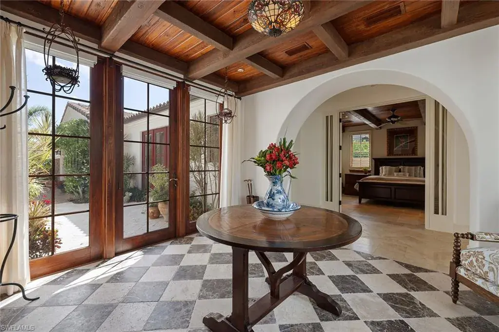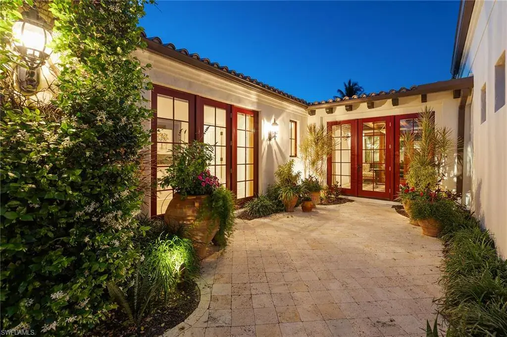 This home is truly magical! Designed by nationally recognized architect Mark Schuerer, you are transported to the northern coast of Italy with layered views through the courtyards and the outdoor living area, as it wraps around the pool connecting the indoor and outdoor spaces throughout the home. The architecture is thoughtful with a bright, open kitchen and great room spaces while the bedrooms remain private. Surrounded by windows, you will experience views wherever you look, including sunrises, the lake to the back of the home, and landscaping combined with potted plants overflowing with bright flowers. The den, which extends beyond the great room, is an ideal multi-purpose space whether being used as a study or extra sleeping area. Impact windows and doors, stained detailing at the French doors, and stone floors with a unique hopscotch pattern combined with a timeless combination of a checkerboard pattern as you enter the foyer, are only a few of the unique details that you will find in this home. Tongue and groove ceilings are adorned with beams, and mosaic tiles enhance the walls and floors creating warmth throughout the home. The chef’s kitchen, which includes a 36-inch Sub-Zero refrigerator and 36-inch freezer as well as Wolf appliances including an under-counter wine cooler and two dishwashers, opens up to the dining room and great room providing the ultimate entertaining space. Additional features include landscape lighting, a lighting control system, and an air-conditioned garage. Located in Mediterra, an award-winning private club with a commitment to excellence.