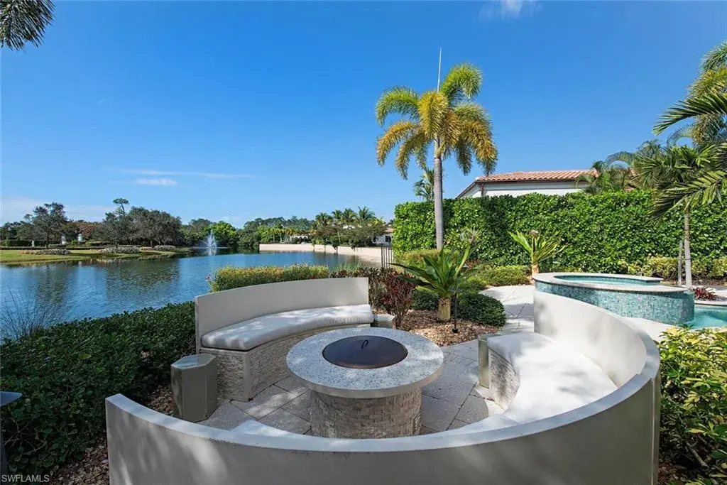 Enjoy colorful sunsets nightly with this home’s Western rear exposure and long lake views overlooking the 2 acre Mediterra Parterre Garden. A rare oversized front yard for your family dog to enjoy or the ability to add another garage. This spacious great room floor plan features high ceiling and an open kitchen overlooking the custom pool, spa and fire pit with incredible views. This 3 bedroom plus den villa has 4 full bathrooms giving the den the option of being used as a 4th bedroom. It is storm ready with a generator, hurricane impact doors and windows, plus regular and hurricane electric lanai screens. The Mediterra Golf and Beach Club offers multiple levels of membership. New 38 million dollar sports club facility approved February 2025! Buyer to assume CDD.