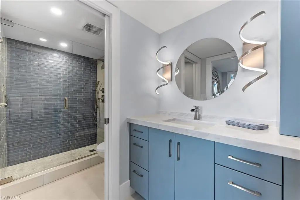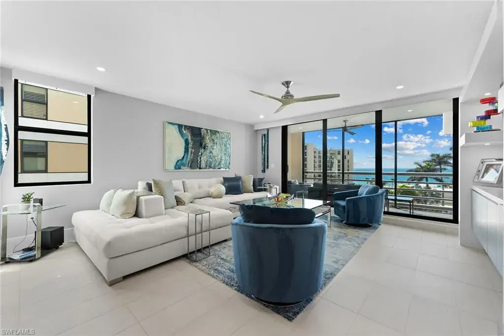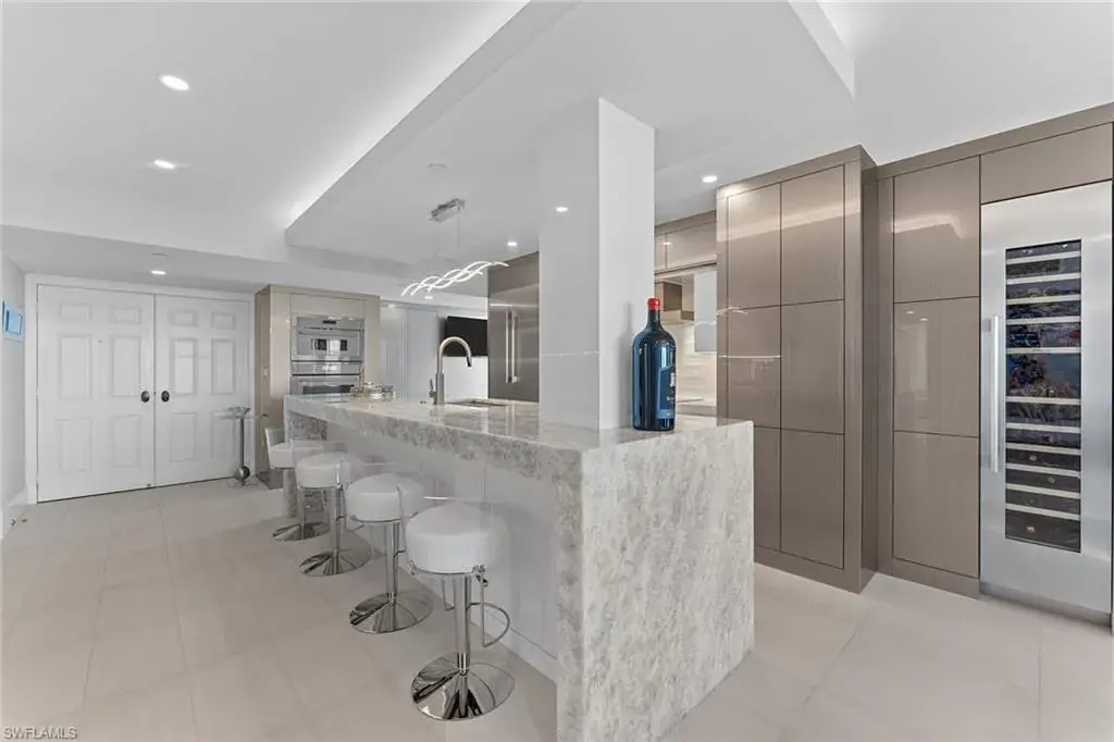 In one of Naples desirable locations, this stunning residence offers captivating views of the gulf from the primary suite, as well as the bay. Thoughtfully designed by London Bay, the interior features two bedrooms plus a versatile bonus room, complemented by a sun-filled lanai and two private balconies, ideal for enjoying Southwest Florida’s breathtaking sunsets. Recently updated with all-new electrical and plumbing, the home seamlessly blends modern comfort with timeless coastal charm. The kitchen is a showpiece, boasting exquisite Calcite Blue marble countertops, while the office and laundry areas are adorned with sleek Pompeii quartz. Deeded beach access across the street. Ideally within walking distance of The Village for premier shopping and dining, and just minutes from downtown Naples and Fifth Avenue, this property offers the best of convenience and luxury. Residents also enjoy exclusive membership access to Moorings Beach Park, providing private beach access for ultimate relaxation. Experience the essence of Florida living at its finest.