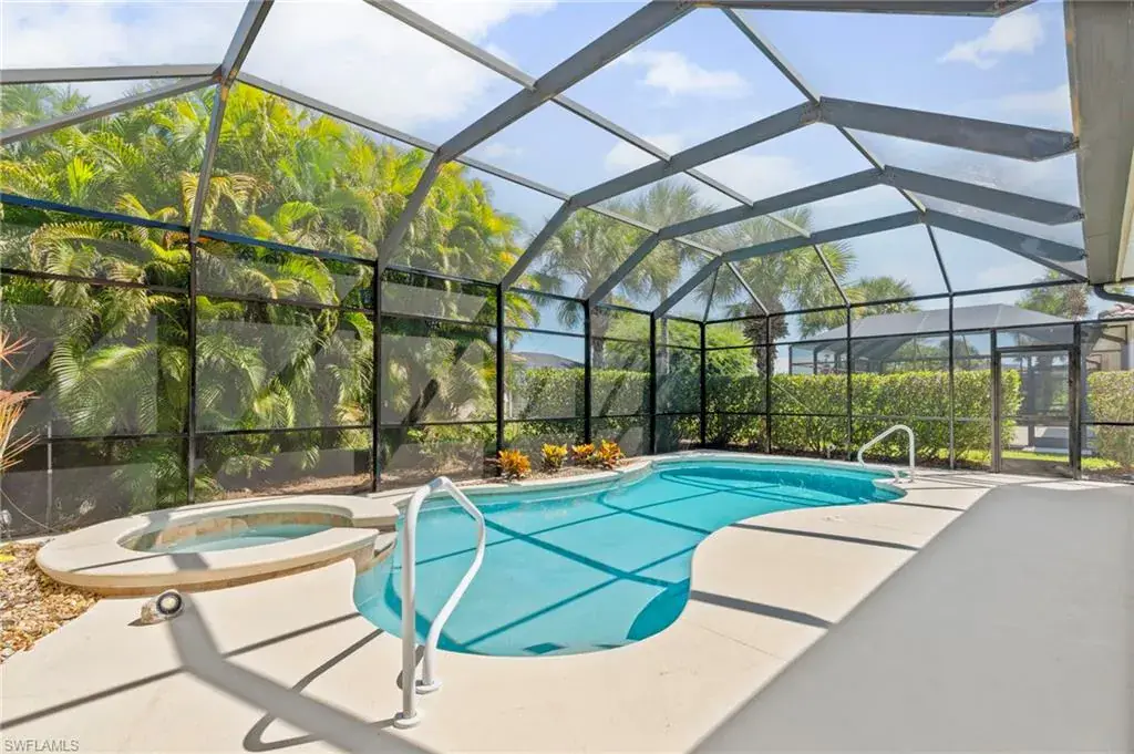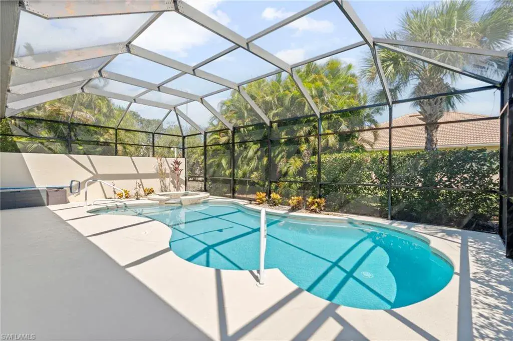READY TO MOVE IN THIS BEAUTIFUL SINGLE FAMILY HOME WITH POOL AND SPA. Centrally located in the desirable Madison Park neighborhood with 3 bedrooms, living and dining room combination, eat in kitchen, 2 bath, 2 car garage. Granite counter tops, Stainless steel appliances are one year old, new A/C one month old, roof is 5 years, Water filtration and conditioning, alarm system, plantations shutters, Crown molding, hurricane shutters, Toto Toilets, a private screened-in lanai, perfect for outdoor entertainment. Low HOA Fees. No CDD. Not in a Flood Zone. Conveniently located 5 miles from downtown Naples, fine dining and our Naples Beautiful beaches.