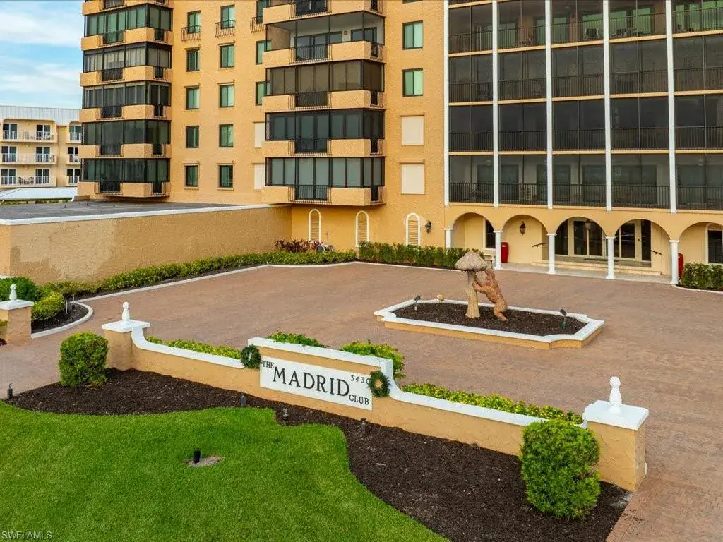 Bask in stunning westerly views and sweeping vistas along Gulf Shore Boulevard from this light-filled Madrid Club condo. Enjoy breathtaking sunsets with partial Gulf of Mexico views and coastal breezes right from your private balcony. Move-in ready for the season, this spacious unit offers a full-size laundry room—a rare feature in the building—and plenty of potential to personalize and reimagine the space over time. The Madrid Club has recently undergone a multi-million-dollar renovation and offers resort-style amenities, including a bayfront pool, fitness center, social rooms, an outdoor kitchen, kayak racks, and optional boat slips are separately available for lease or purchase. Beach access is just across the street, and memberships to The Moorings Private Beach Club are available. With under-building garage parking, air-conditioned storage, and a short stroll to The Village on Venetian Bay for fine dining and shopping, this is Naples coastal living at its best!