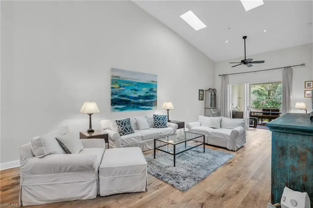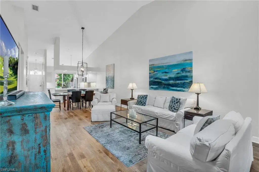 surrounded by lush landscaping with easy access to the 2-car garage. As you step into the front door you are welcomed with elegance and comfort by this natural-light filled home. The open kitchen boasts pristine white cabinets ample counter space and sleek stainless steel appliances. The home’s soaring ceilings and stunning skylights create an airy spacious atmosphere while the fully furnished interior exudes warmth and style inviting you to immerse yourself in its embrace. The primary suite is a true sanctuary offering separate lanai access, a luxurious soaking tub, walk-in shower, dual vanities, and oversized walk-in closet. Your screened lanai offers breathtaking unobstructed lake views as far as the eye can see. For peace of mind the home is equipped with electric hurricane shutters. The generously sized guest bedroom is perfect for hosting friends and family ensuring they have a comfortable space to relax. Additionally the versatile den can easily double as an office or an extra sleeping area for guests providing flexibility to suit your lifestyle. A short stroll from your front door the vibrant clubhouse beckons. Dive into the tropical saltwater pool, challenge friends to a match on the tennis or bocce courts, or enjoy a leisurely walk along the scenic paths all surrounded by native flora and fauna, enchanting waterfalls, and friendly neighbors. There’s always something to enjoy right in your community. Located just moments away from the shopping dining and entertainment of Downtown Naples – 5th Ave, 3rd Street S, and world famous white sand beaches. Your future in Naples awaits at 2326 Magnolia Ln. Don’t miss this opportunity to uncover the brilliance of Naples living – your dream home is calling