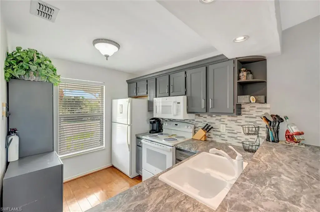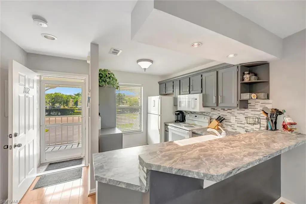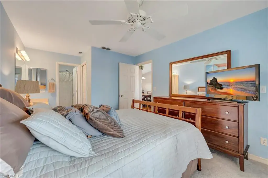 Dive into the Naples lifestyle with this affordable and attractive 2-bedroom, 2-bathroom condo located in the desirable Mainsail II complex. Super close to Marco Island and about 15 minutes from downtown Naples. This second-floor unit offers 813 A/C square feet and boasts serene Lake Front views. This condo features a dining-living room area, a breakfast bar, and an inside laundry area. The kitchen has been beautifully updated. The spacious screened lanai has plenty of room for outdoor dining and lounging. Enjoy bird watching and wildlife right from your own lanai. This condo is fully furnished and ready for you to enjoy. Residents of this low-rise building enjoy great amenities, including 2 Community Pools, one open and one screened, Tennis Courts, and Pickleball. You can also keep a small boat out back!