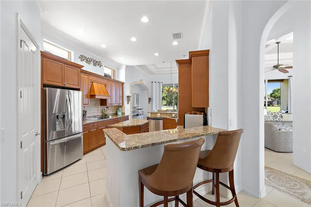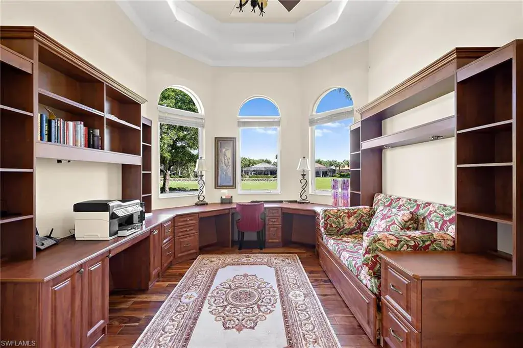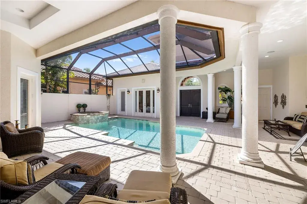 Welcome to your dream residence in the sought-after, double-gated Majors at Lely Resort! This exceptional Pinehurst model estate is a meticulously maintained, turnkey-furnished home, offering four bedrooms plus a den, and three-and-a-half baths. Designed for those who value luxury, comfort, and ease of living, this home exudes elegance and charm from the moment you step through the custom double-entry front doors. Inside, the home dazzles with its elegant architectural details, including crown molding, a fireplace surrounded by custom natural stone setting the tone for quality throughout. The open great room and courtyard layout is ideal for relaxed living and grand entertaining. The main residence offers three spacious bedrooms and two-and-a-half baths, complemented by a private one-bedroom, one-bath casita for guests or as an in-law suite. All living spaces seamlessly connect to a spectacular central courtyard, with a heated pool, integrated waterfall spa, and sun-soaked deck, offering the ultimate in indoor-outdoor living. The chef’s kitchen, designed with entertaining in mind, features a large walk-in pantry, premium appliances, and ample countertop space. The custom-built home office/den adds functionality and sophistication. The private courtyard outdoor living area is complemented by a rear covered lanai with breathtaking southern golf course and lake views, making this the ideal setting for day and night enjoyment. The home is complete with a spacious three-car garage and topped with a new tile roof. As a resident, you’ll enjoy exclusive immediate access to the Players Club and Spa, where amenities include a state-of-the-art fitness center, restaurant, tiki bar and grill, billiards room, luxurious spa, resort-style pools, and an elite tennis and pickleball facility. Golf enthusiasts will revel in access to Lely Resort’s three championship 18-hole courses. Don’t miss this rare opportunity to own an exquisite estate where luxury and convenience meet. Experience the lifestyle you’ve always dreamed of. The property is a potential source of rental income, and history is available.