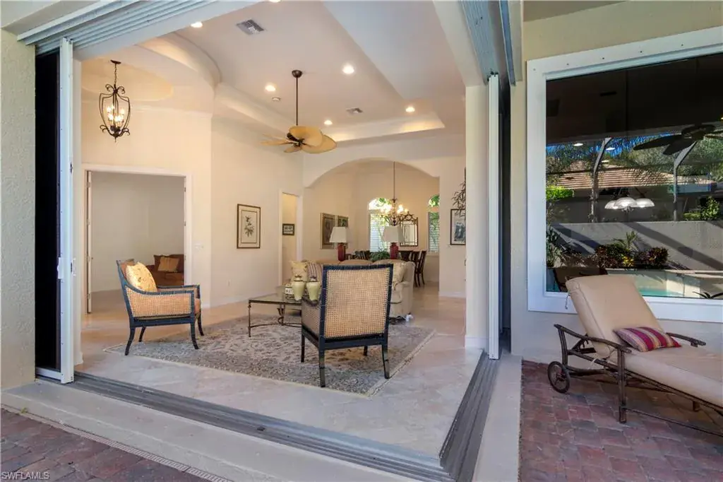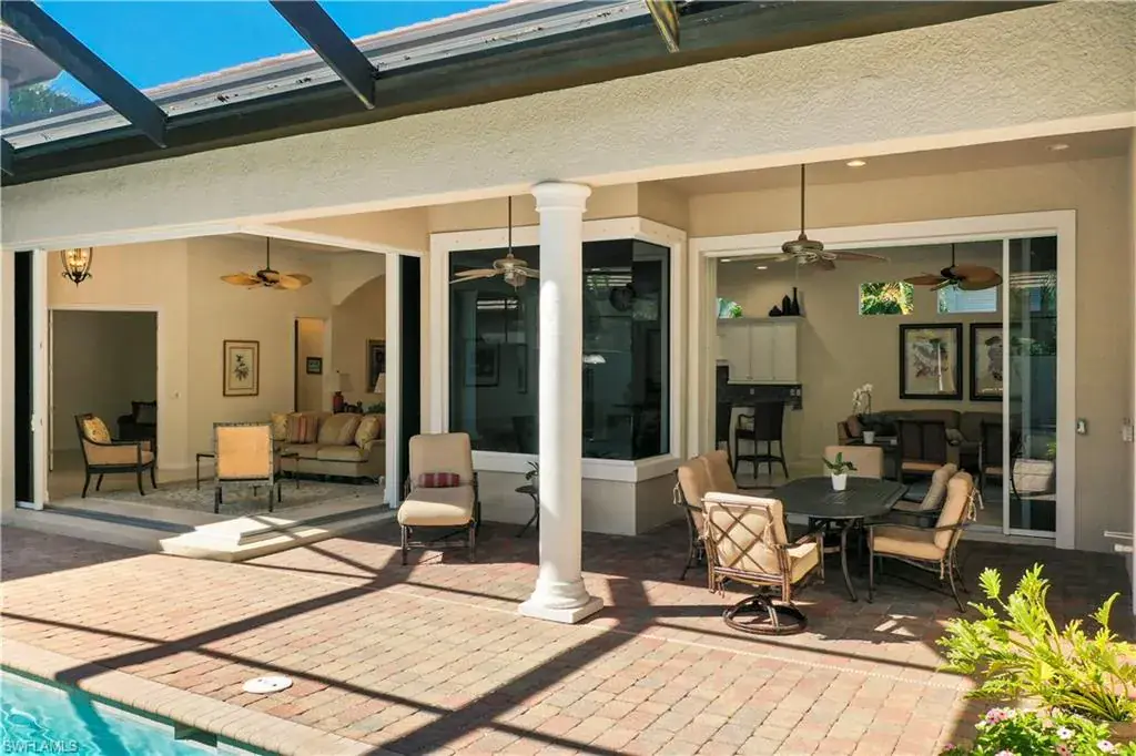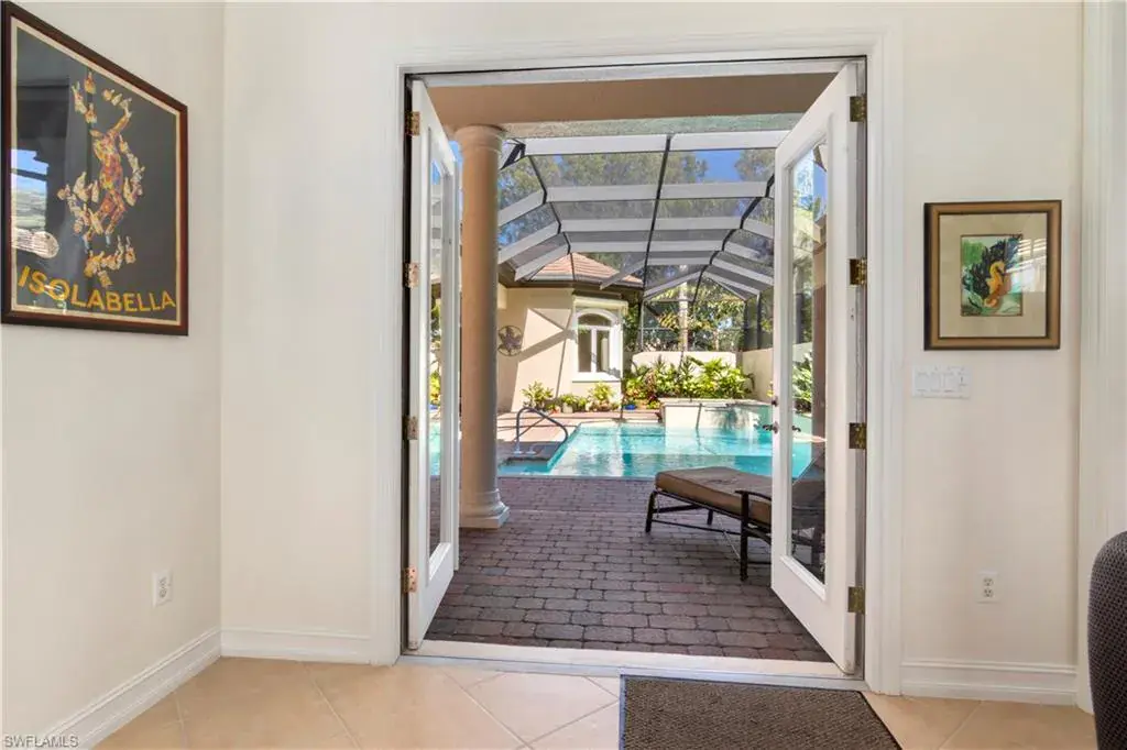 Discover the exclusive, double-gated Majors at Lely Resort, a highly coveted community renowned for its luxurious living and hidden enclave. Welcome to the stunning Monterey Model, an estate meticulously designed for luxurious Florida living. Boasting three spacious bedrooms plus a versatile den and three impeccably appointed bathrooms, this home offers room to breathe and entertain. The thoughtful floor plan includes an exclusive cabana suite, where the third bedroom and a full bath open directly onto the courtyard, creating a private retreat for guests. The heart of this home is built for seamless entertainment. Every main living area converges on the stunning central courtyard, creating a continuous, open flow. Outside, an inviting heated pool, an integrated waterfall spa, and a spacious deck await. Unlike typical courtyards, this one boasts distinctive, flawless landscaping designed for effortless enjoyment. The dedicated drip irrigation system ensures the surroundings remain vibrant and virtually maintenance-free, allowing you more time to relax. Inside, the gourmet kitchen is a study in functionality and luxury, boasting premium appliances, abundant counter space with a bar, breakfast nook and a substantial walk-in pantry, ensuring every culinary endeavor is a pleasure. The residence is thoughtfully completed by an oversized three-car garage, offering generous space not just for vehicles but also for storage, hobbies, or a dedicated workshop area. A key feature of this home is its robust storm protection. The design utilizes impact-resistant glass in the front, paired with the recent upgrade of high-quality Storm Smart shutters on all non-impact windows at the rear. Plantation Shutters throughout the entirety of the home. Enjoy the privileged life. As a resident, you gain unrestricted, immediate access to the Players Club and Spa, a world-class hub of recreation and wellness. The extensive amenity list includes everything from a modern fitness center and luxurious spa treatments to diverse dining options like the main restaurant and casual tiki bar and grill. You’ll also find three resort-style pools, a lively billiards room, and an elite facility for tennis and pickleball. Beyond the club, three championship 18-hole golf courses at Lely Resort await your tee time. Recent Improvements: Roof 2022, A/C 2020, Water Heater 2020, Pool resurfaced in 2025, wood floors in bedrooms 2020, Storm Smart Shutters 2024, New Paint Throughout Home 2024, Kitchen Cabinets painted 2025, Exterior painted 2024, Epoxy Floor ingarage 2020, and Paver Walkway 2024.