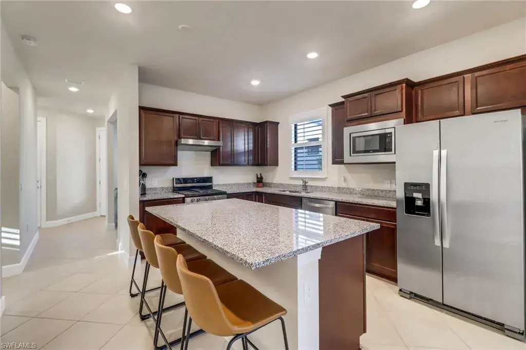 A rare opportunity to own a newly constructed home in Naples at an incredible price. Thoughtful aesthetic choices have been made throughout this gorgeous Pulte home. A classic granite and stainless kitchen looks out to the high ceiling great room and further on to the luxurious pool area with plenty of space for quiet nights or entertaining with friends. Even the garage has gotten special treatment with a nearly indestructible, epoxy floor and plenty of space for two cars. Being sold turnkey ensures you can move right in and start enjoying the tastefully decorated pool area and add your own personal touches as time permits. For the home chef, you’re granted a rarity in Southwest Florida for modern appliances, gas cooking! There’s no replacing the accuracy and heat control of gas. An affordable new home in Naples is not a thing of the past, it is 2170 Yellowfin Circle.