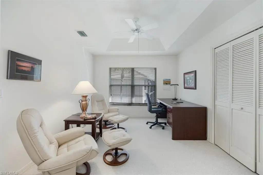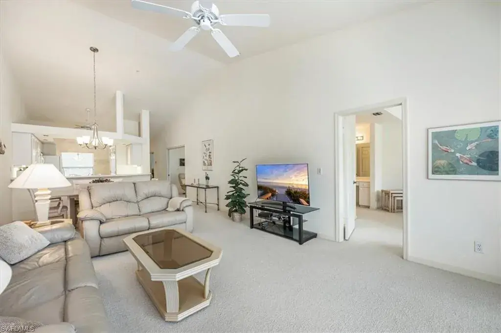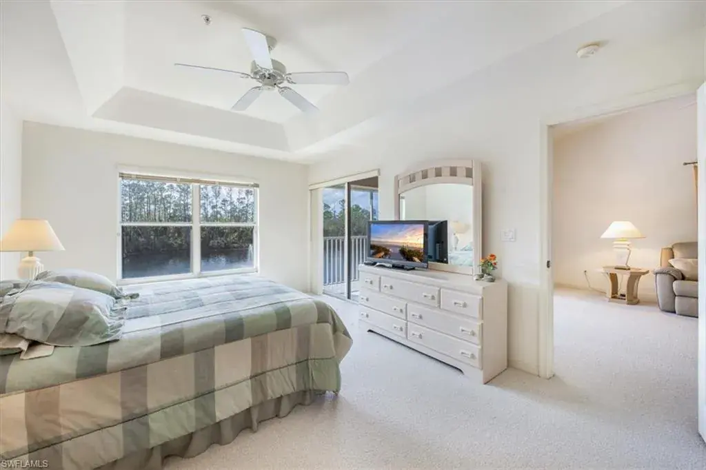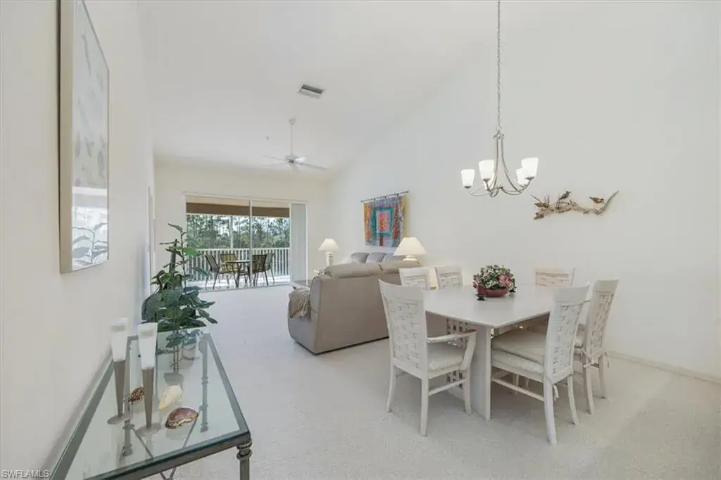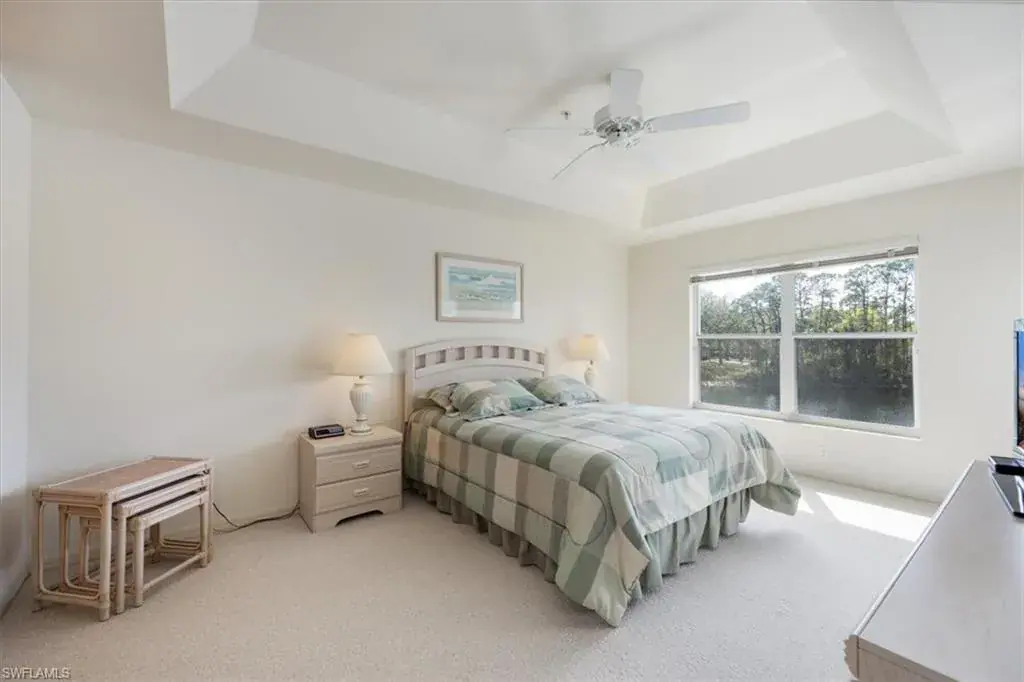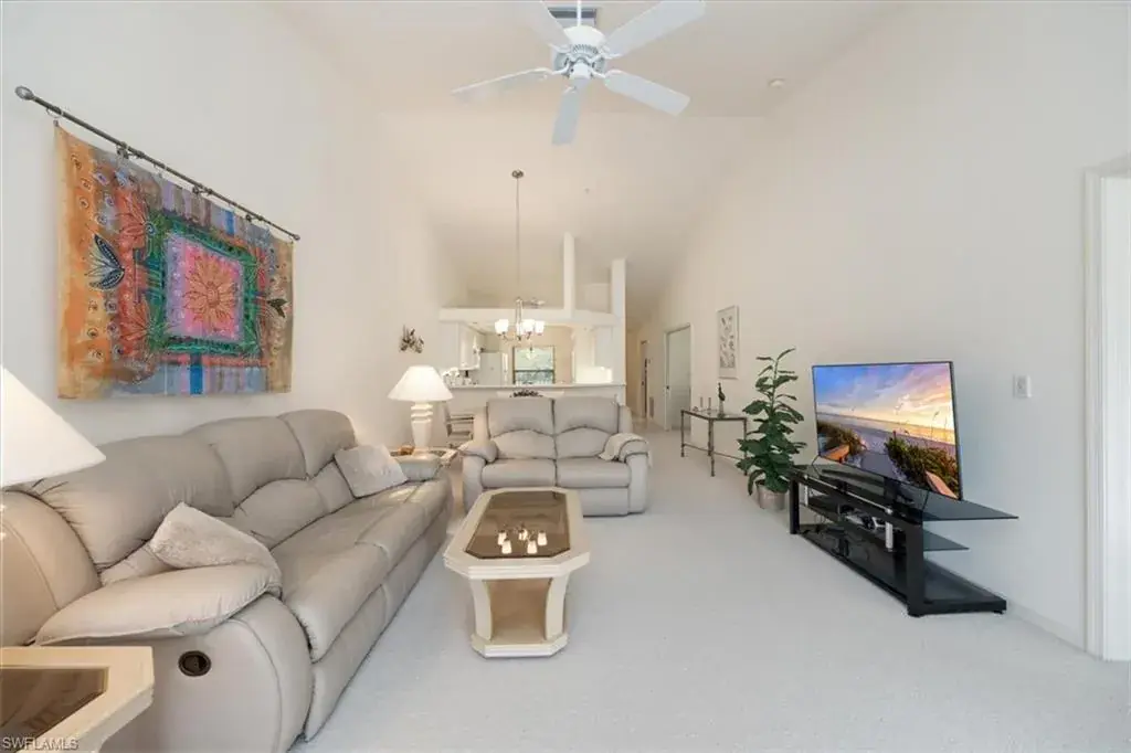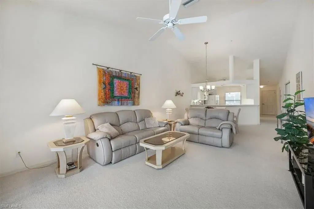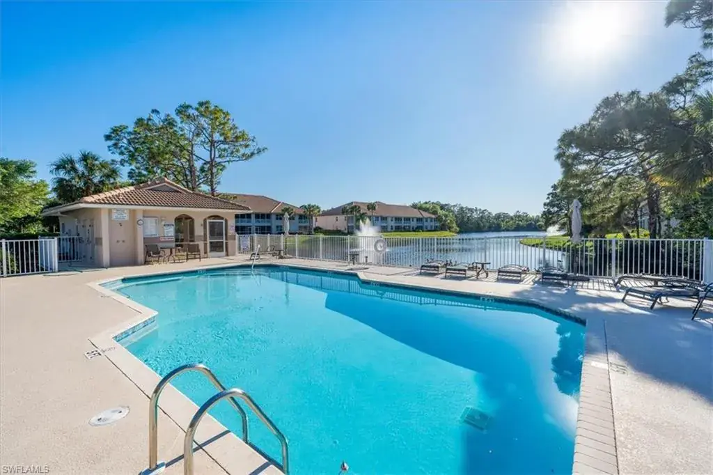 Discover your own slice of paradise in this beautifully maintained 3-bedroom, 2-bath end-unit, perfectly positioned on the 2nd floor for added privacy and enhanced views. Enjoy breathtaking vistas of Regal Lake, featuring a sparkling lakefront fountain, all from your screened lanai with desirable southern exposure—the perfect spot to relax and soak in the Florida sunshine. Inside, soaring vaulted ceilings create an airy, open ambiance, with a thoughtfully designed layout. This condo is offered turnkey furnished, making it effortless to move in and start enjoying the coastal lifestyle right away. Additional highlights include a detached 1-car garage with new Liftmaster garage door, new Rheem water heater, new AC compressor and air handler, new GE washing machine and more. The wonderful quiet community of Manor Lake offers lush landscaping in the Imperial Golf Estates development, which has various levels of optional memberships. Ideally located in North Naples, close to restaurants, shopping and the white sandy beaches. Whether you’re looking for a full-time residence, a seasonal retreat, or an investment opportunity, this exceptional condo checks all the boxes. Enjoy the southwest Florida lifestyle to its fullest. Don’t miss your chance to own a piece of waterfront tranquility!